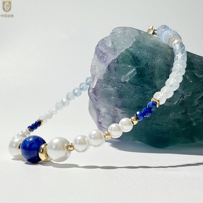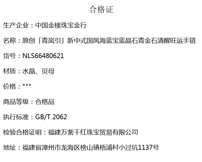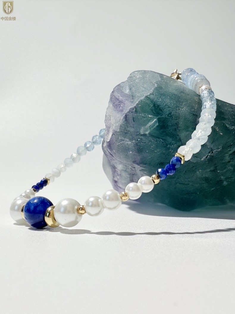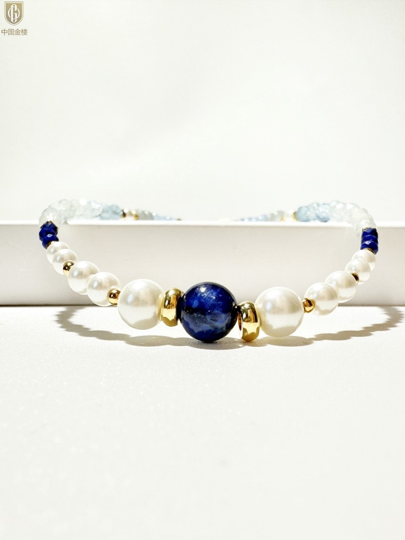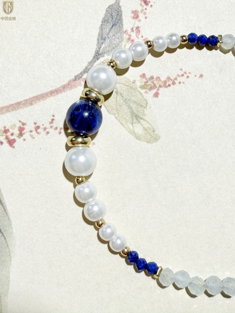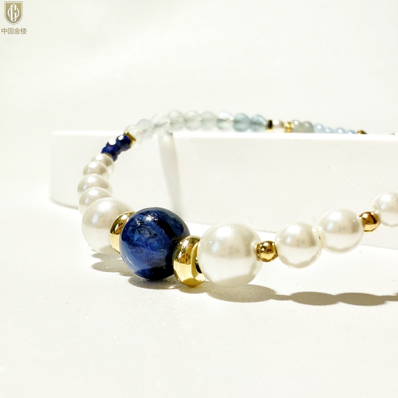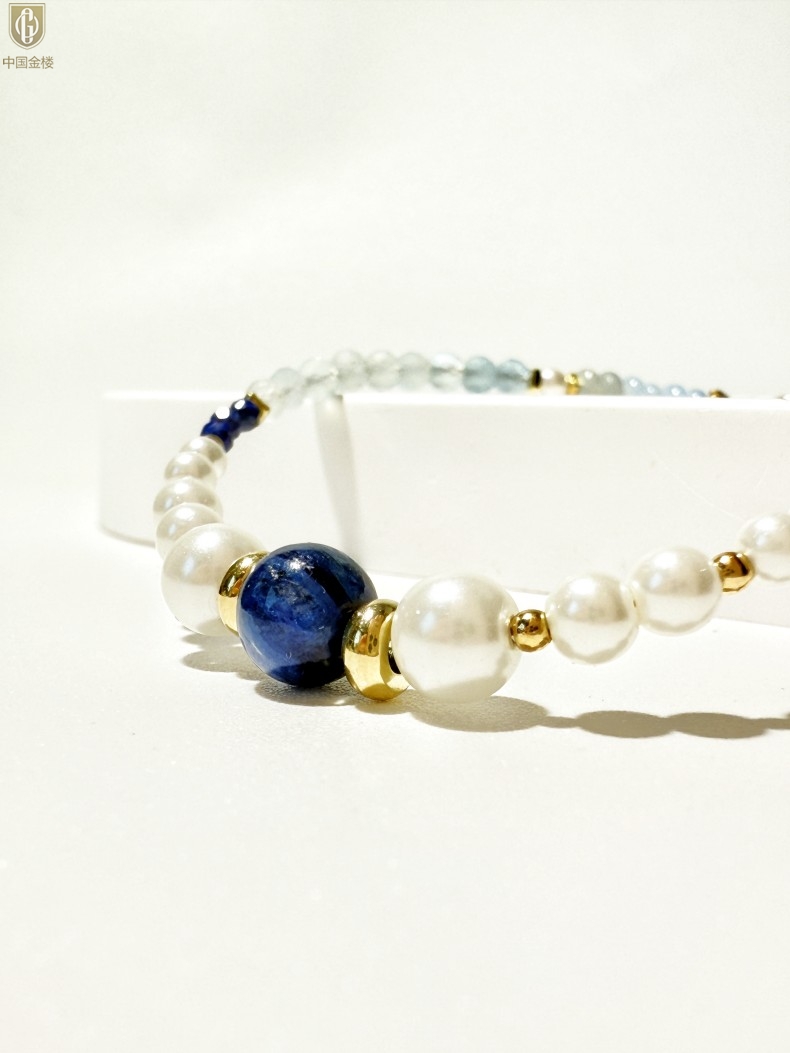 【品名】中国金楼原创「青岚引」新中式国风海蓝宝蓝晶石青金石清醒旺运手链