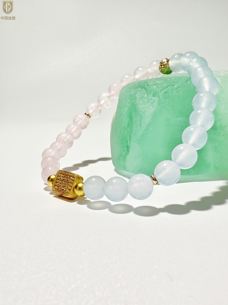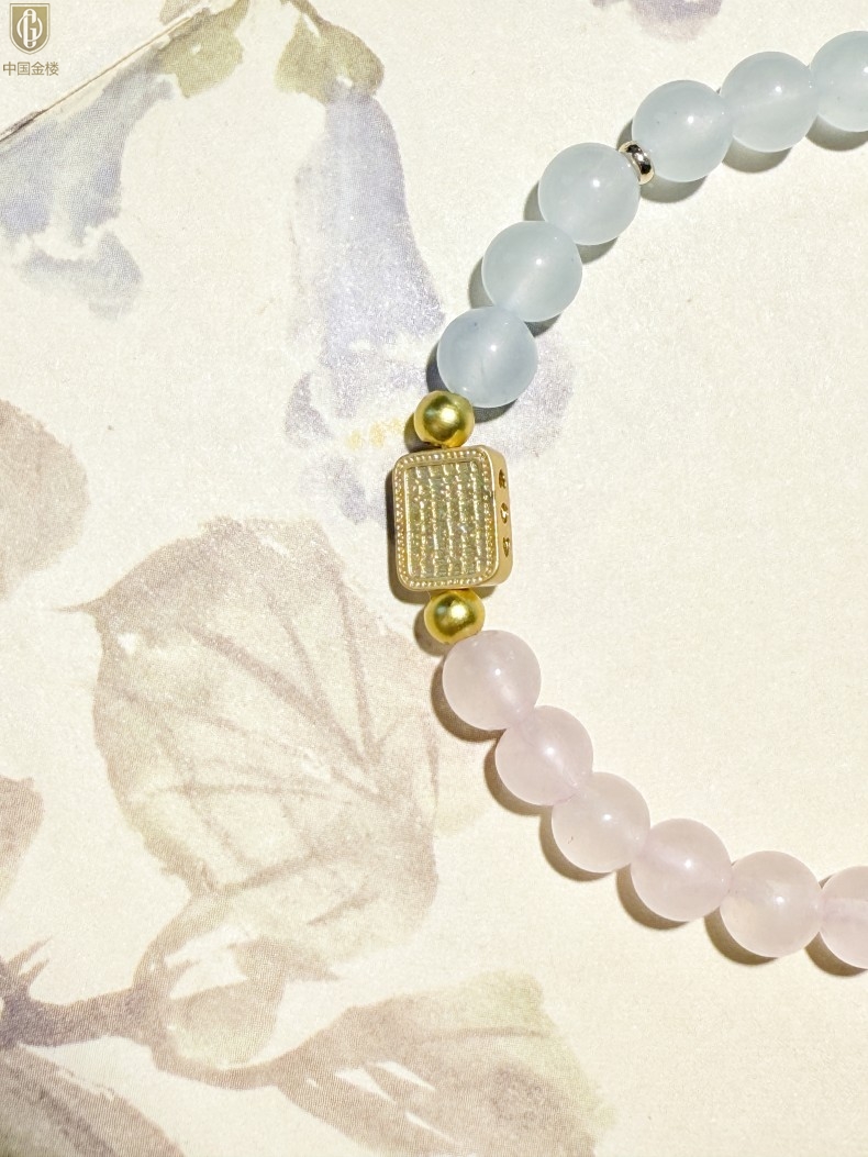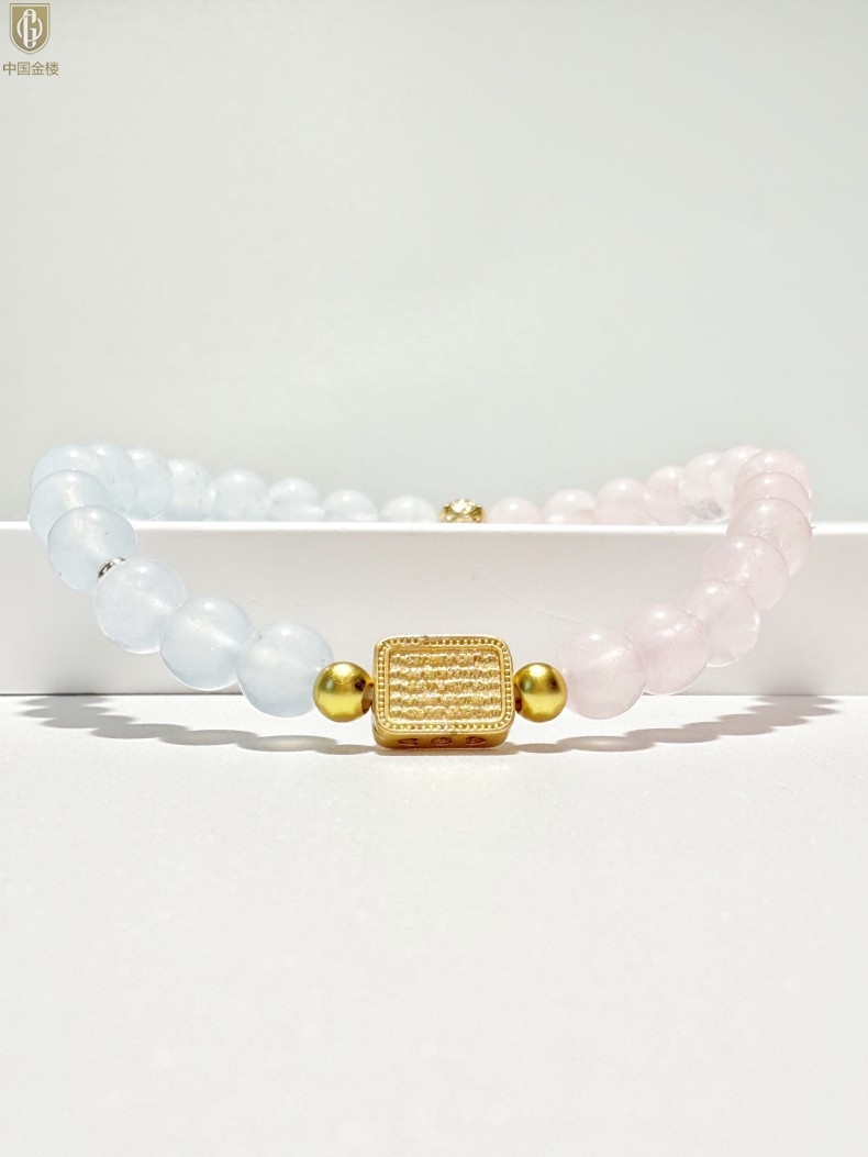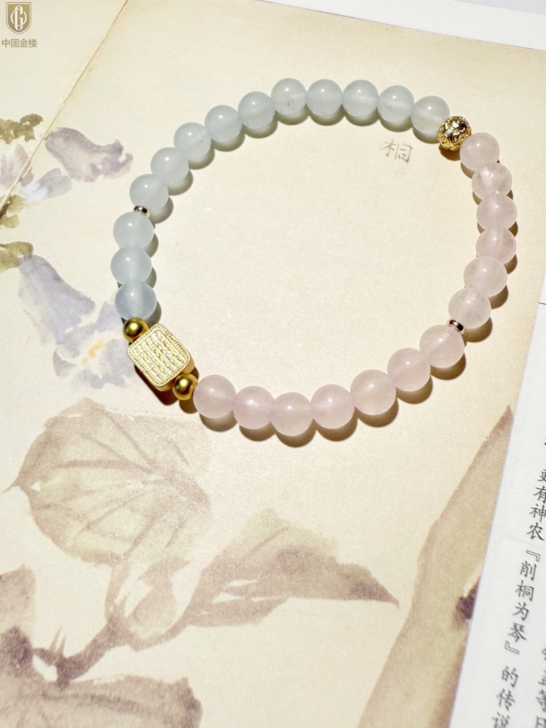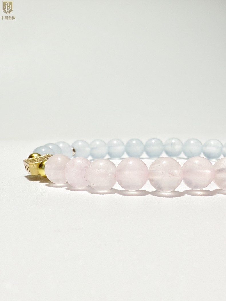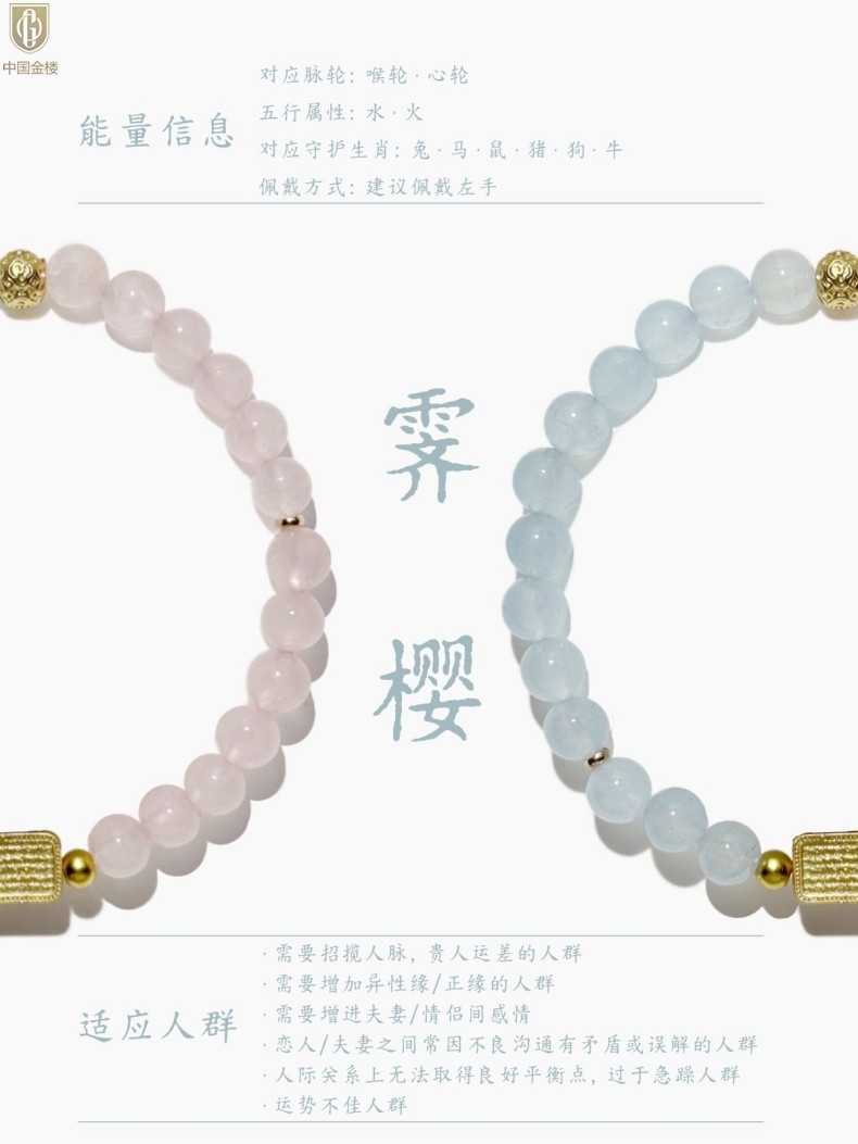 【品名】中国金楼原创「霁樱」喜水火丨新中式国风粉水晶冰川蓝玛瑙五条经文贵人运手串