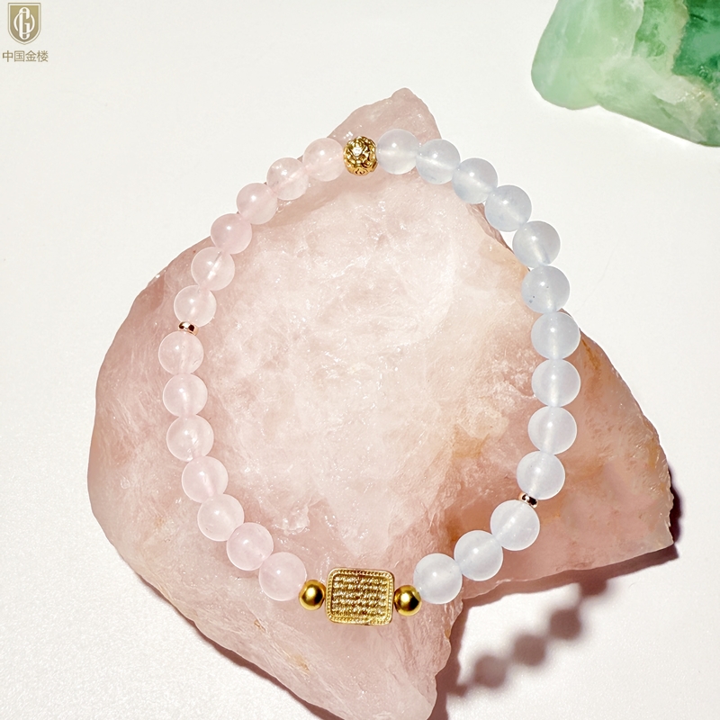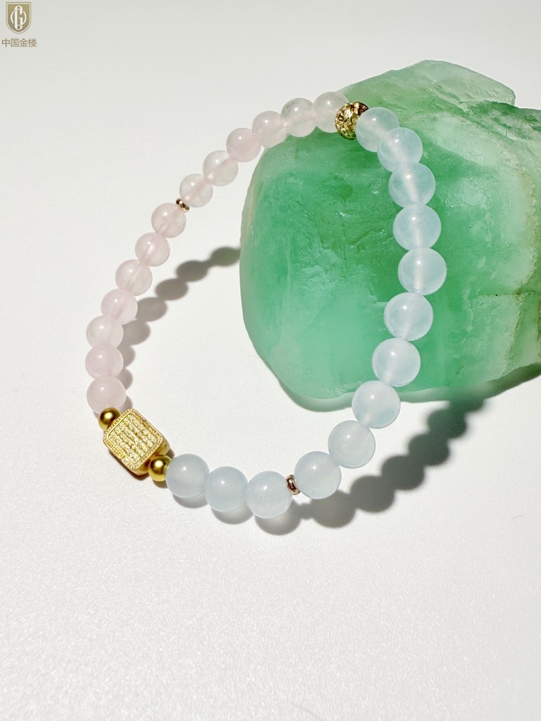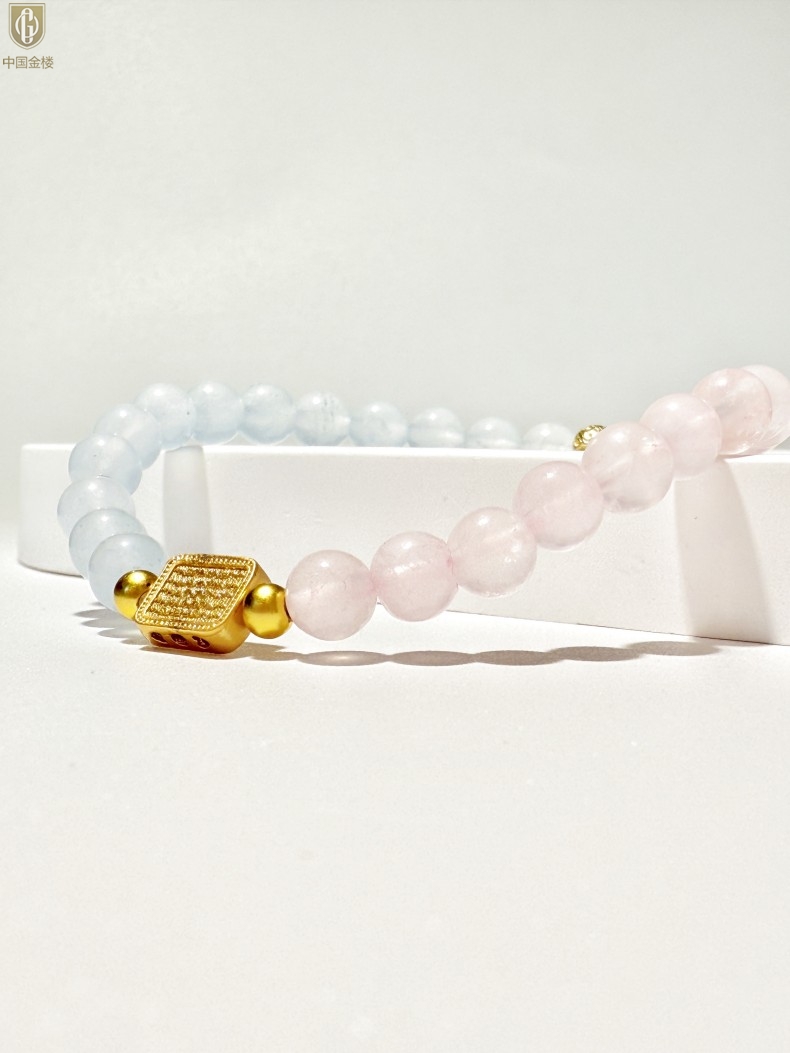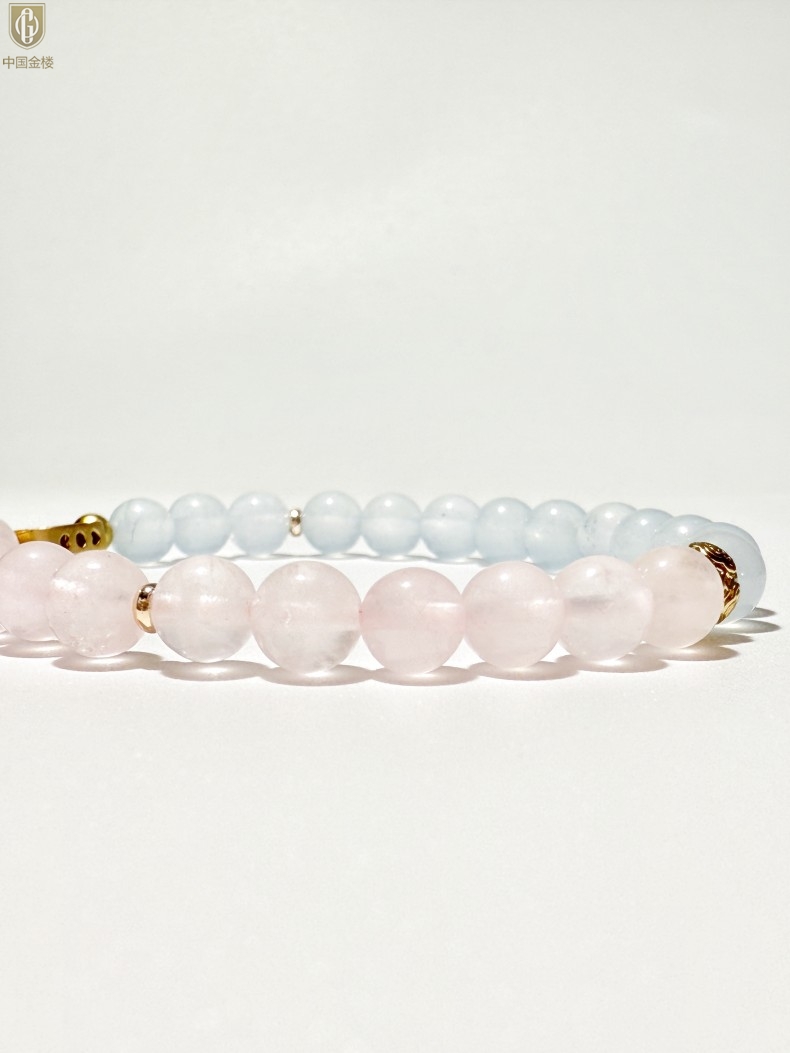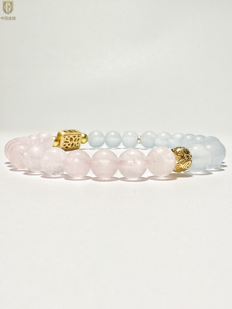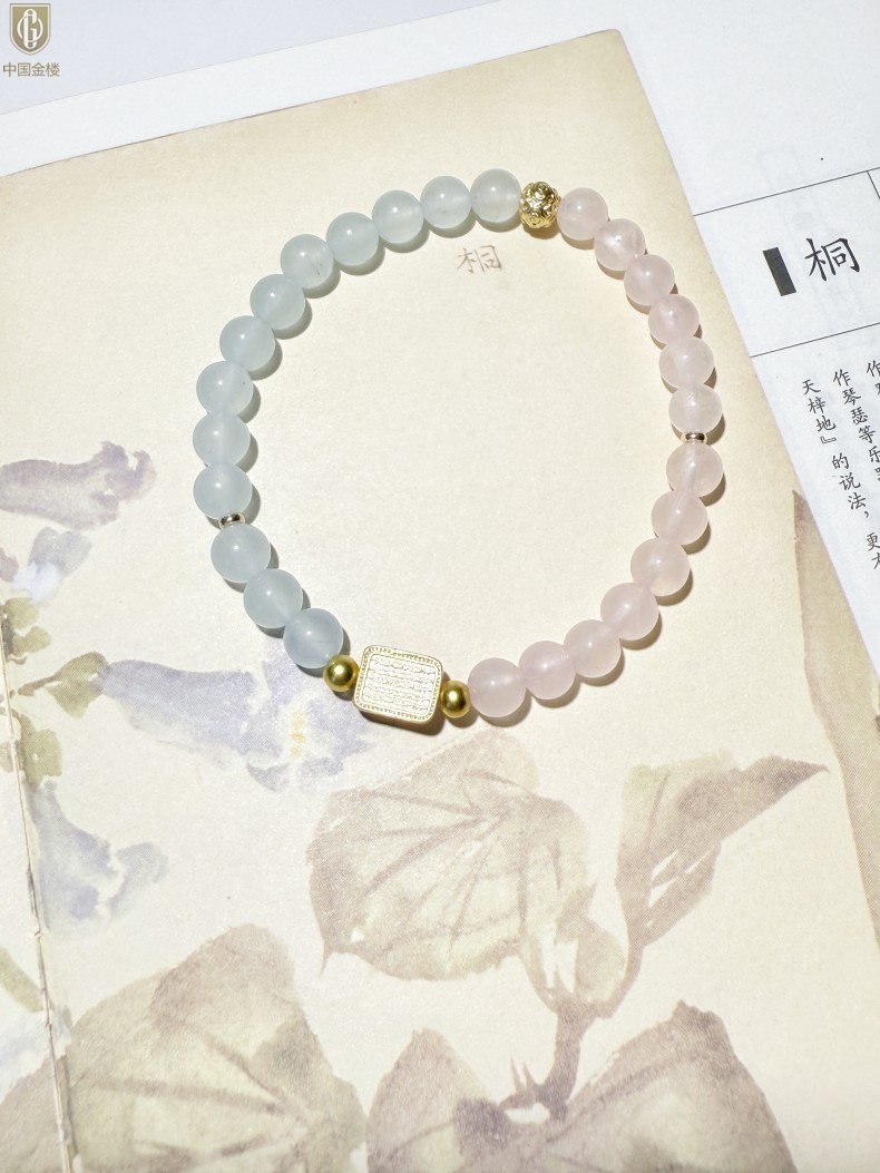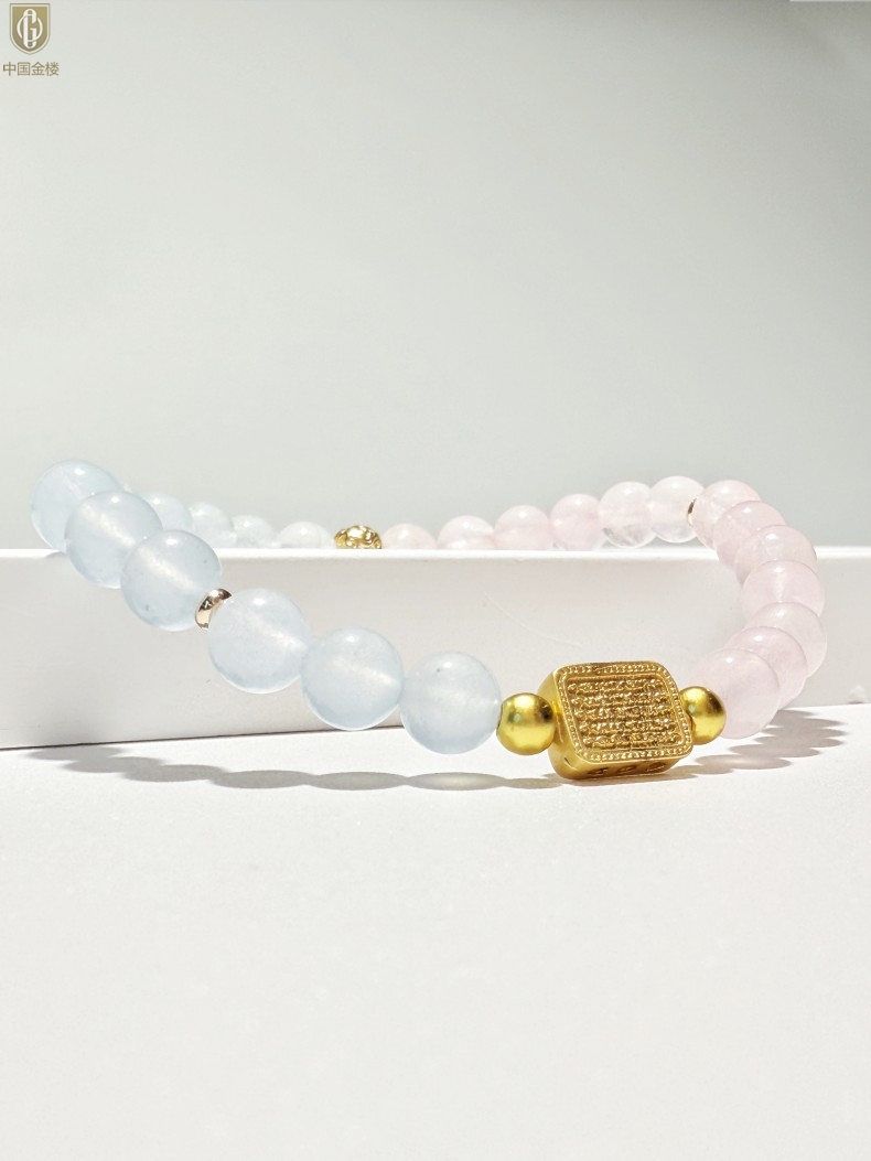 【品名】中国金楼原创「霁樱」喜水火丨新中式国风粉水晶冰川蓝玛瑙五条经文贵人运手串