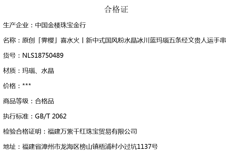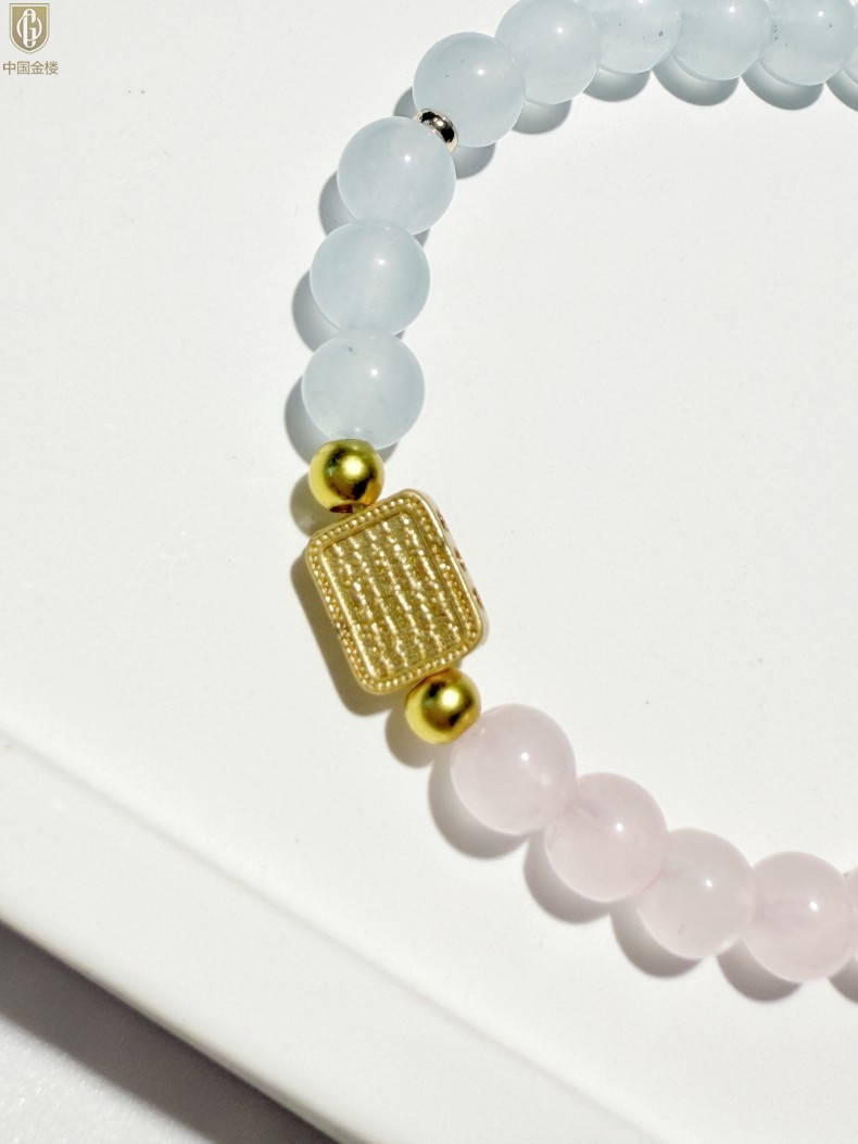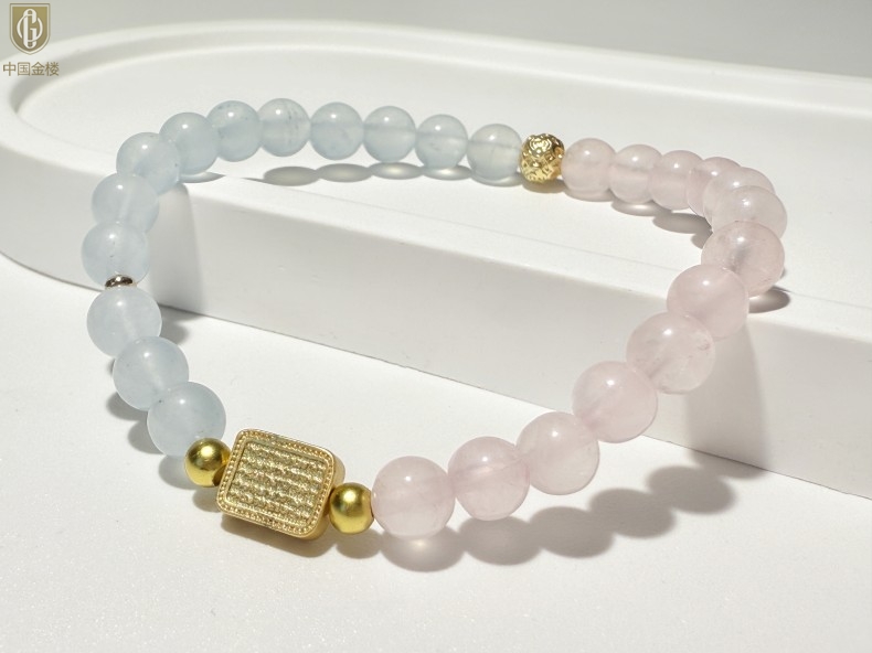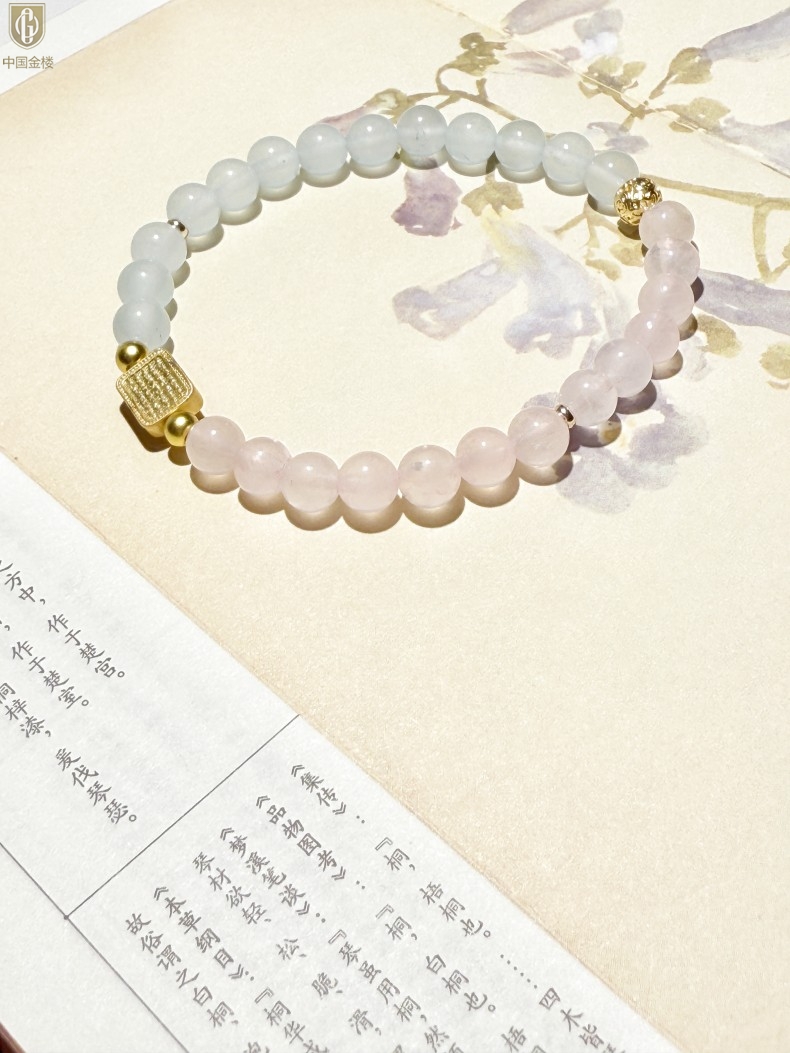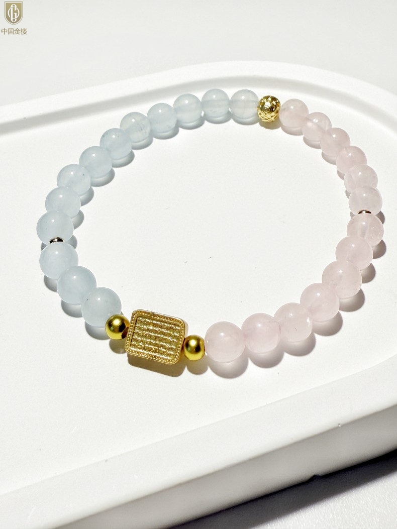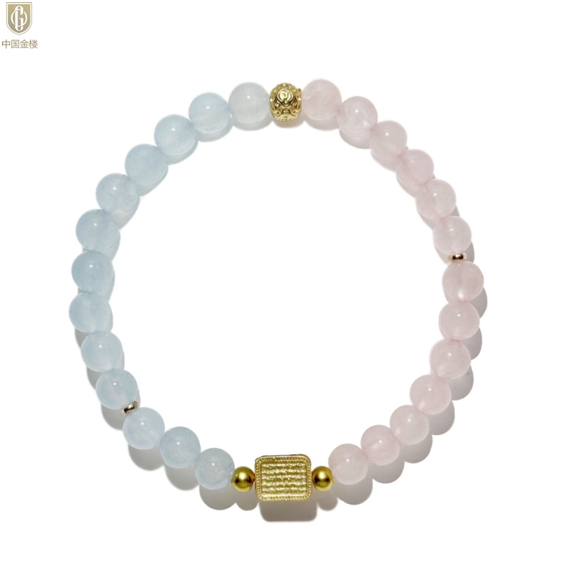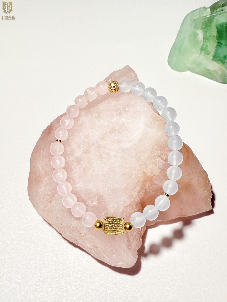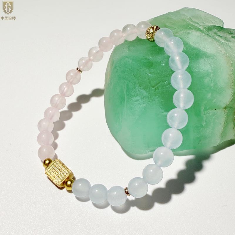 【品名】中国金楼原创「霁樱」喜水火丨新中式国风粉水晶冰川蓝玛瑙五条经文贵人运手串