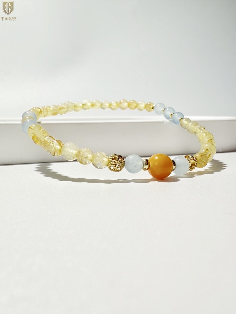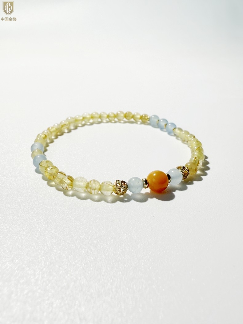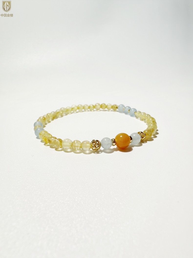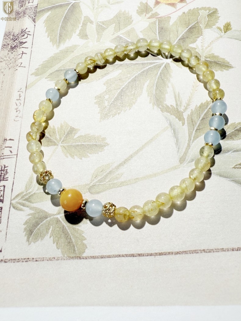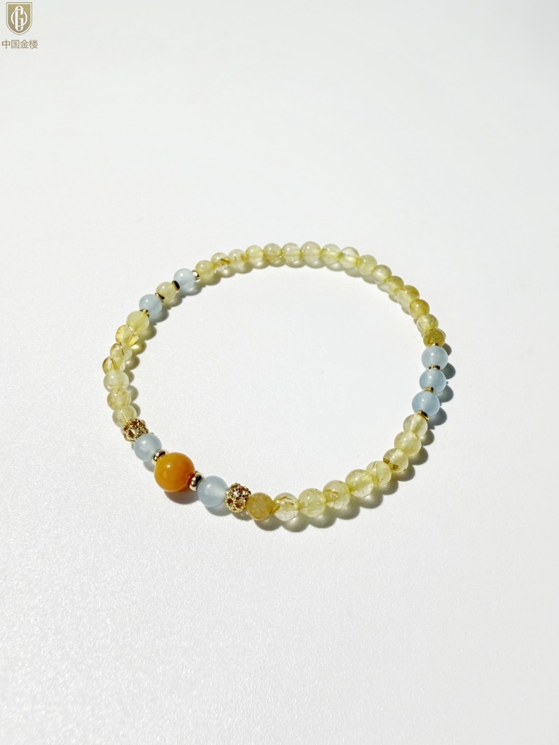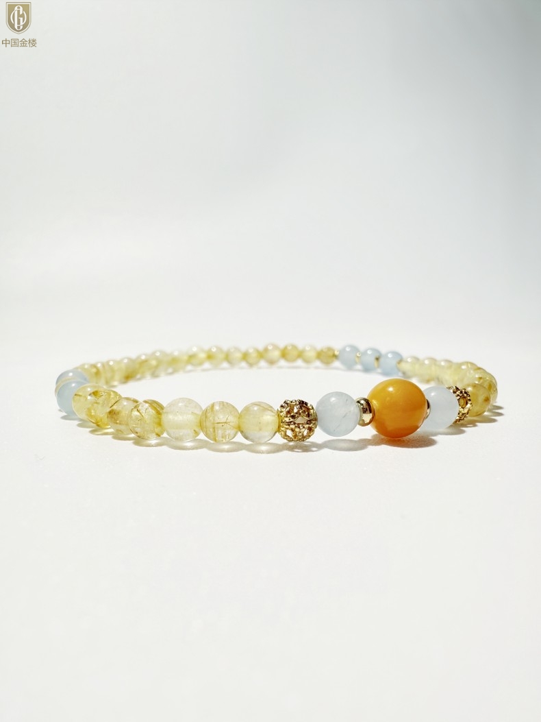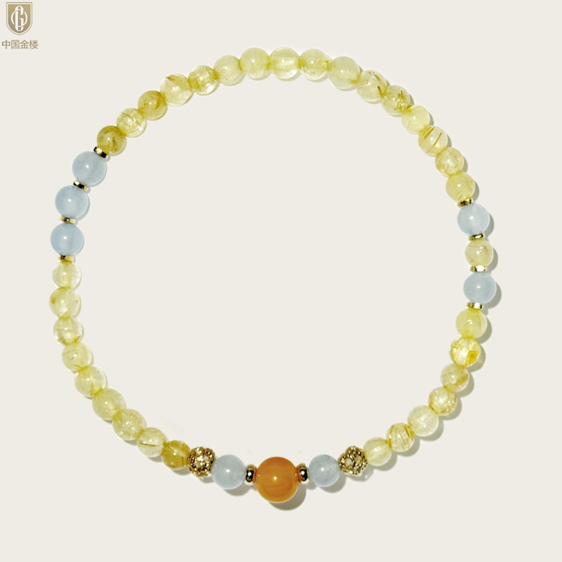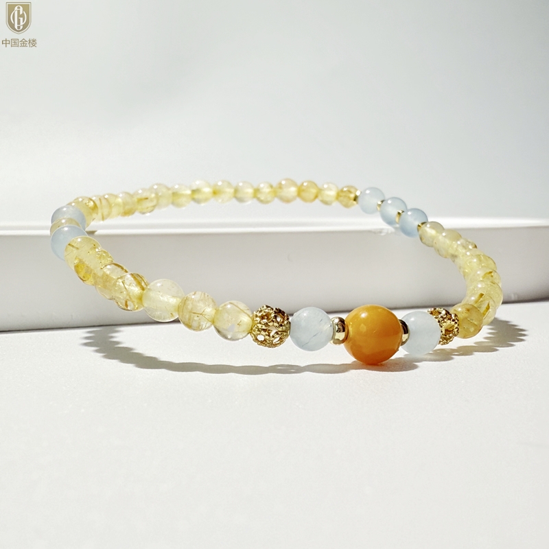 【品名】中国金楼原创「金舆」喜土水丨新中式国风金发晶蓝玛瑙蜜蜡聚财手链