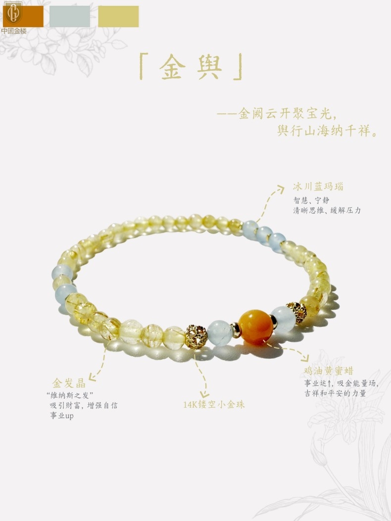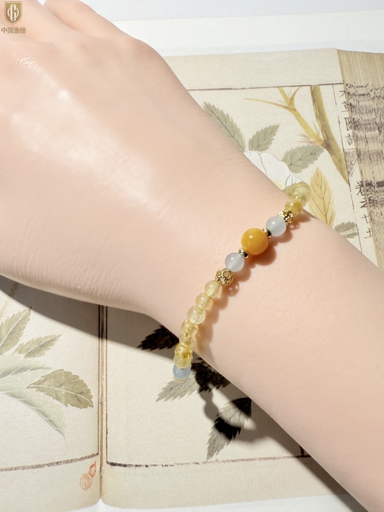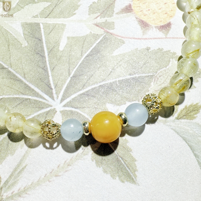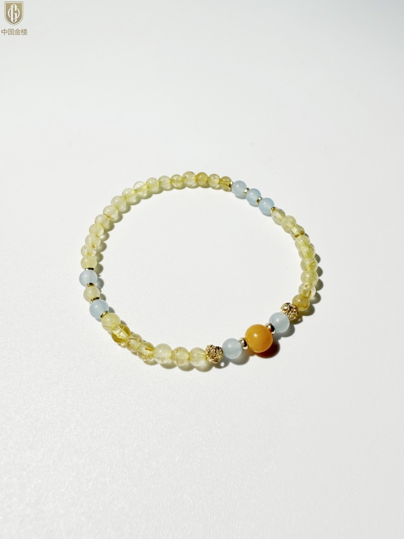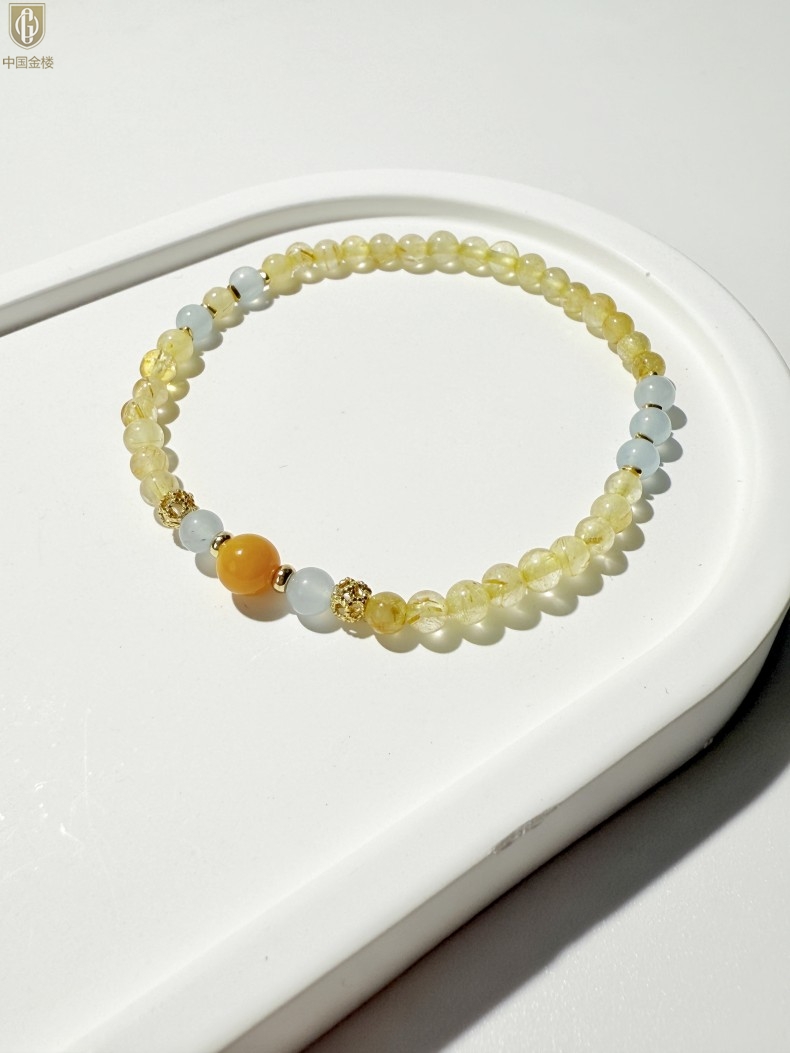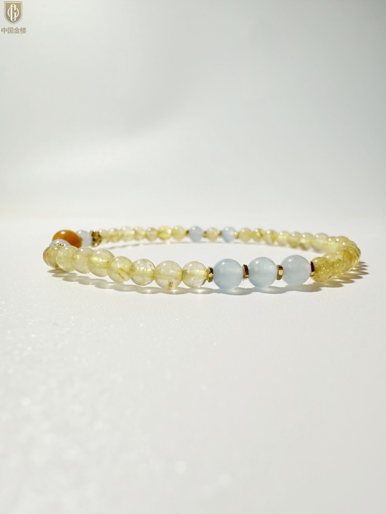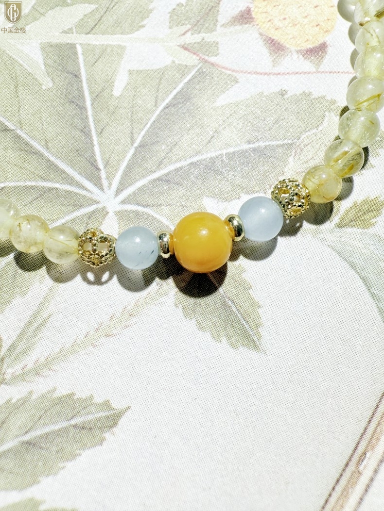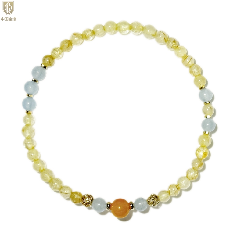 【品名】中国金楼原创「金舆」喜土水丨新中式国风金发晶蓝玛瑙蜜蜡聚财手链
