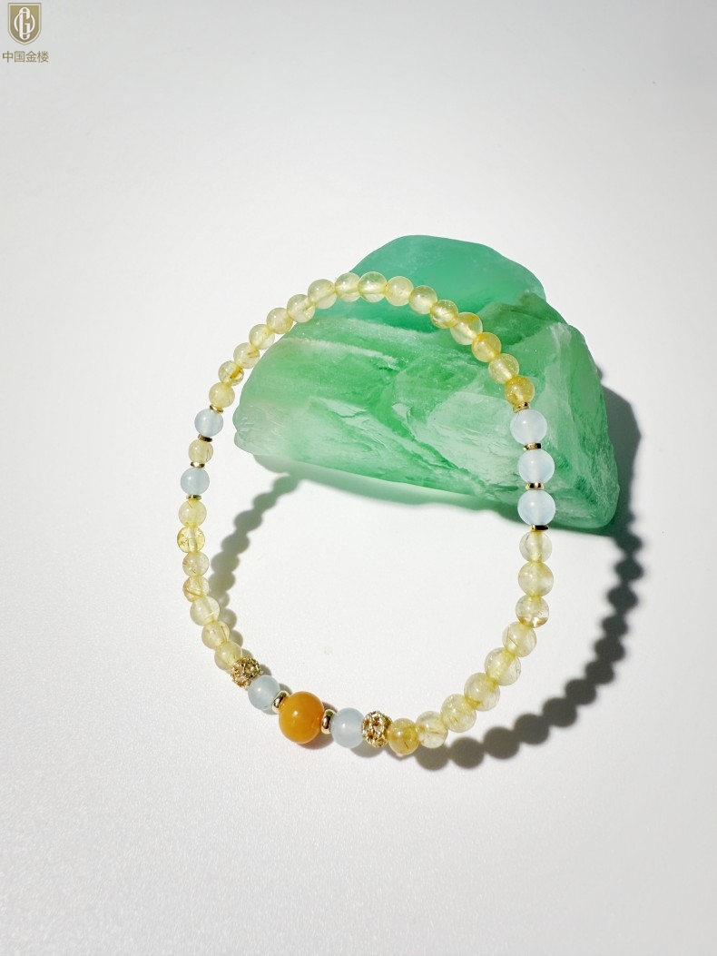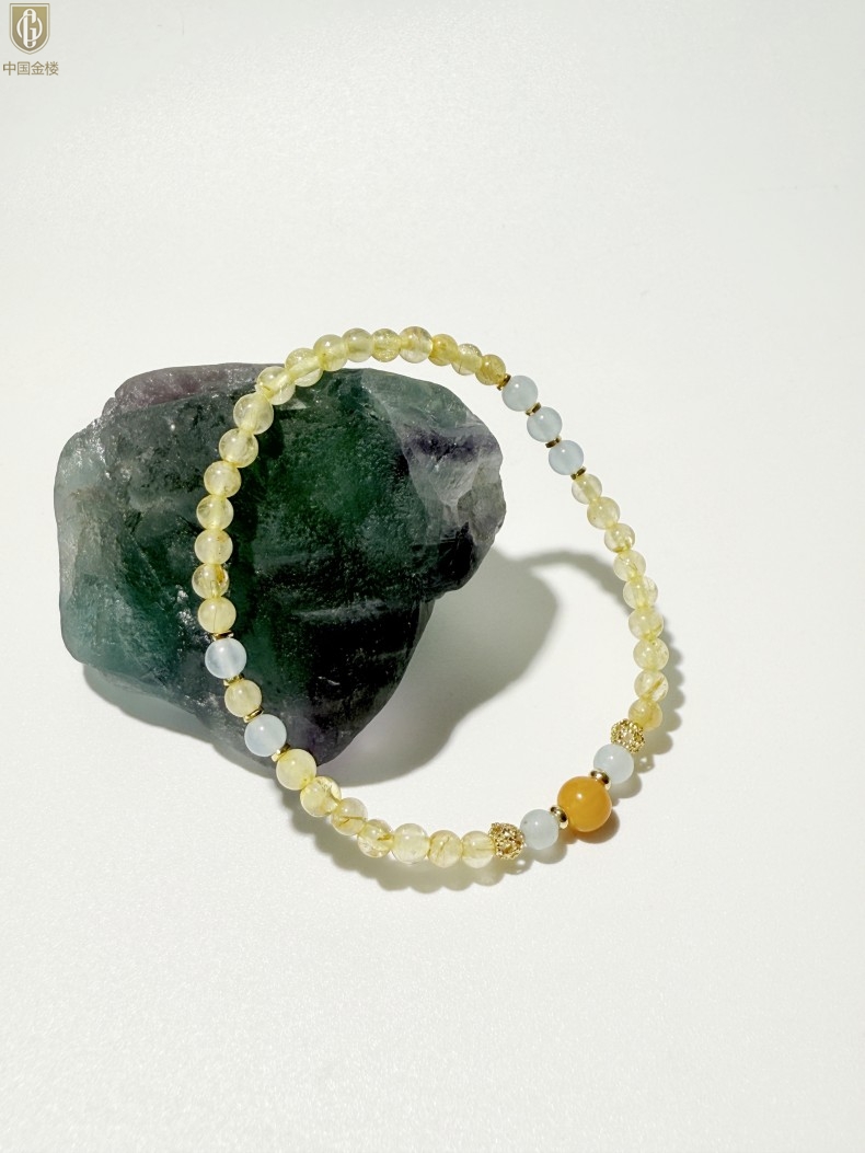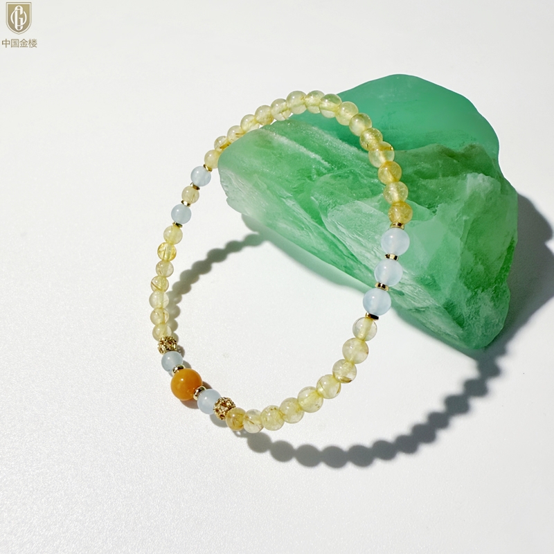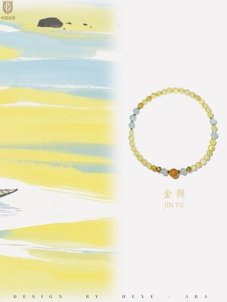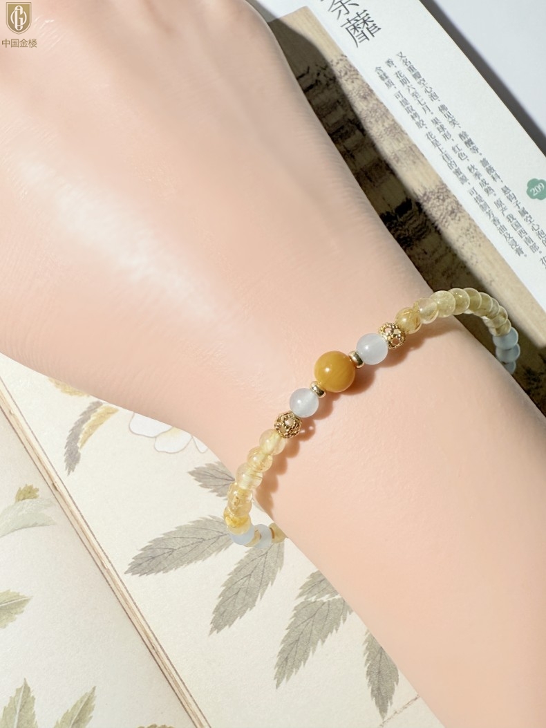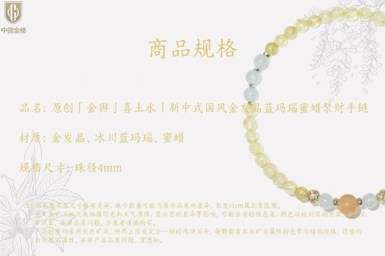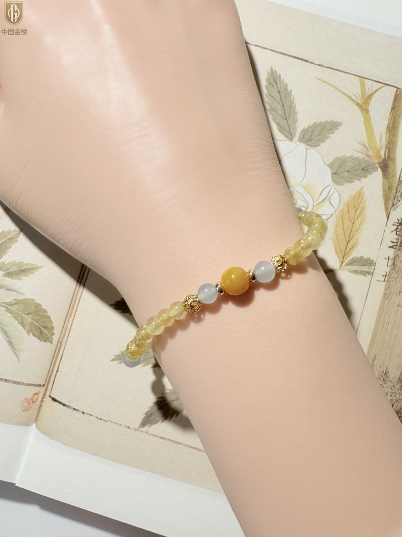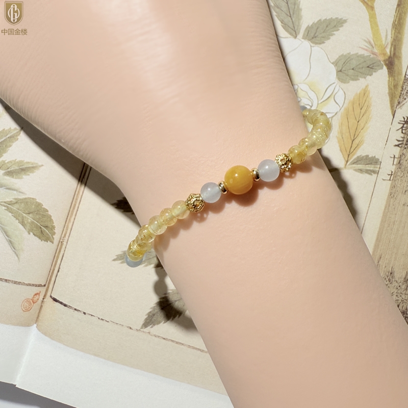 【品名】中国金楼原创「金舆」喜土水丨新中式国风金发晶蓝玛瑙蜜蜡聚财手链