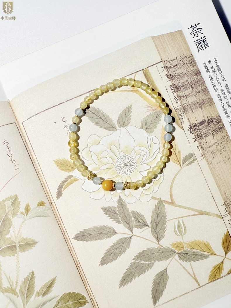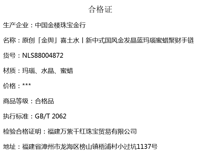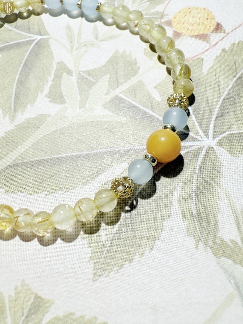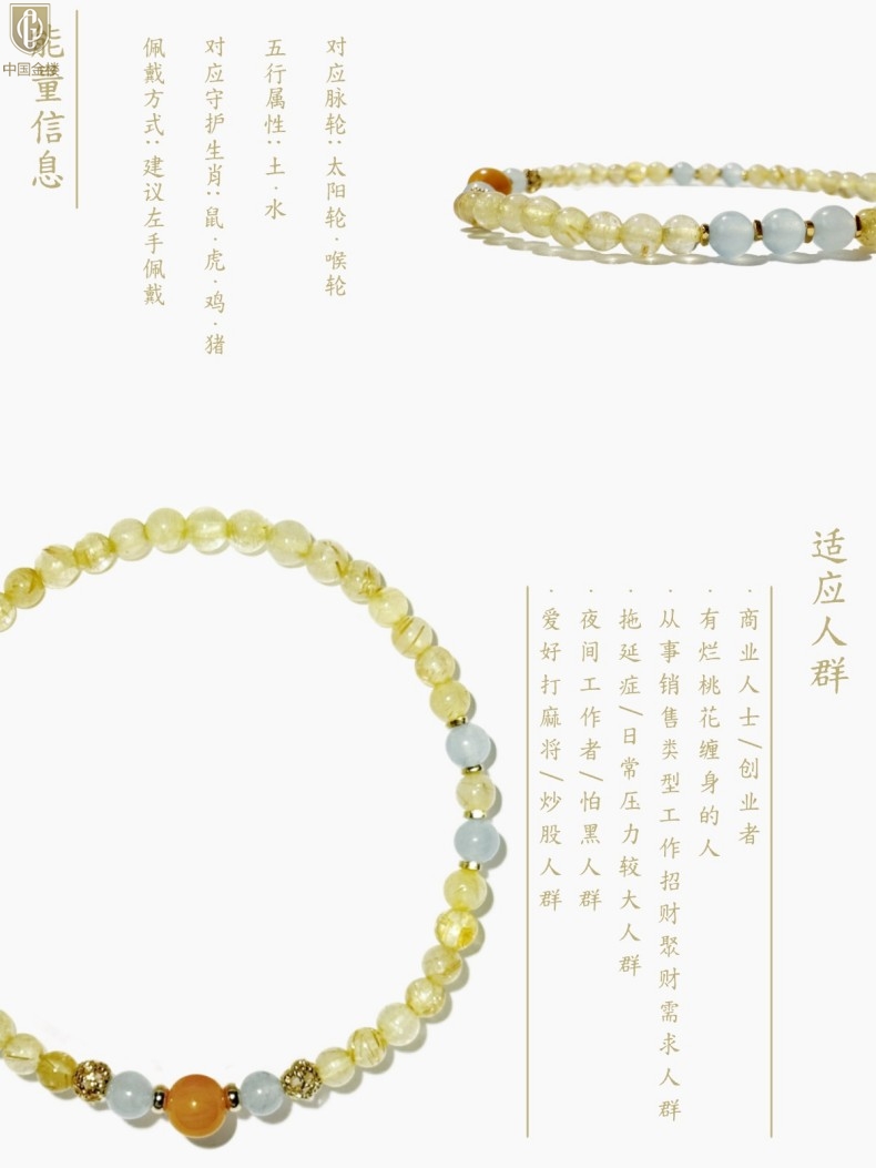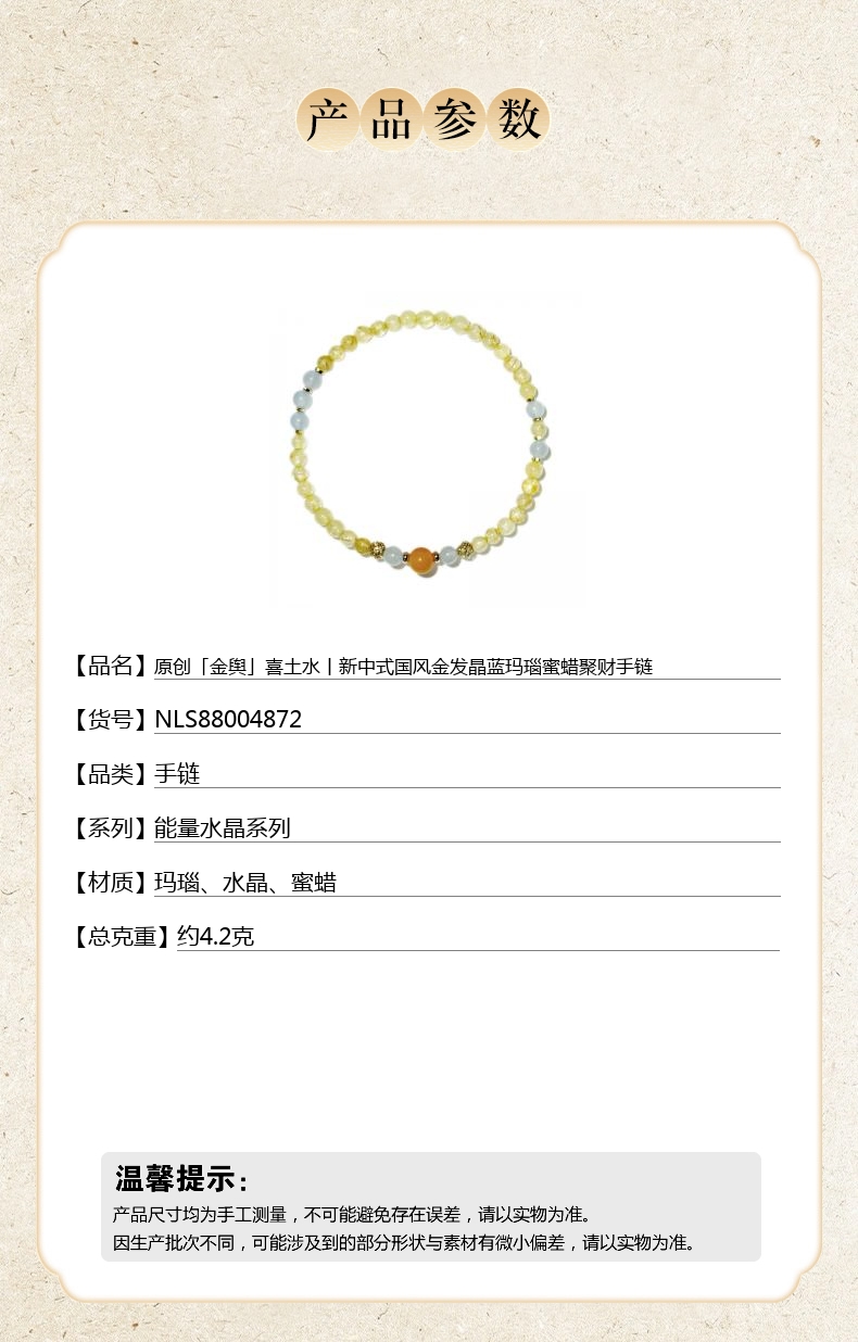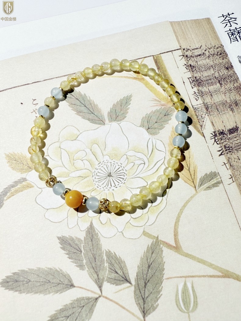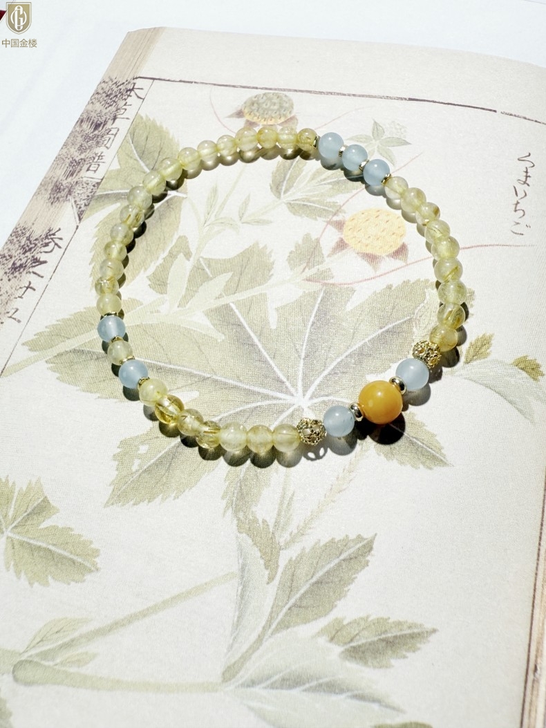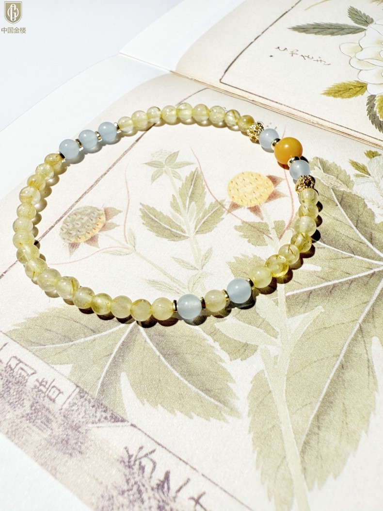 【品名】中国金楼原创「金舆」喜土水丨新中式国风金发晶蓝玛瑙蜜蜡聚财手链