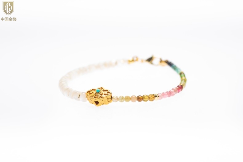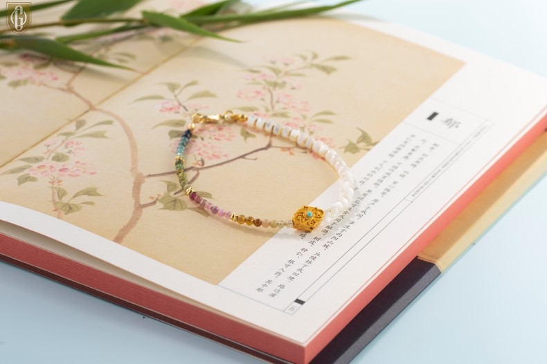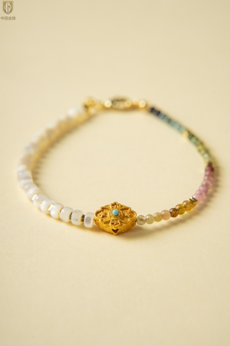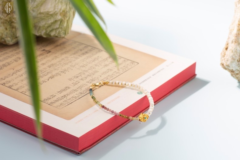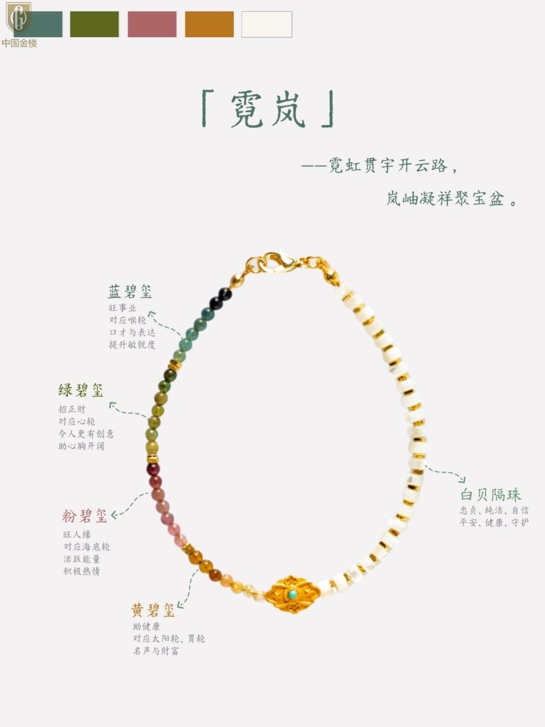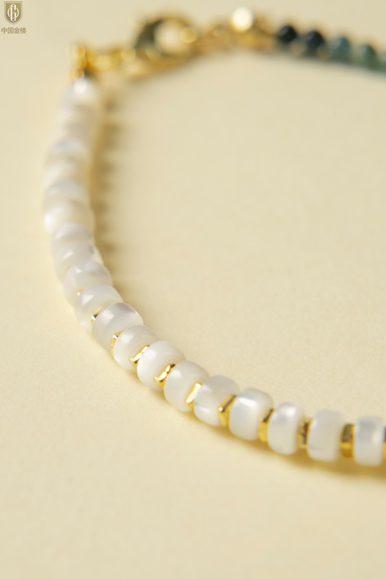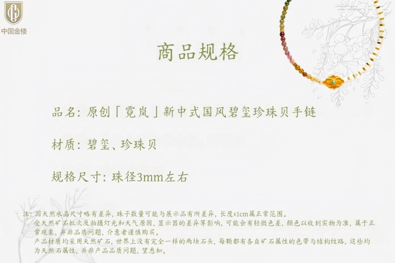 【品名】中国金楼原创「霓岚」新中式国风碧玺珍珠贝守护手链