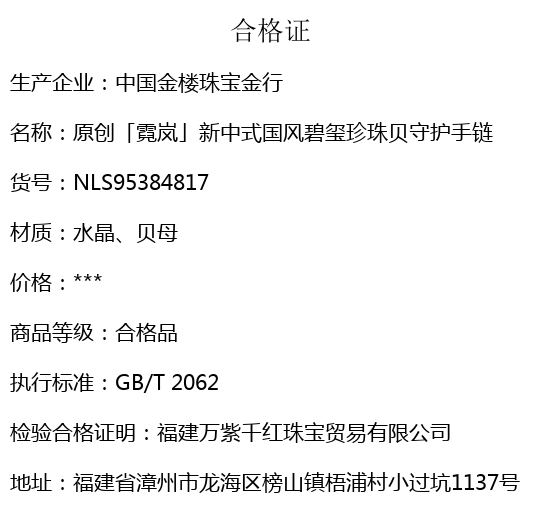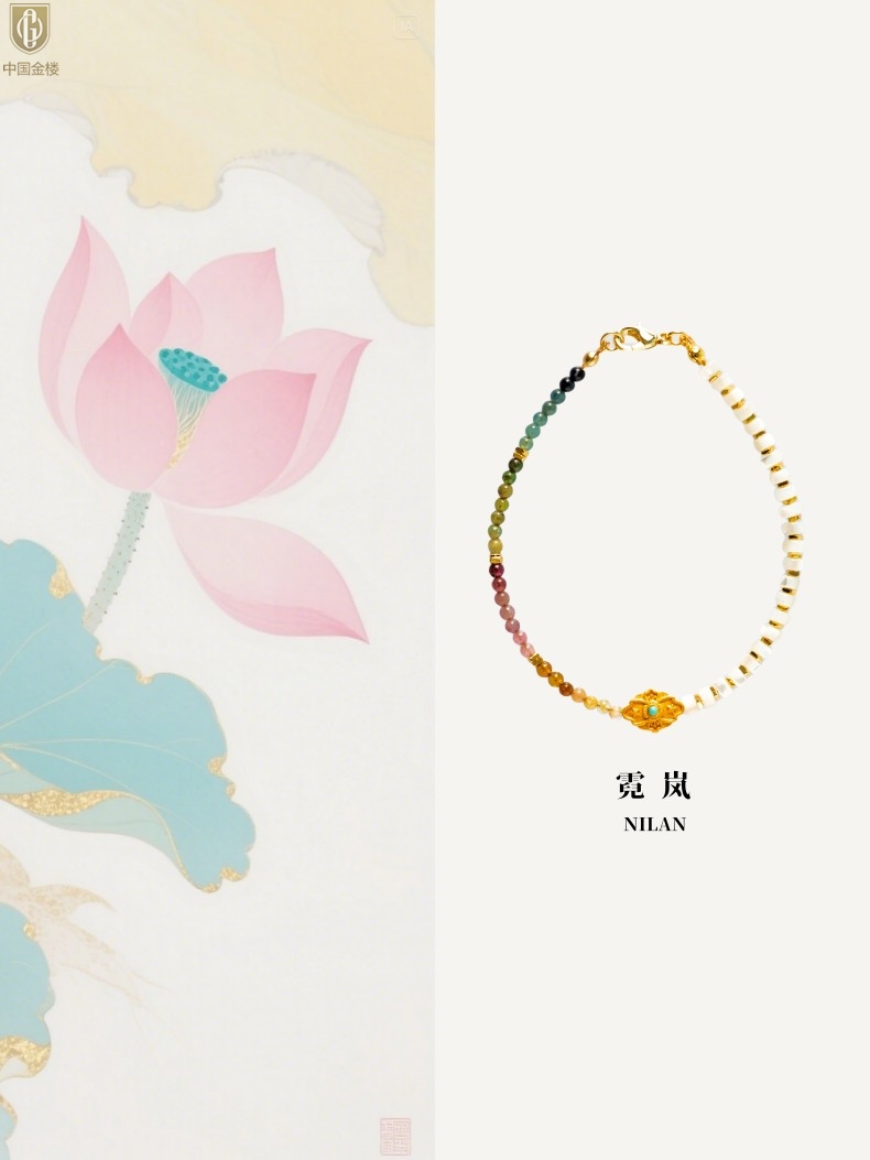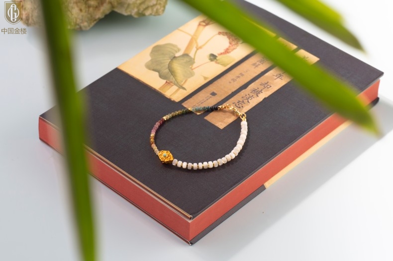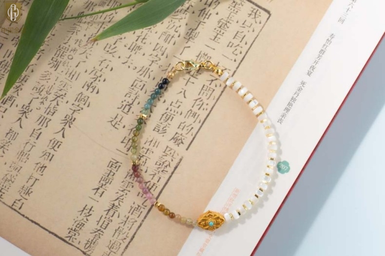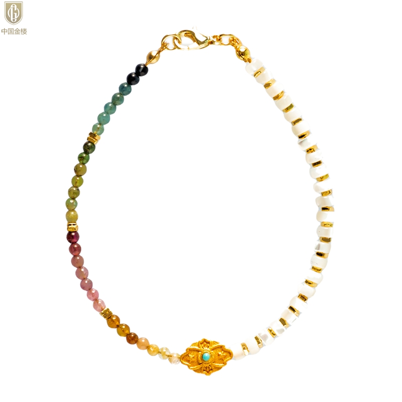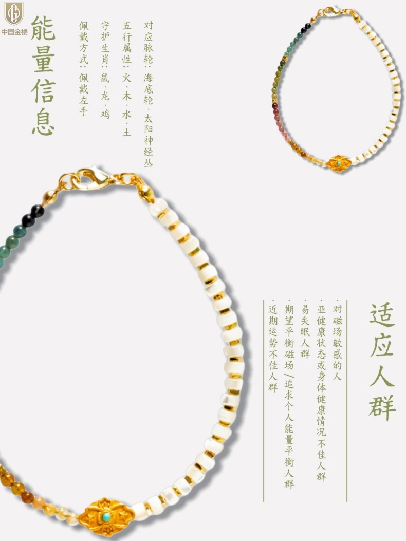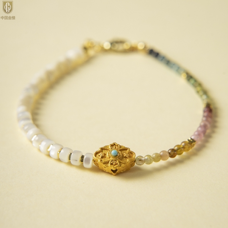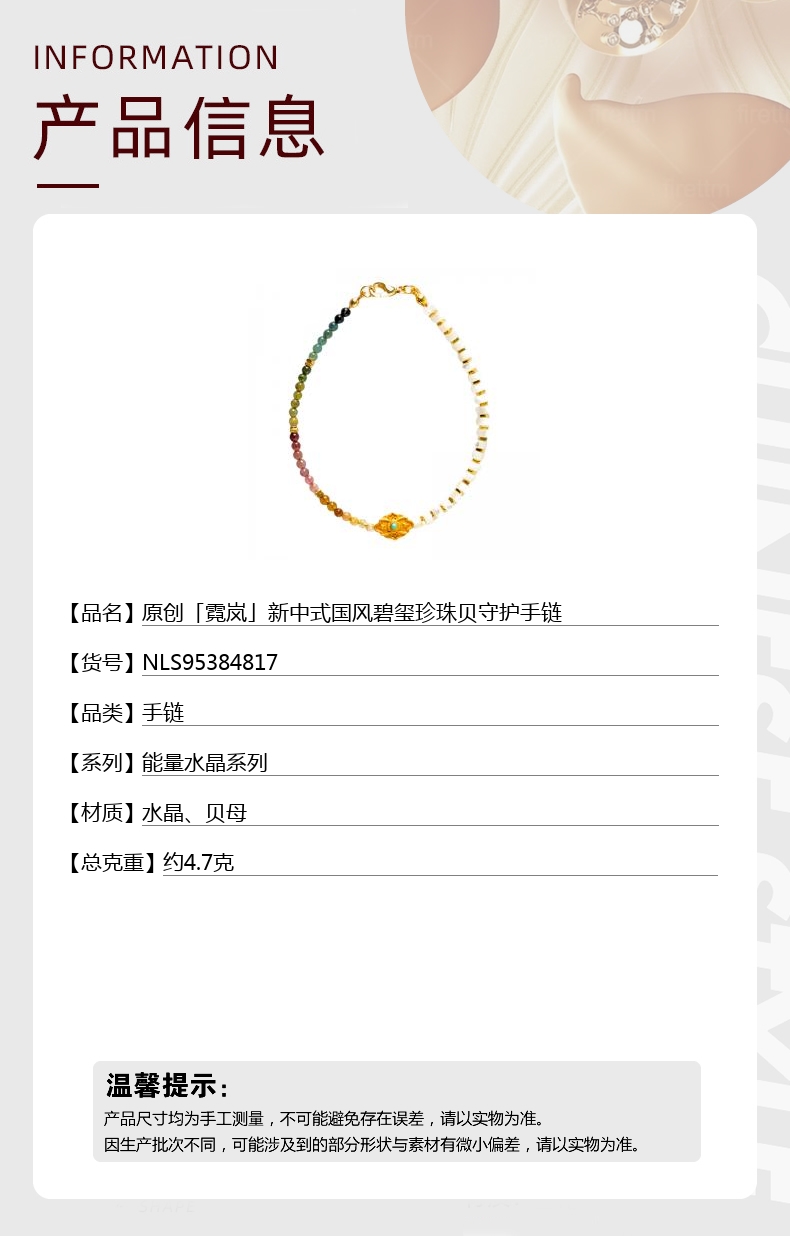 【品名】中国金楼原创「霓岚」新中式国风碧玺珍珠贝守护手链