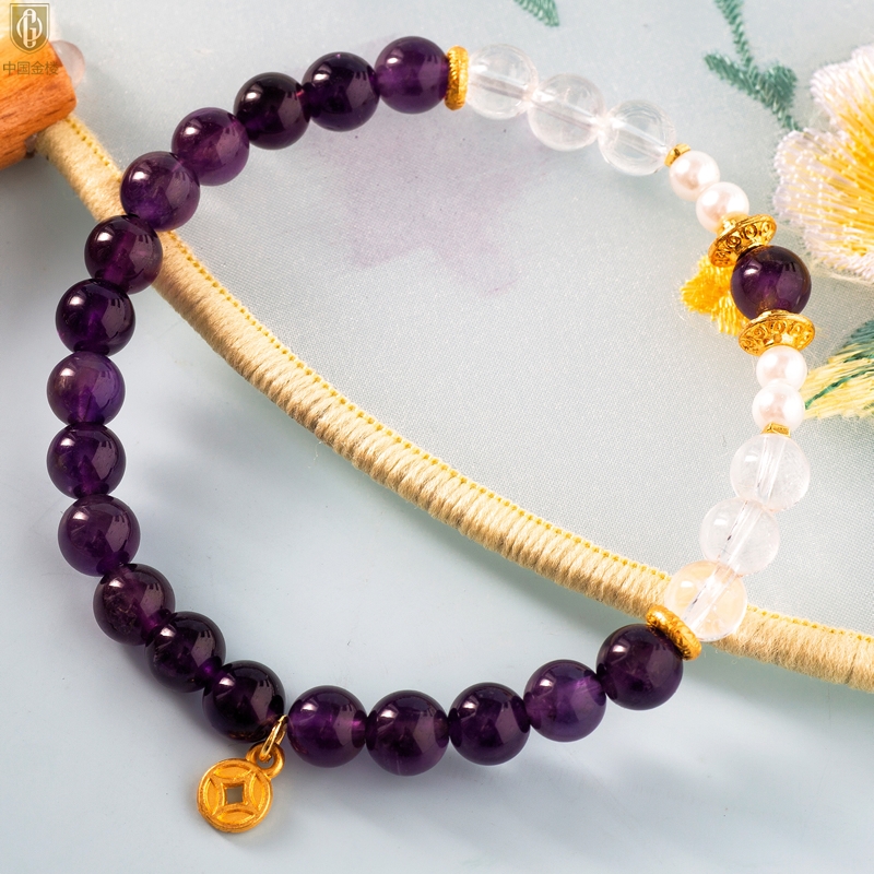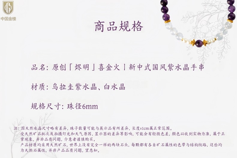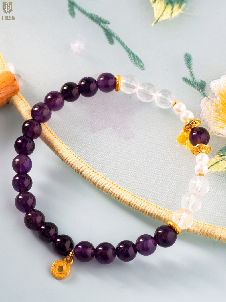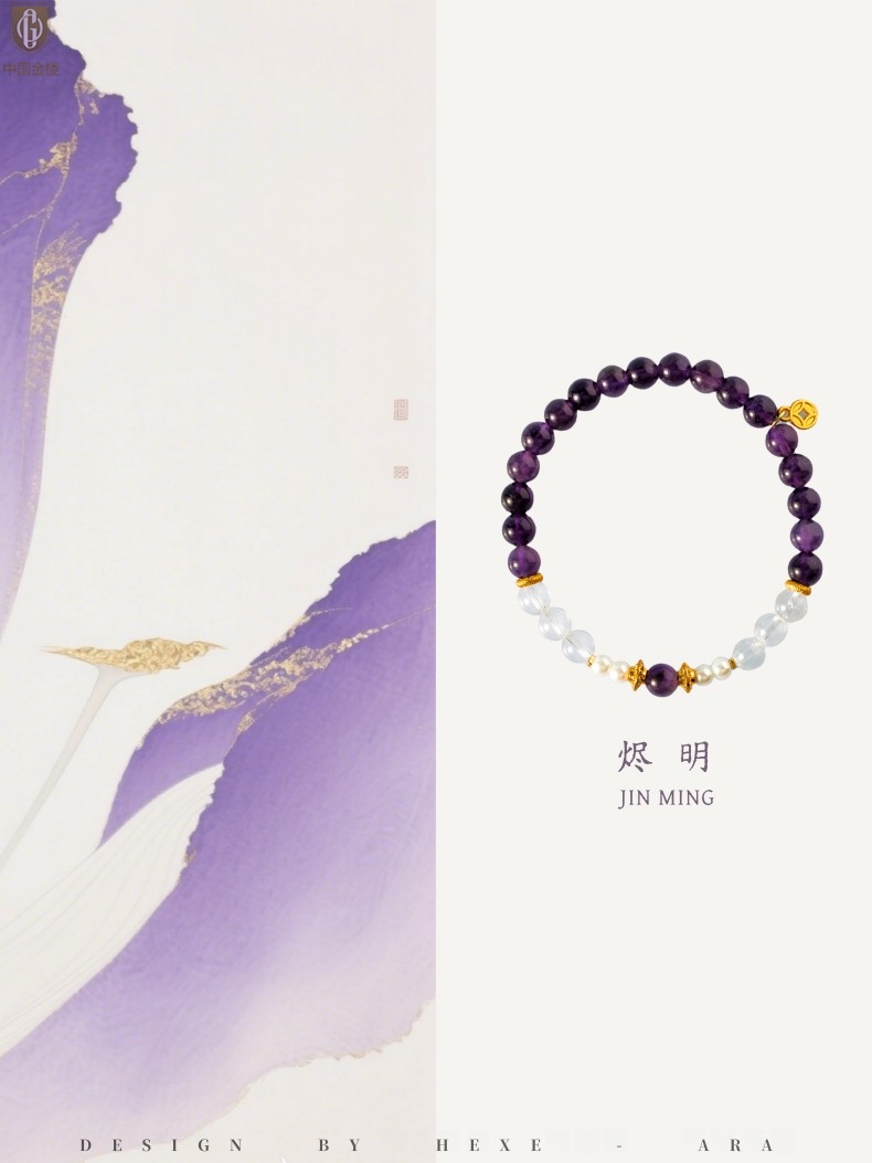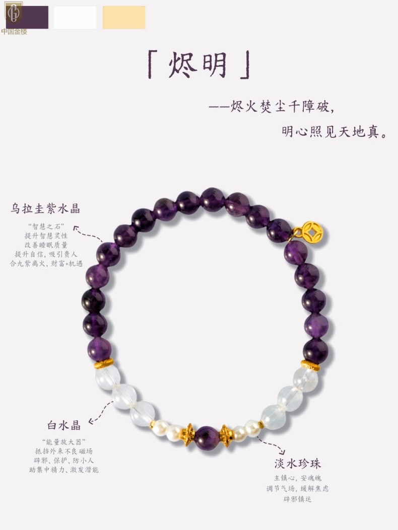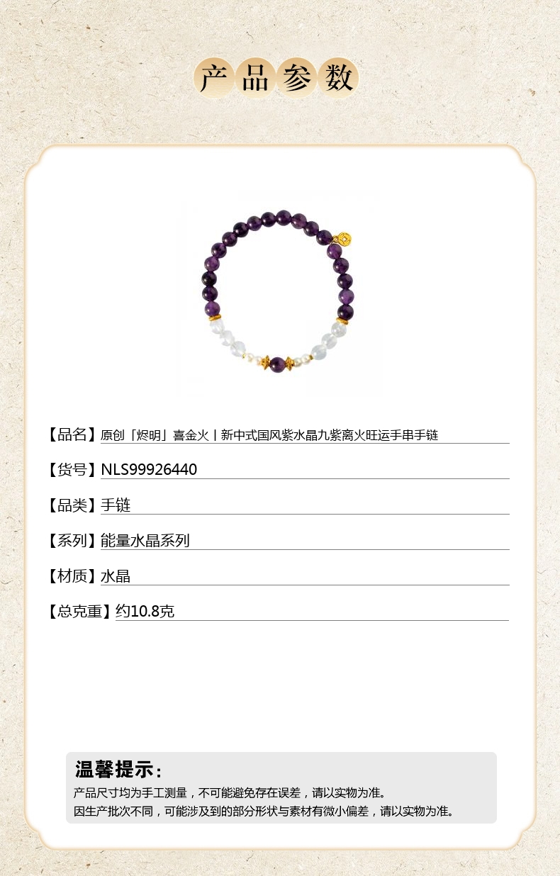 【品名】中国金楼原创「烬明」喜金火丨新中式国风紫水晶九紫离火旺运手串手链