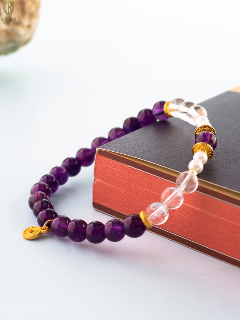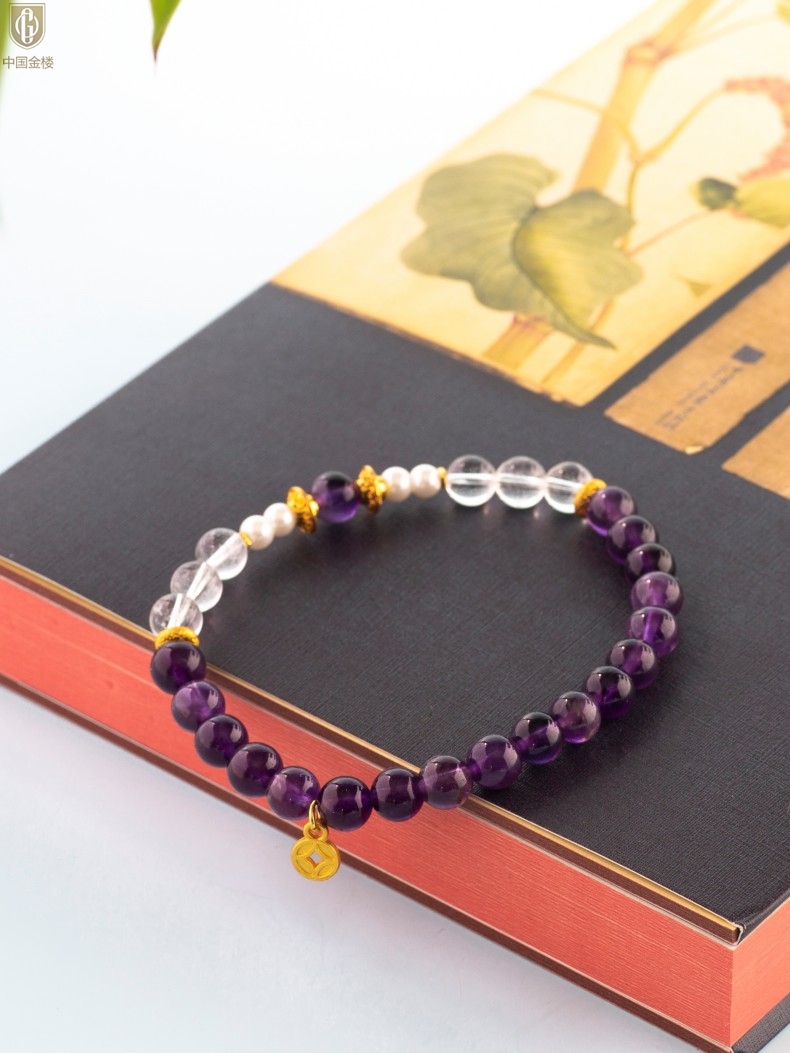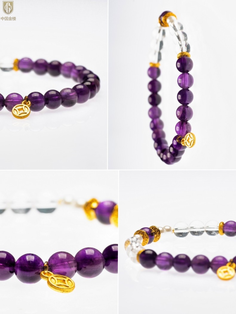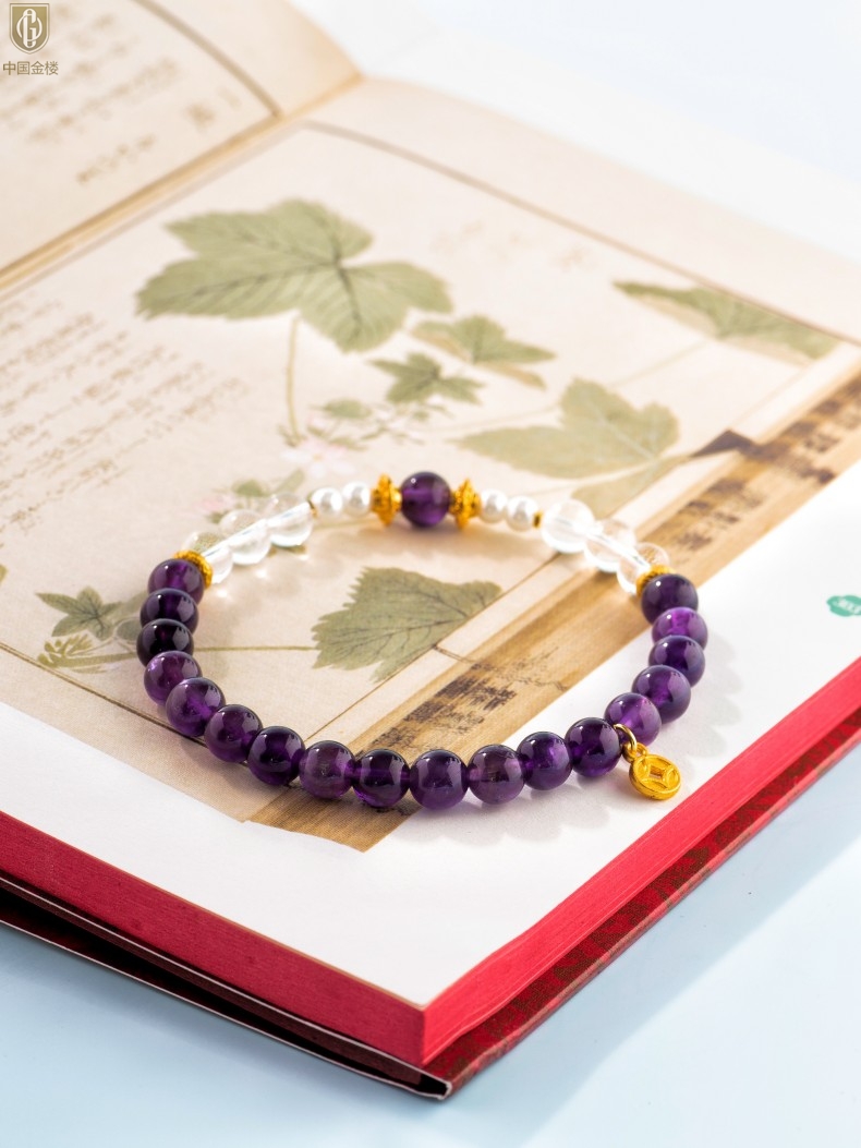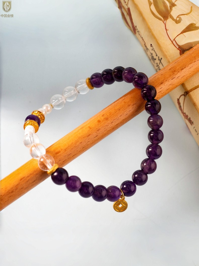 【品名】中国金楼原创「烬明」喜金火丨新中式国风紫水晶九紫离火旺运手串手链