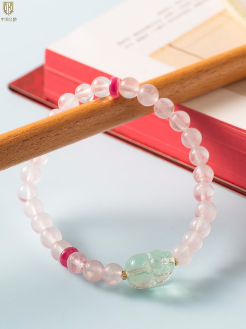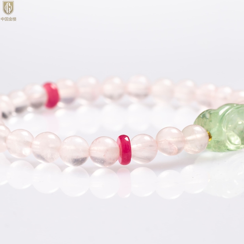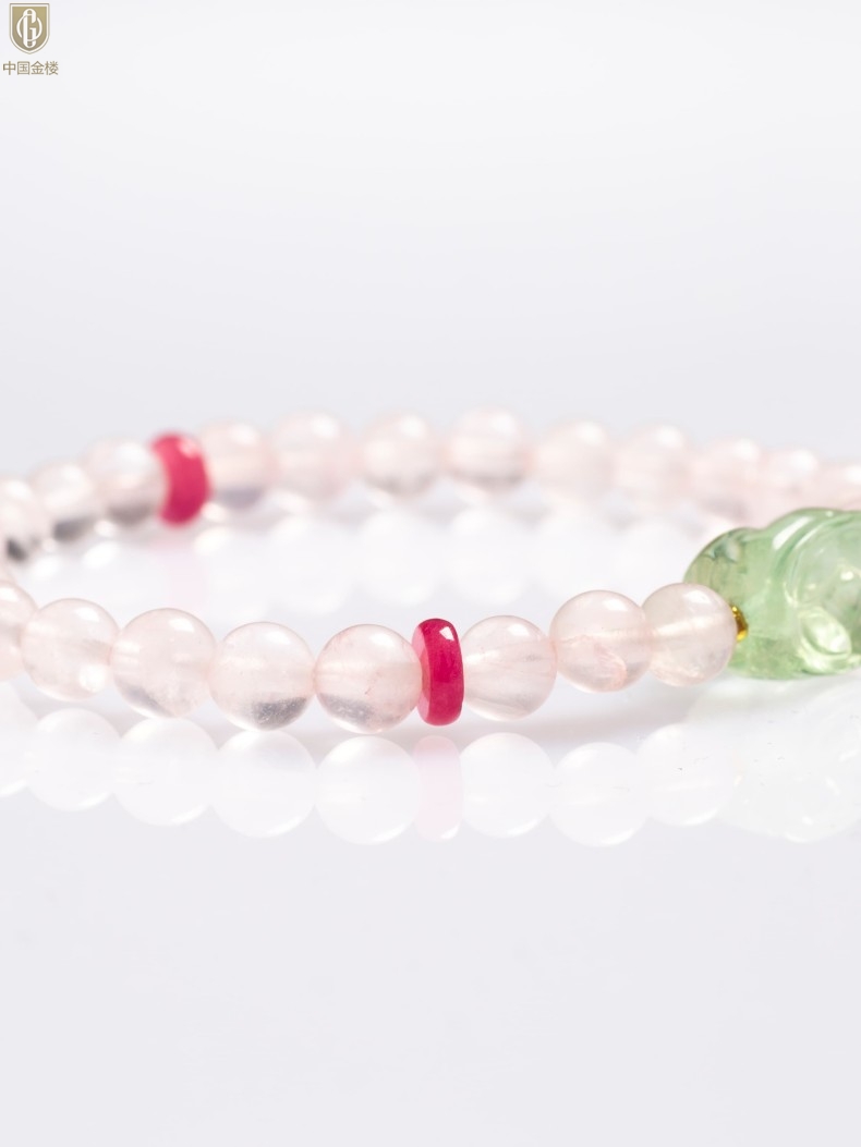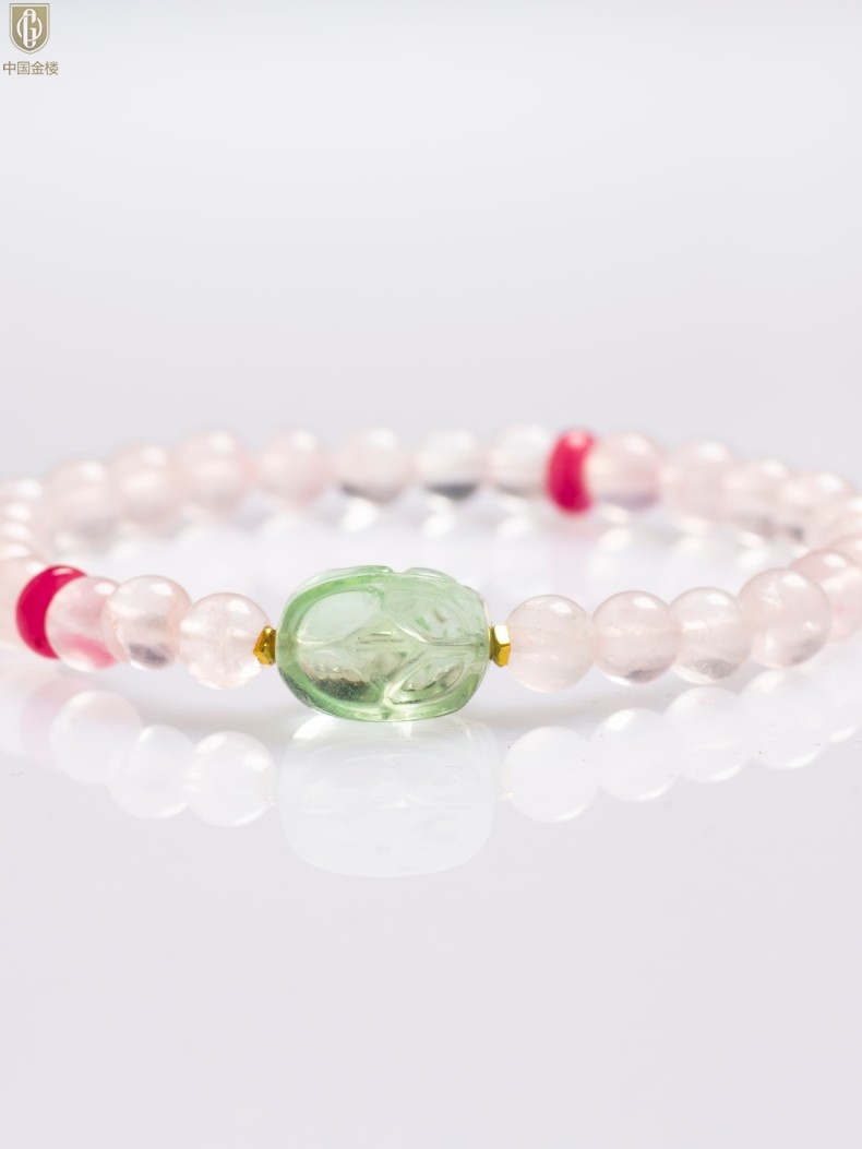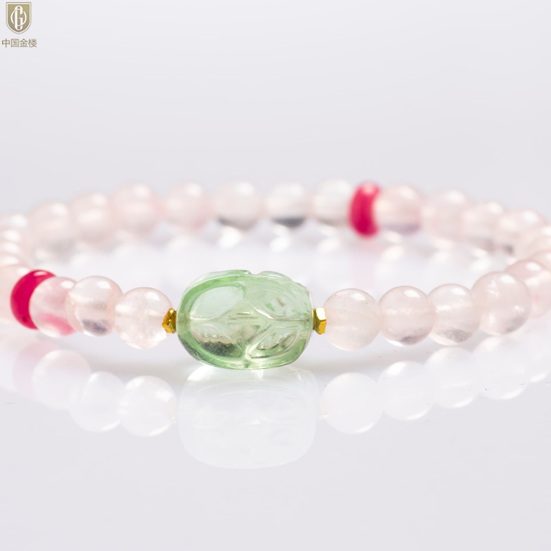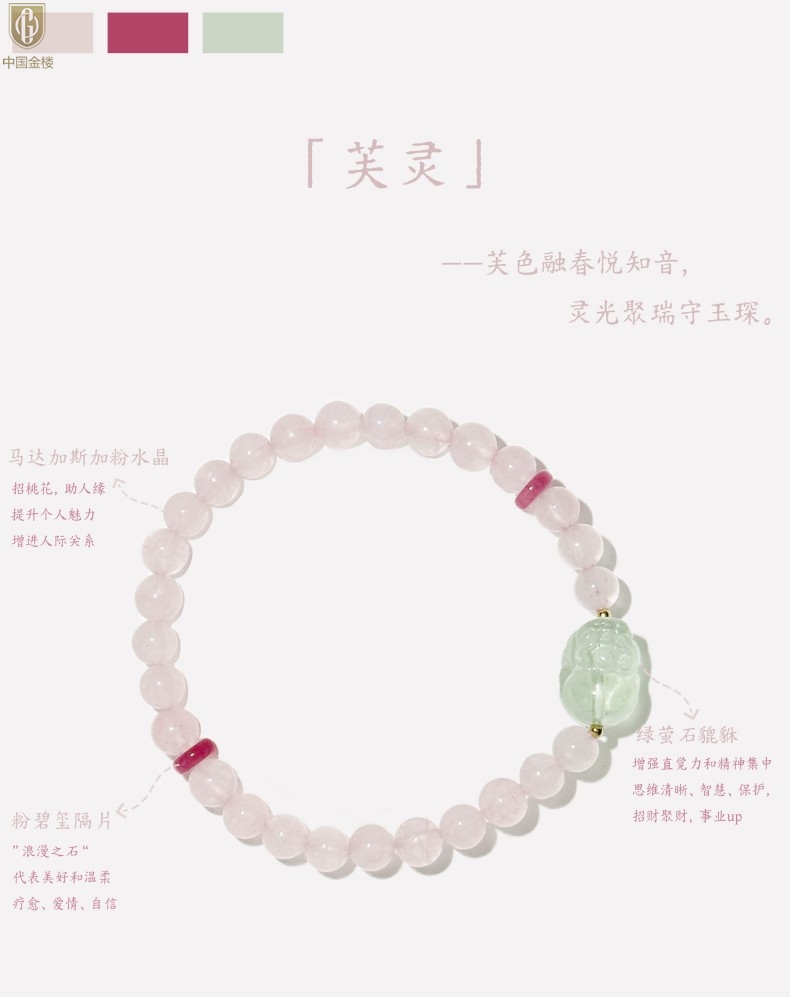 【品名】中国金楼原创「芙灵」喜木火丨原创设计粉水晶绿萤石貔貅手串