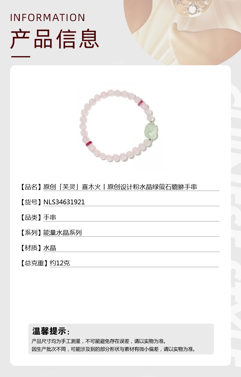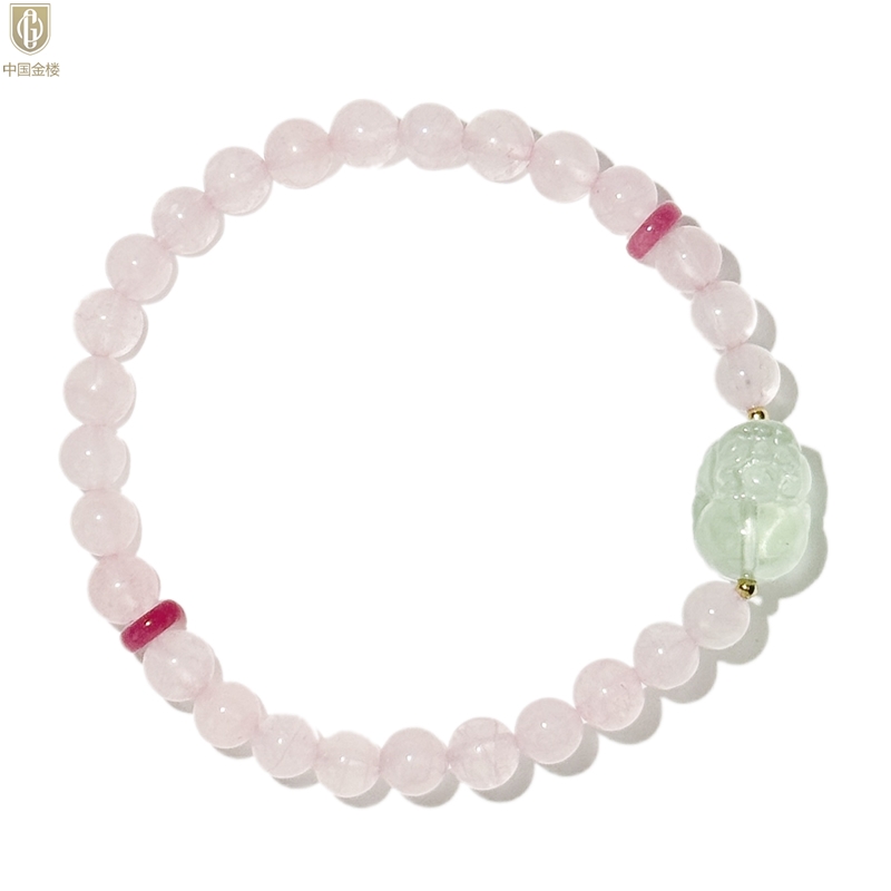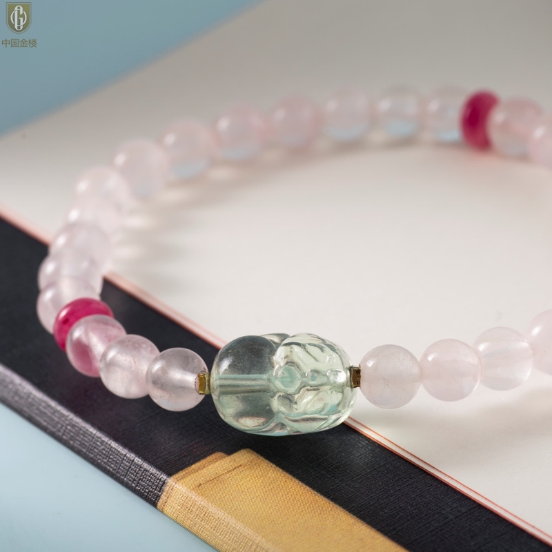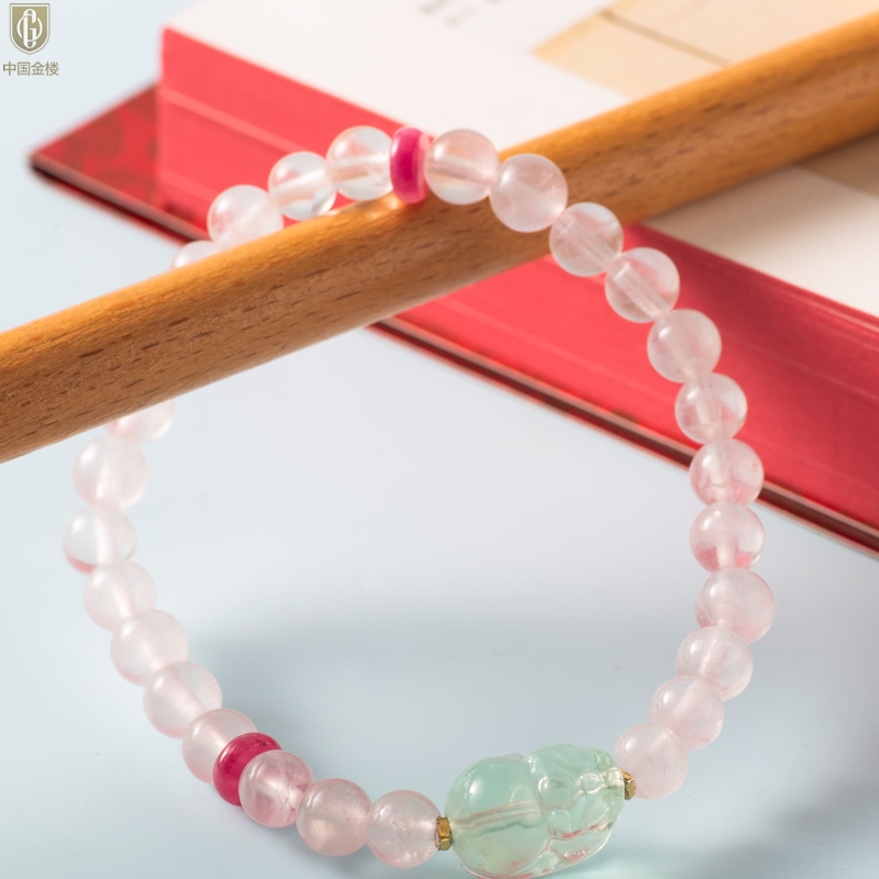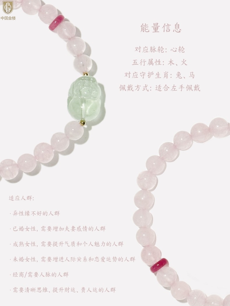 【品名】中国金楼原创「芙灵」喜木火丨原创设计粉水晶绿萤石貔貅手串