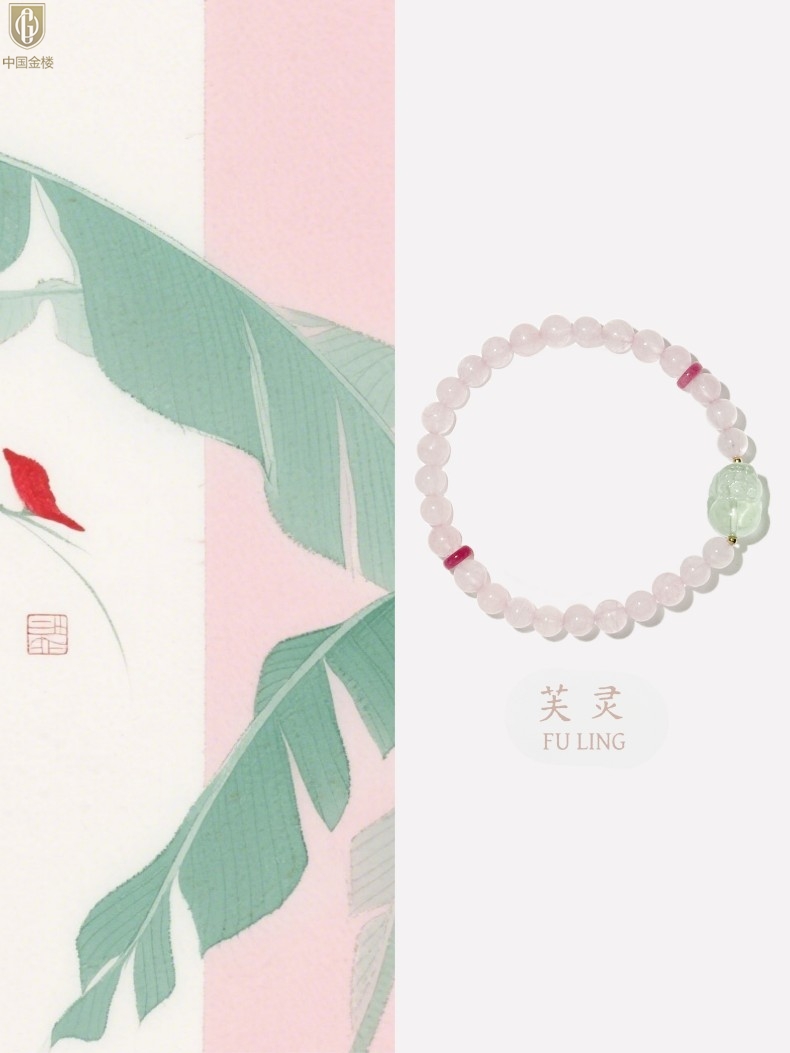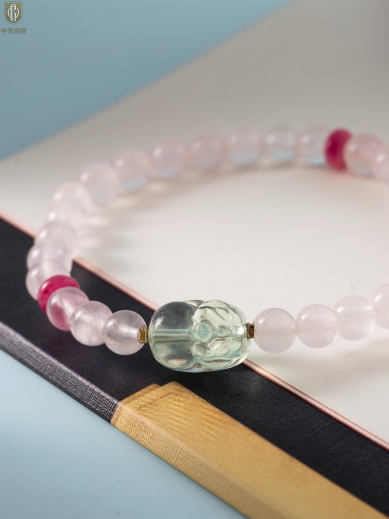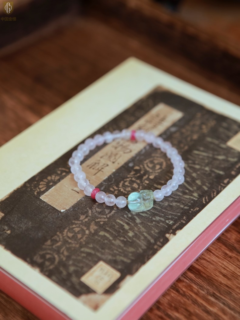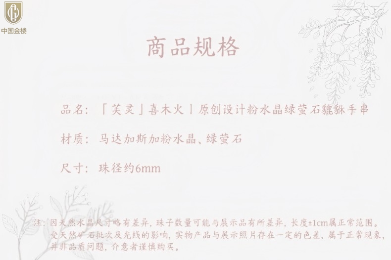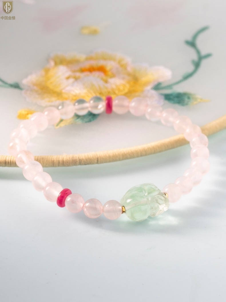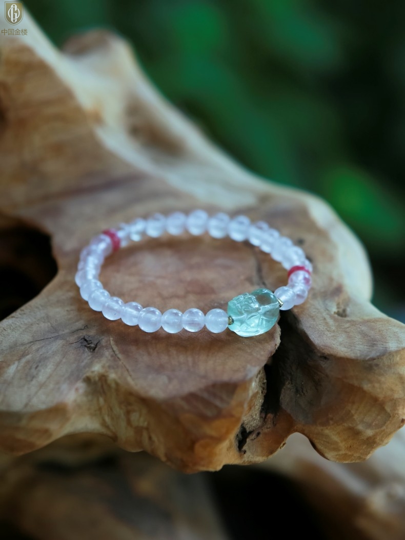 【品名】中国金楼原创「芙灵」喜木火丨原创设计粉水晶绿萤石貔貅手串