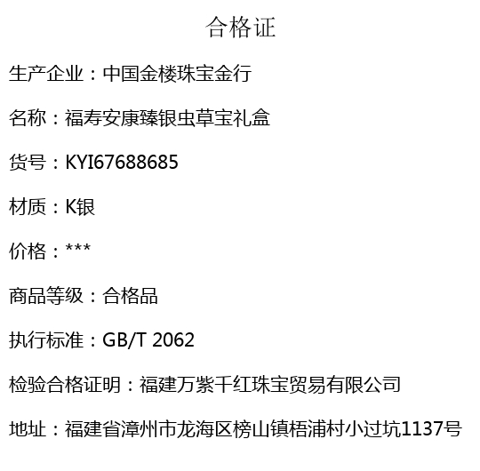 6、售后寄回物品,必须保证:首饰+礼品盒+礼品袋(如有)+国检证书+质保单+保养卡均寄回,丢失部分我们将按照售价扣除。