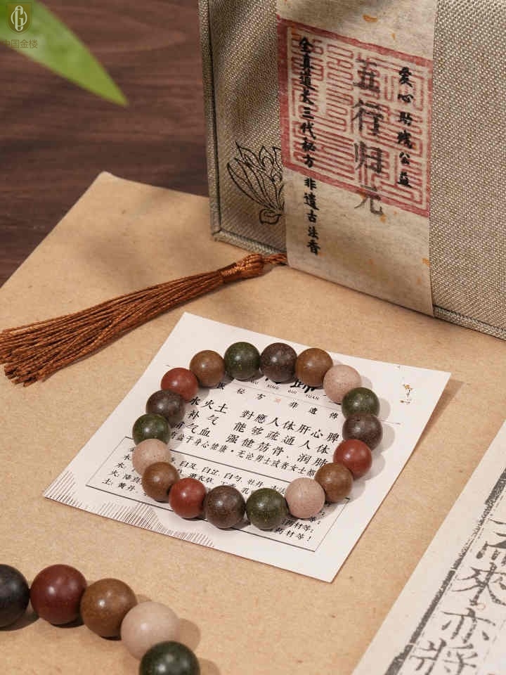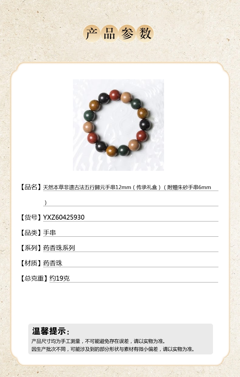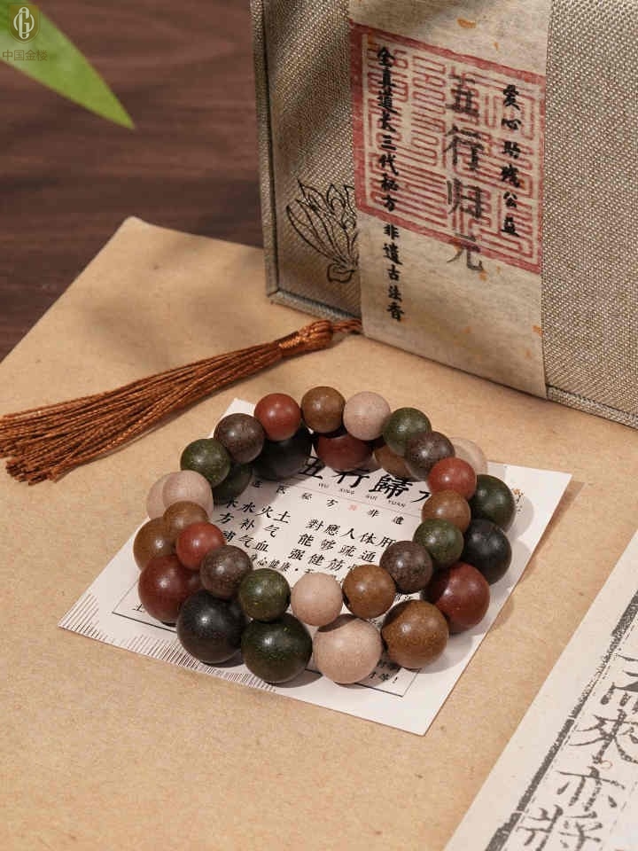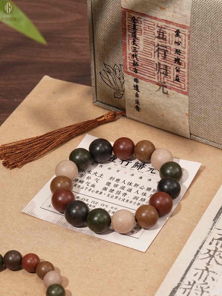 【品名】中国金楼天然本草非遗古法五行歸元手串12mm(传承礼盒)(附赠朱砂手串6mm)