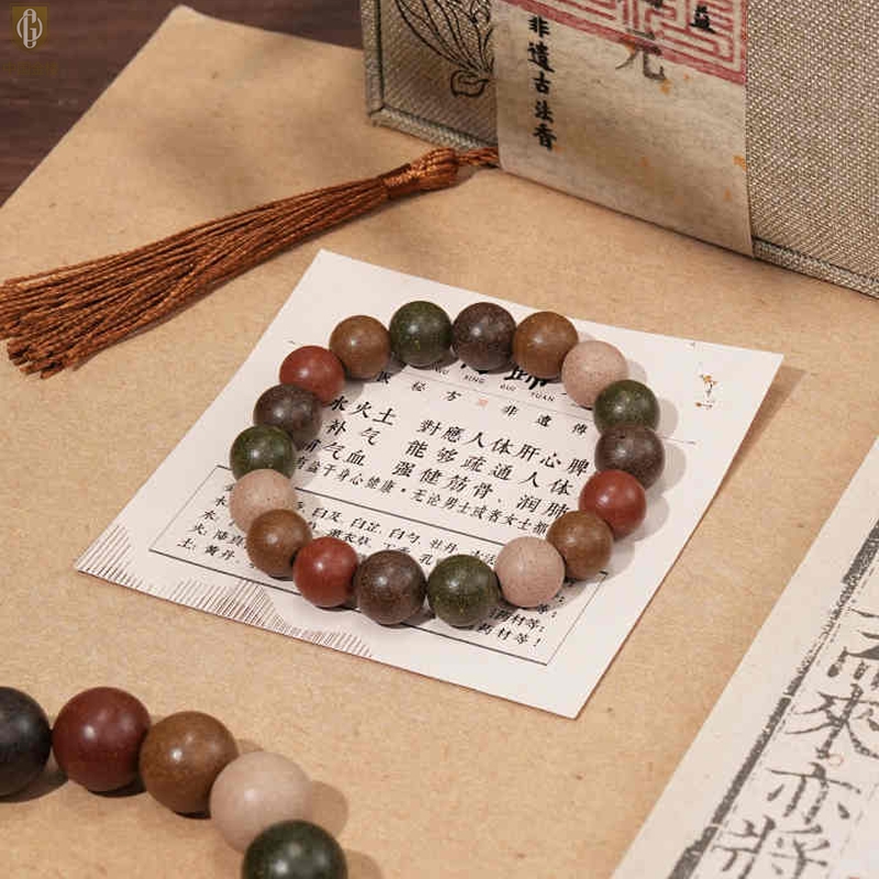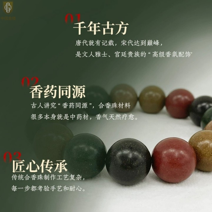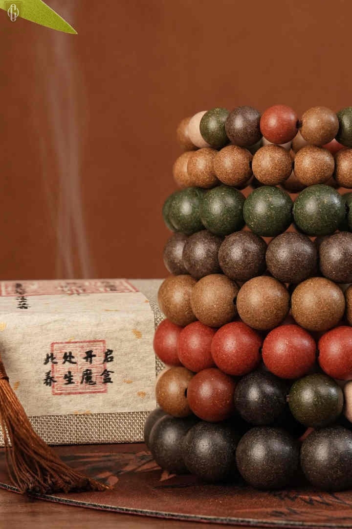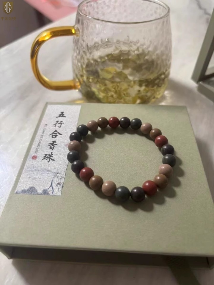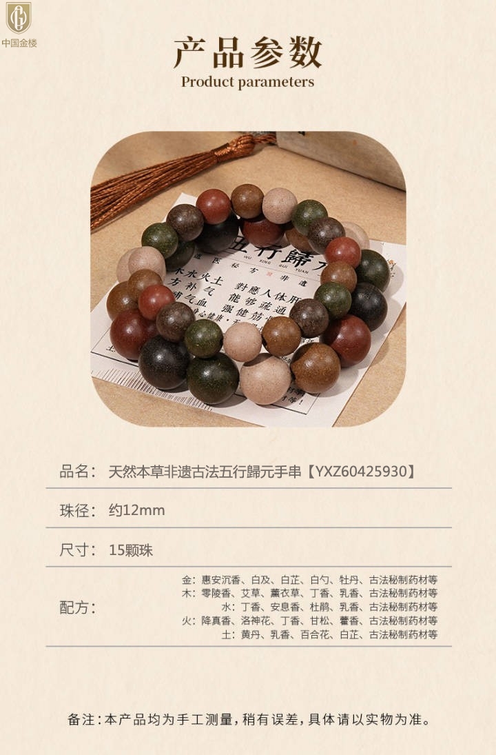 【品名】中国金楼天然本草非遗古法五行歸元手串12mm(传承礼盒)(附赠朱砂手串6mm)