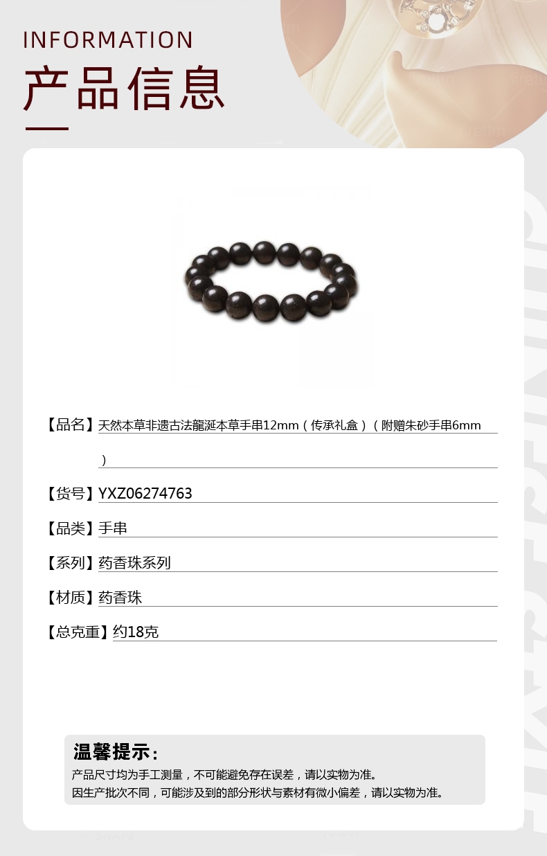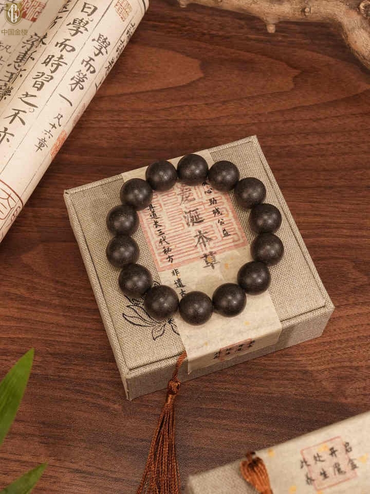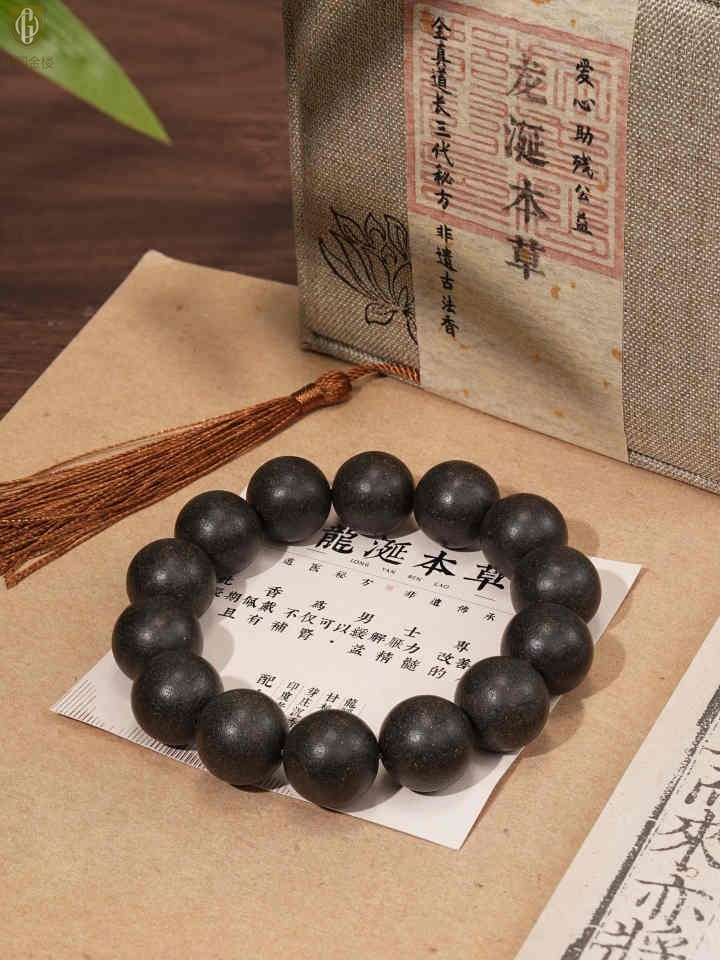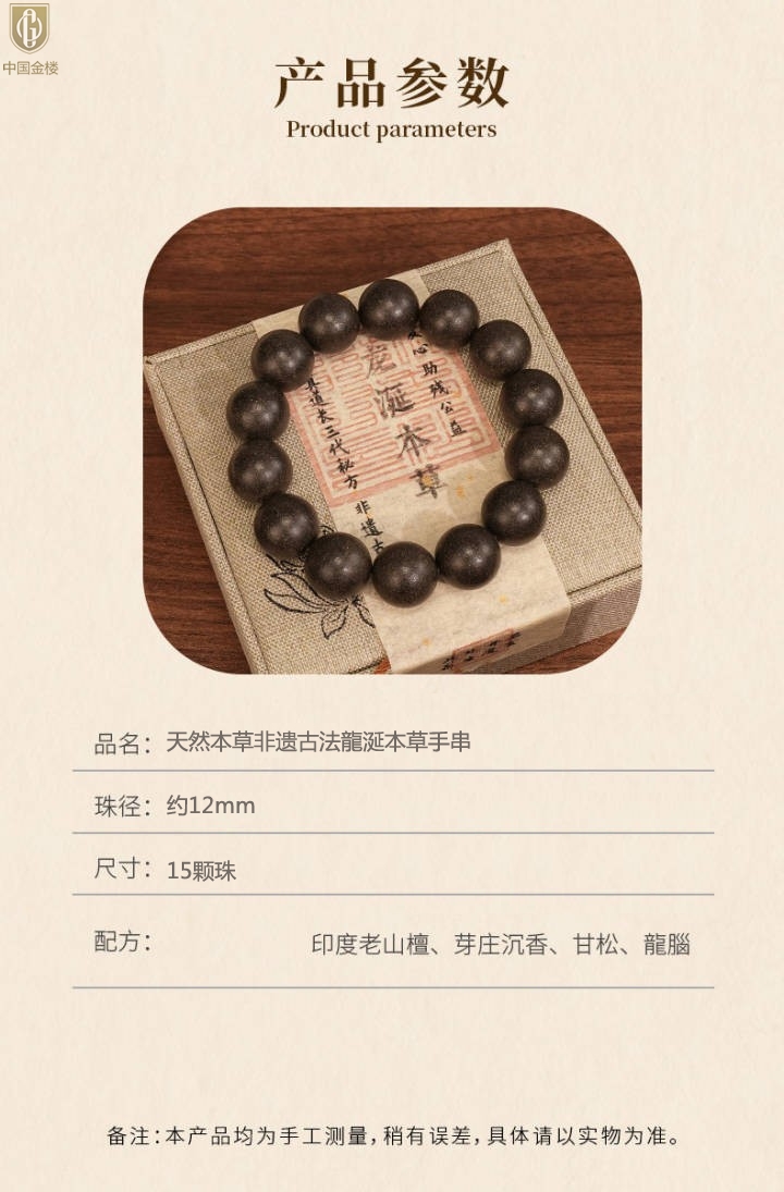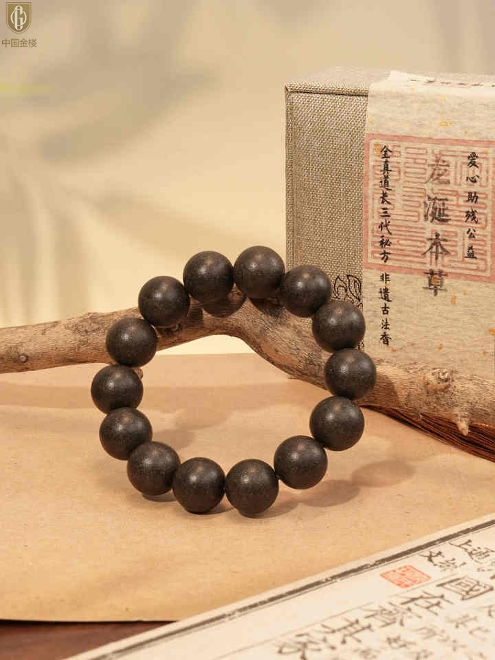 【品名】中国金楼天然本草非遗古法龍涎本草手串12mm(传承礼盒)(附赠朱砂手串6mm)