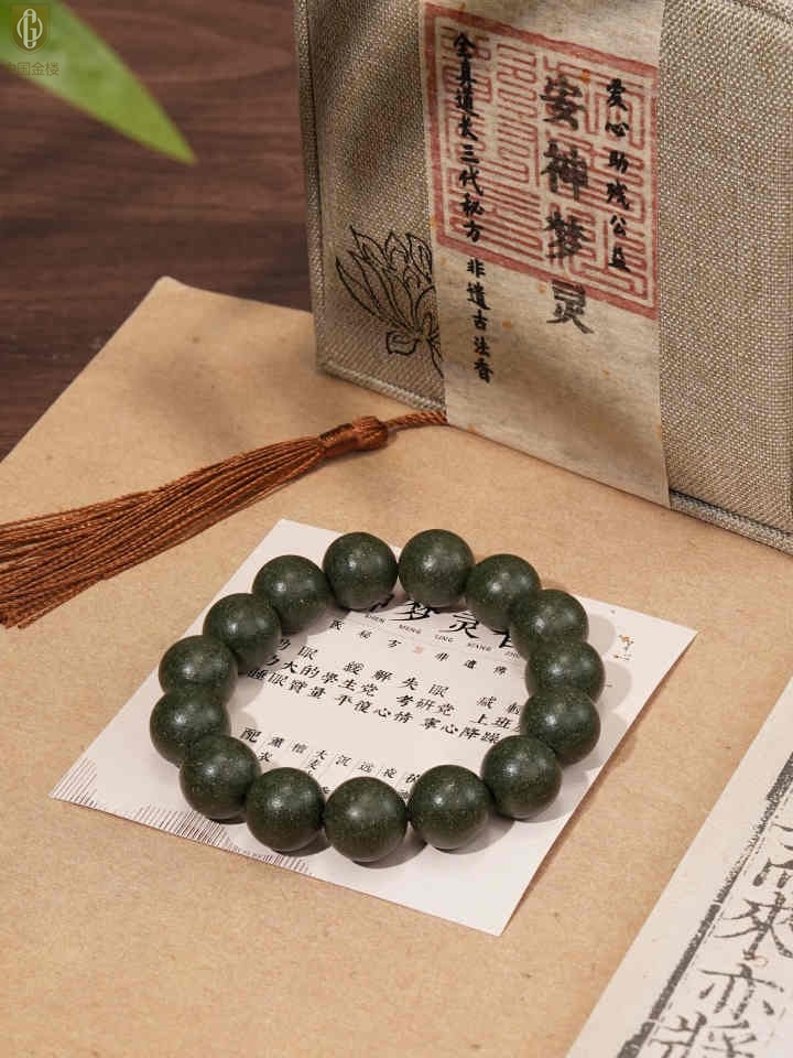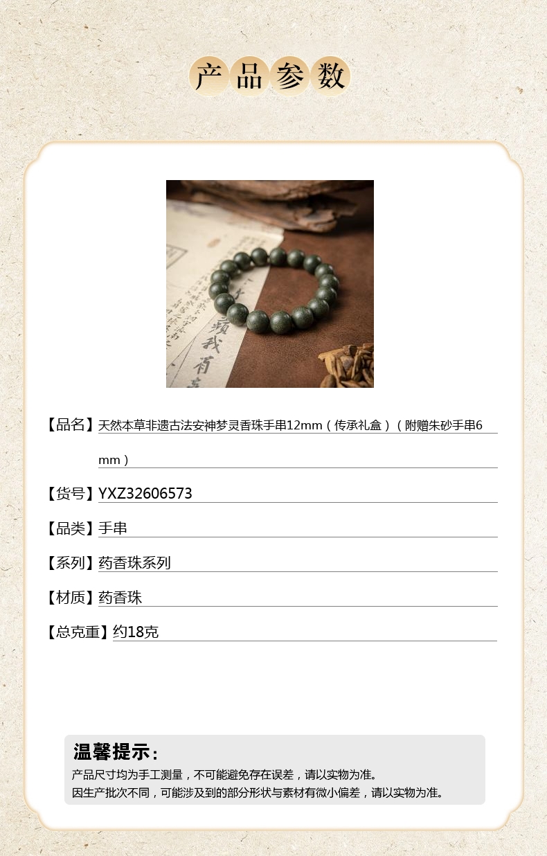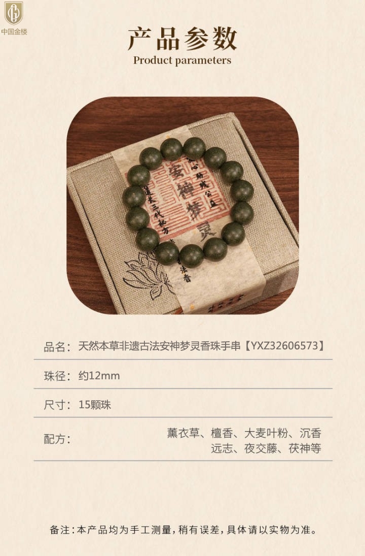 【品名】中国金楼天然本草非遗古法安神梦灵香珠手串12mm(传承礼盒)(附赠朱砂手串6mm)