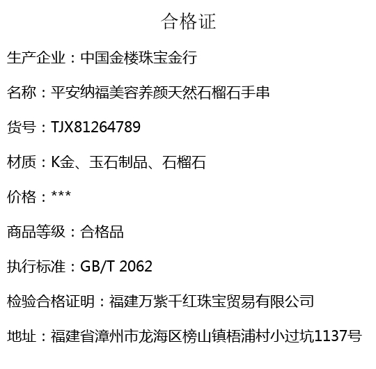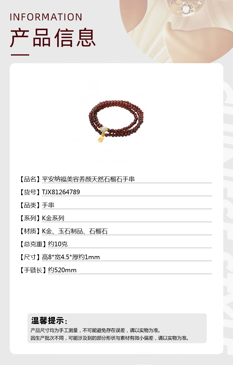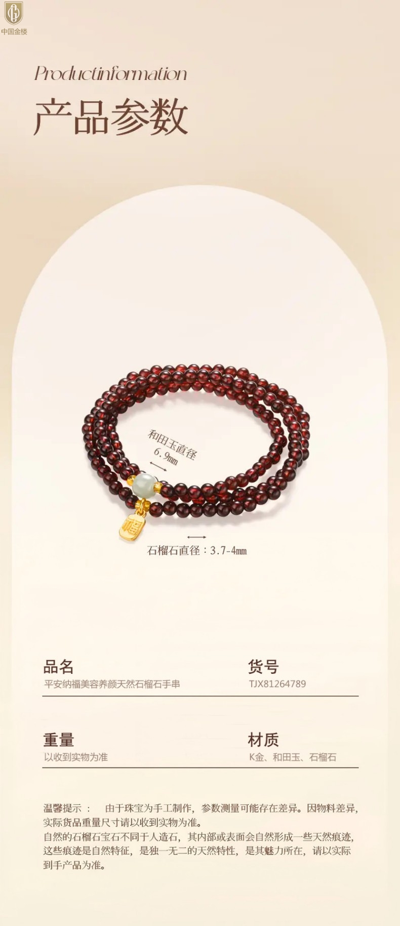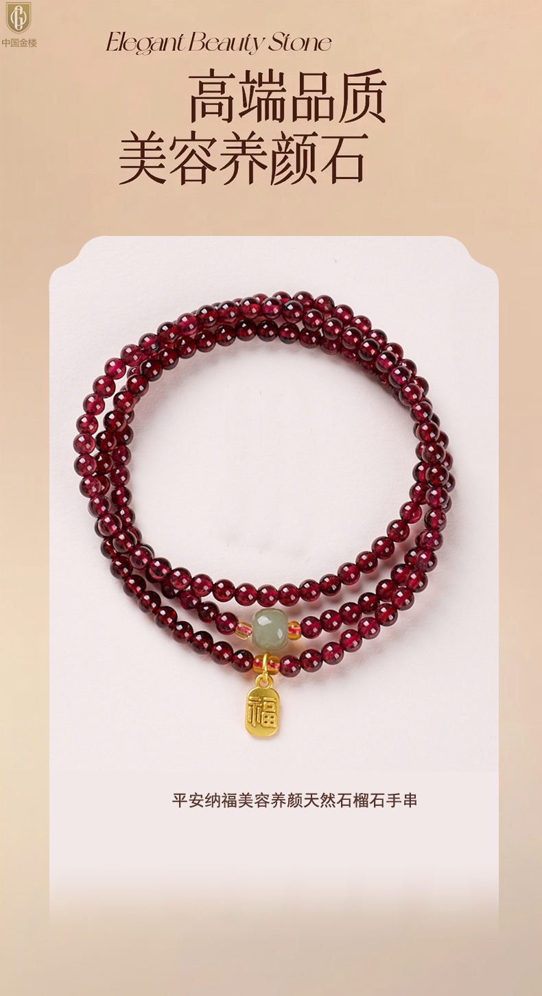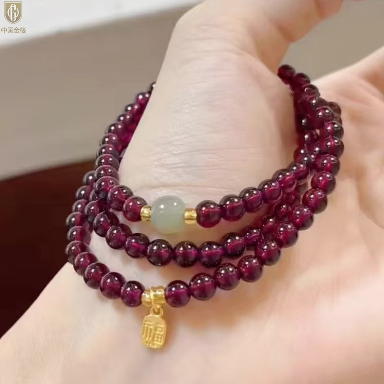 【品名】中国金楼平安纳福美容养颜天然石榴石手串