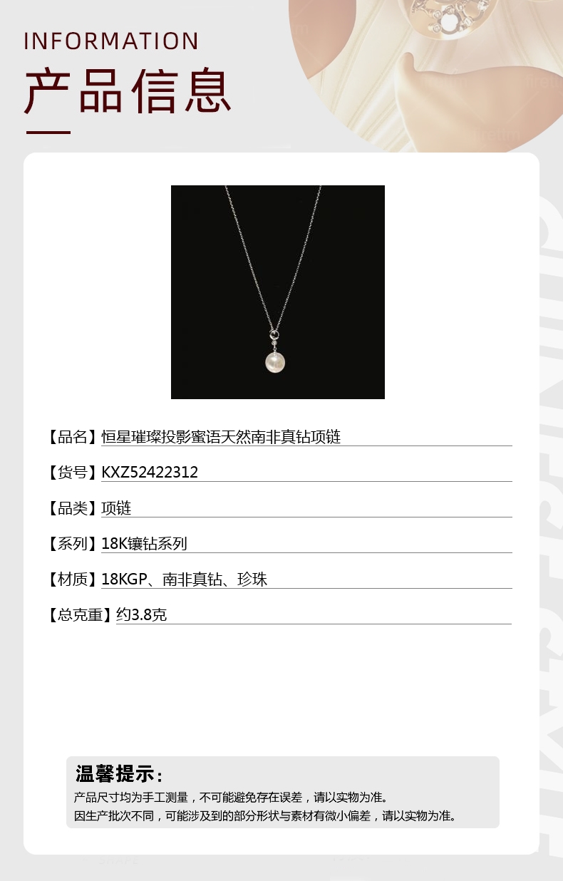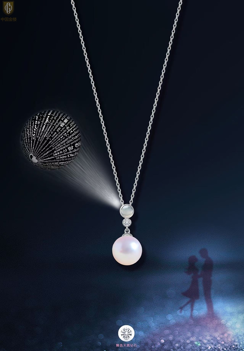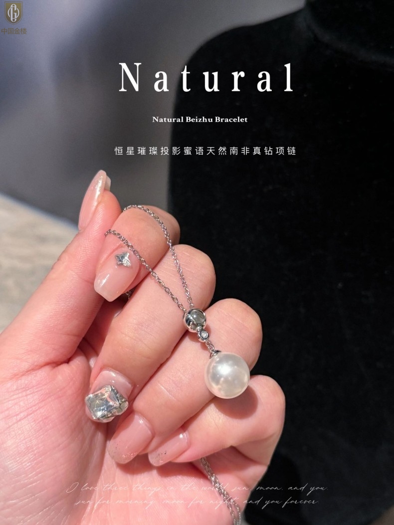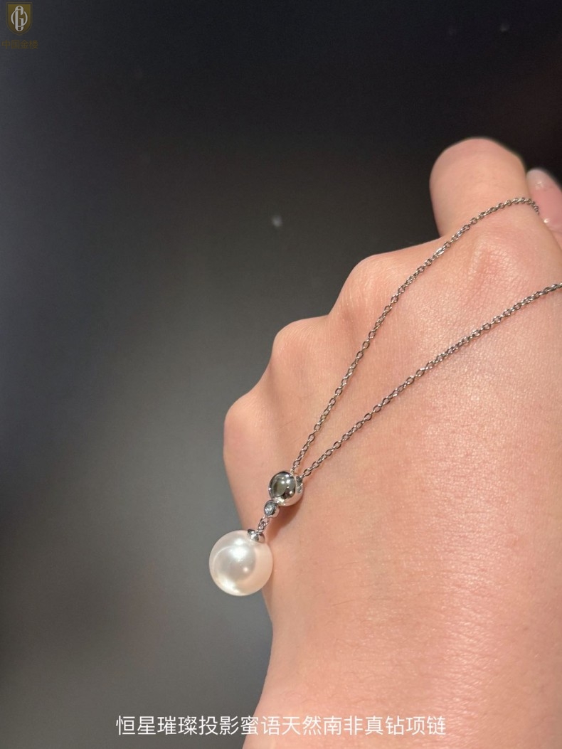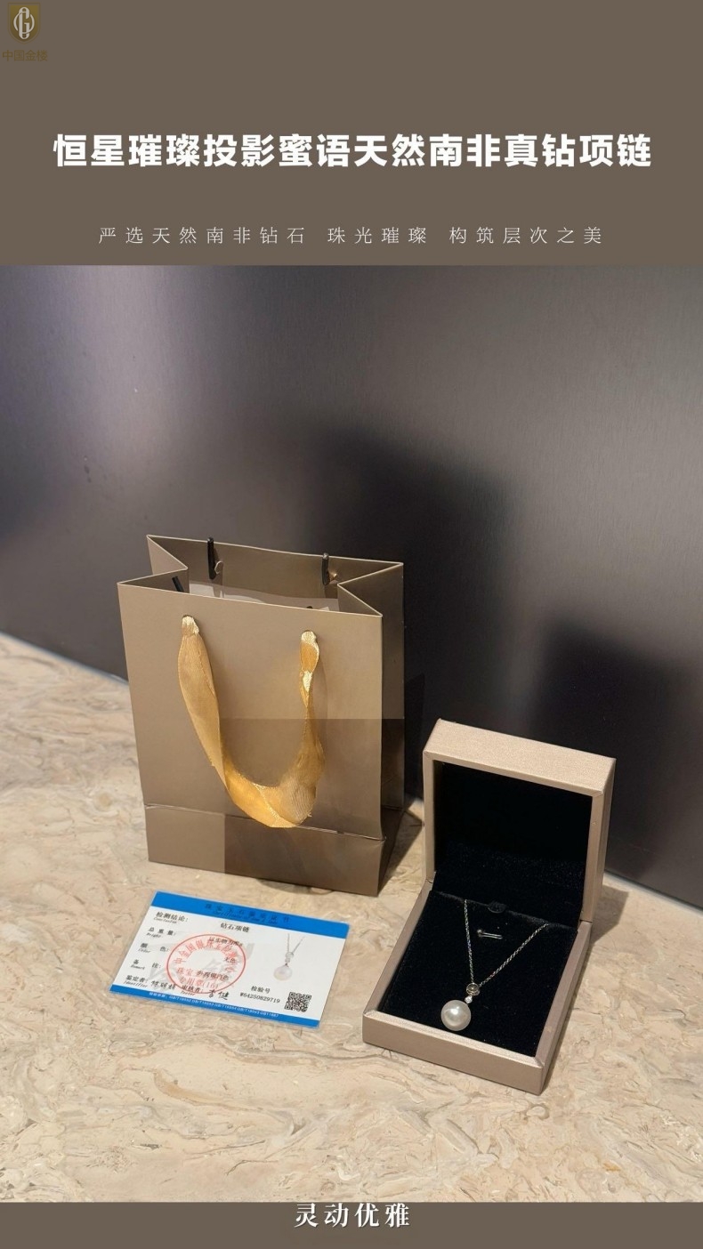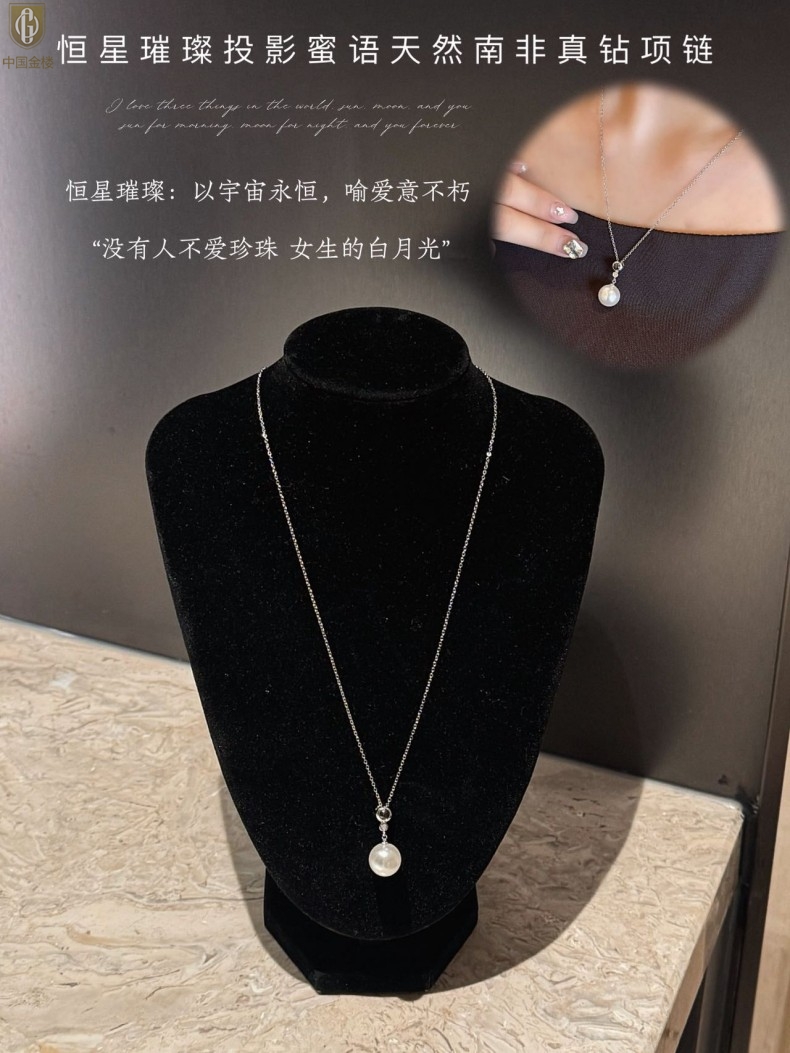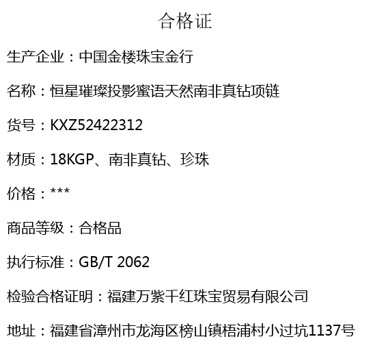 【品名】中国金楼恒星璀璨投影蜜语天然南非真钻项链
