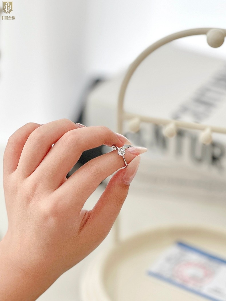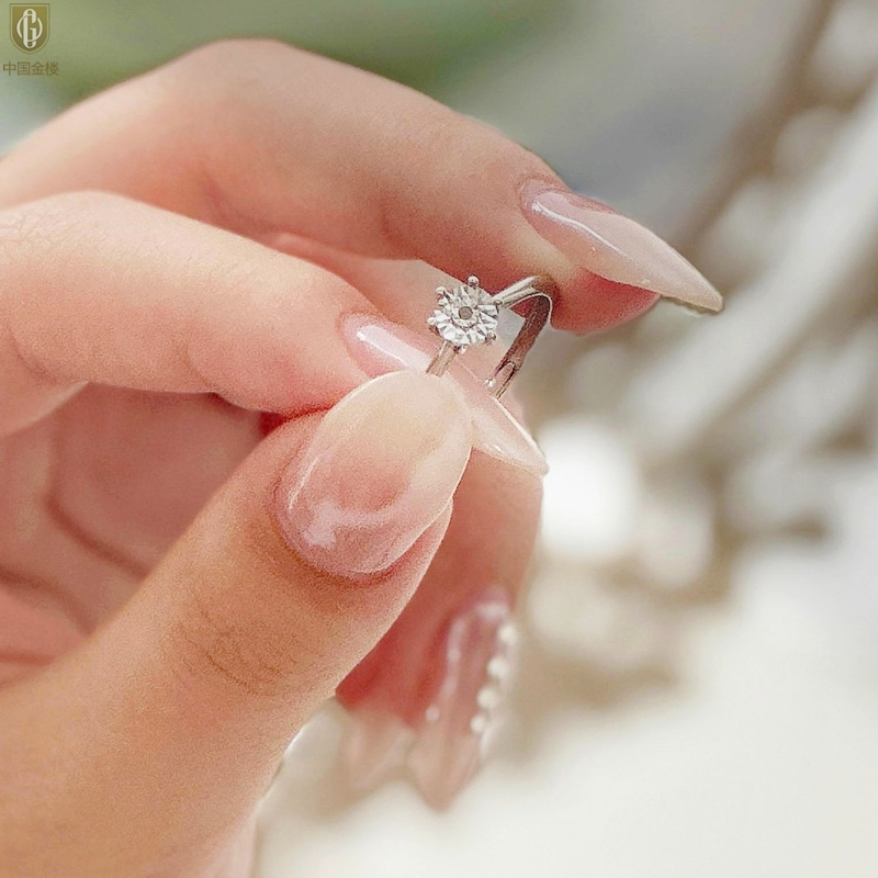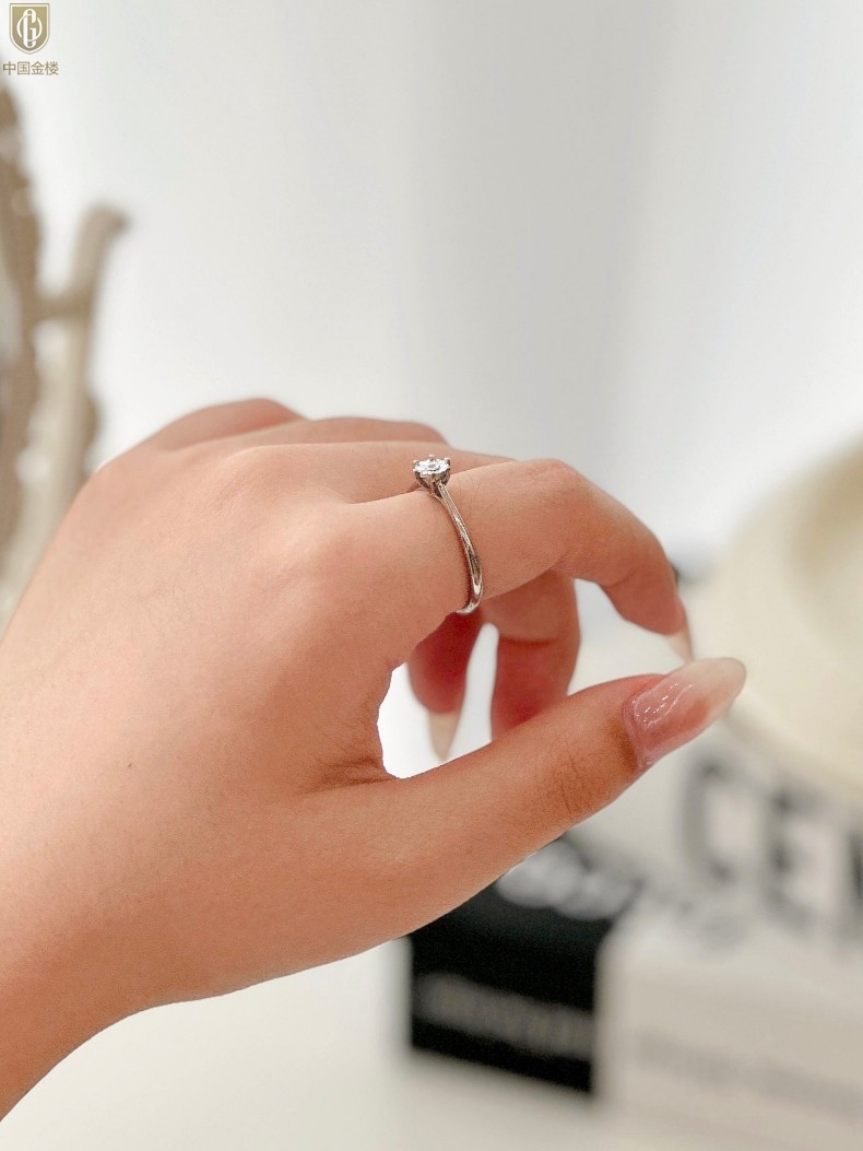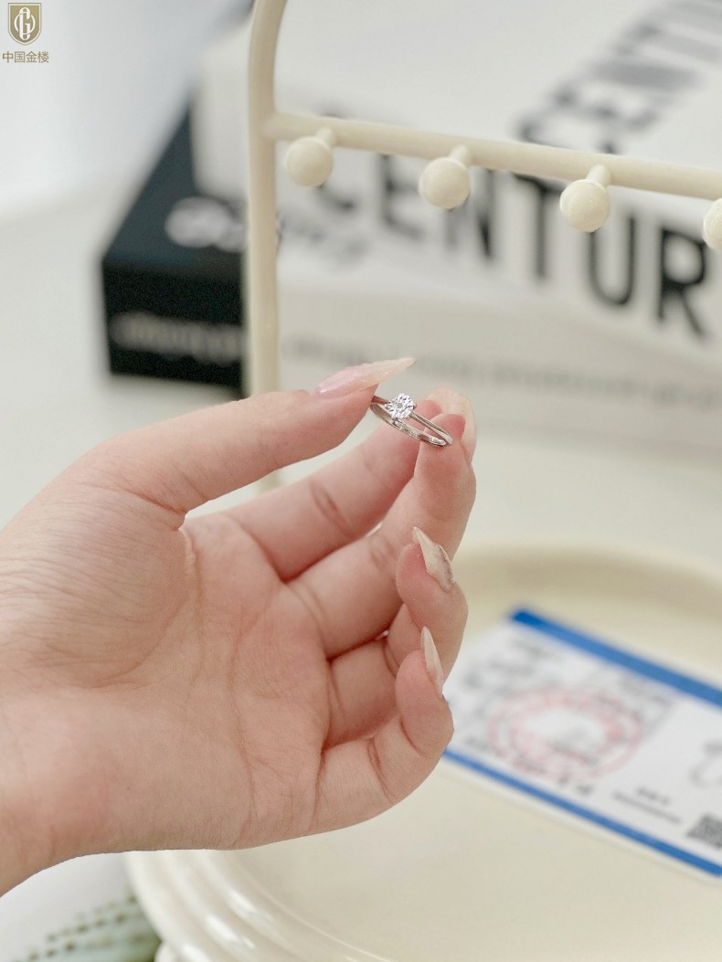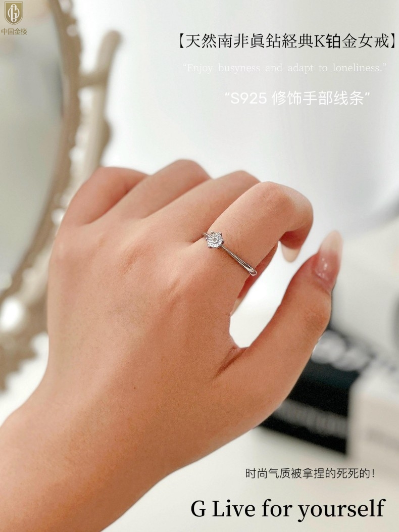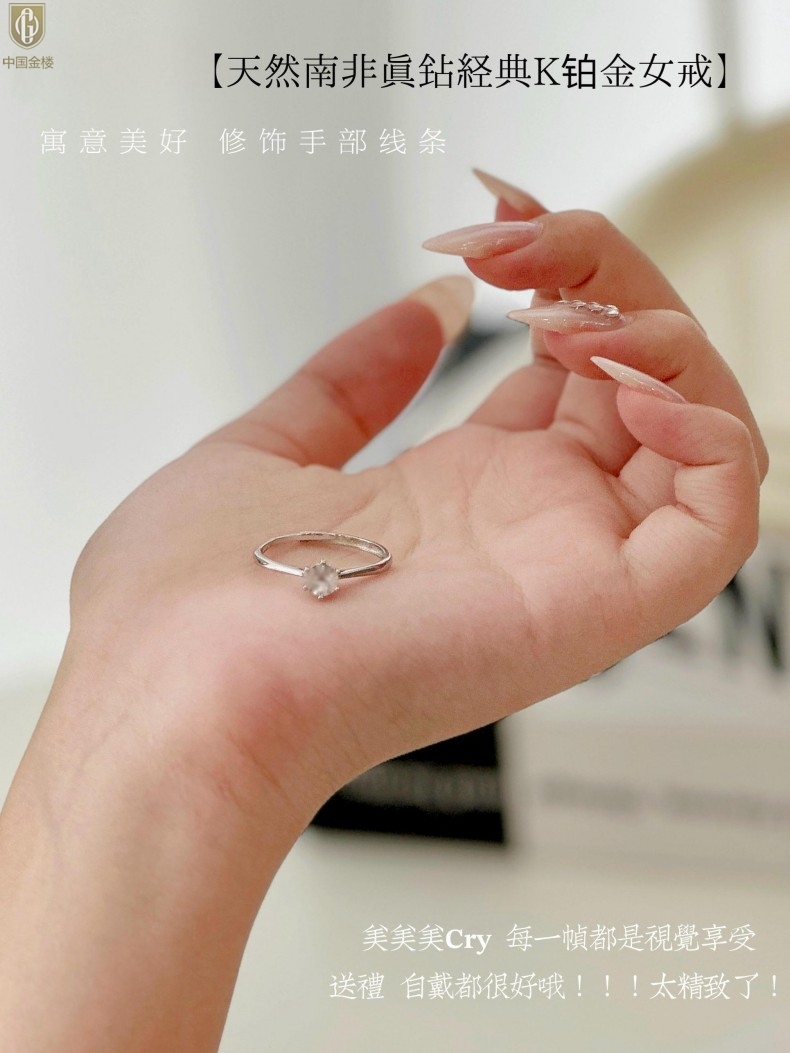 【品名】中国金楼天然南非真钻经典K铂金女戒(开口可调节)
