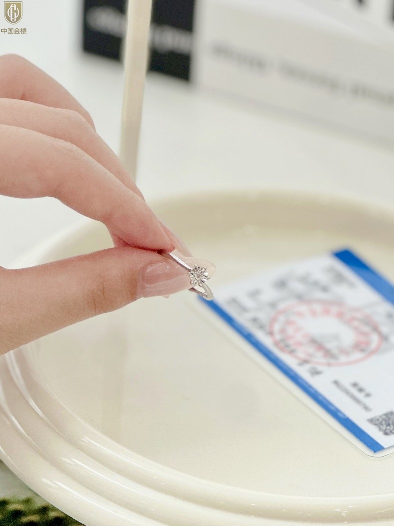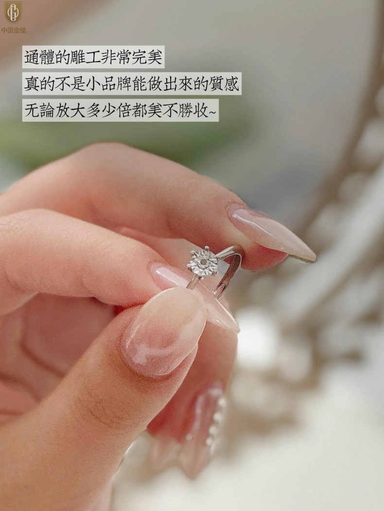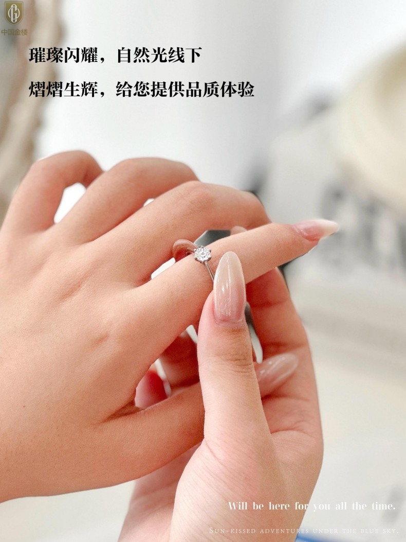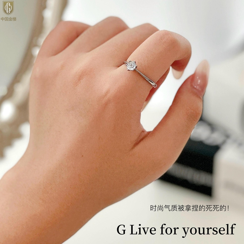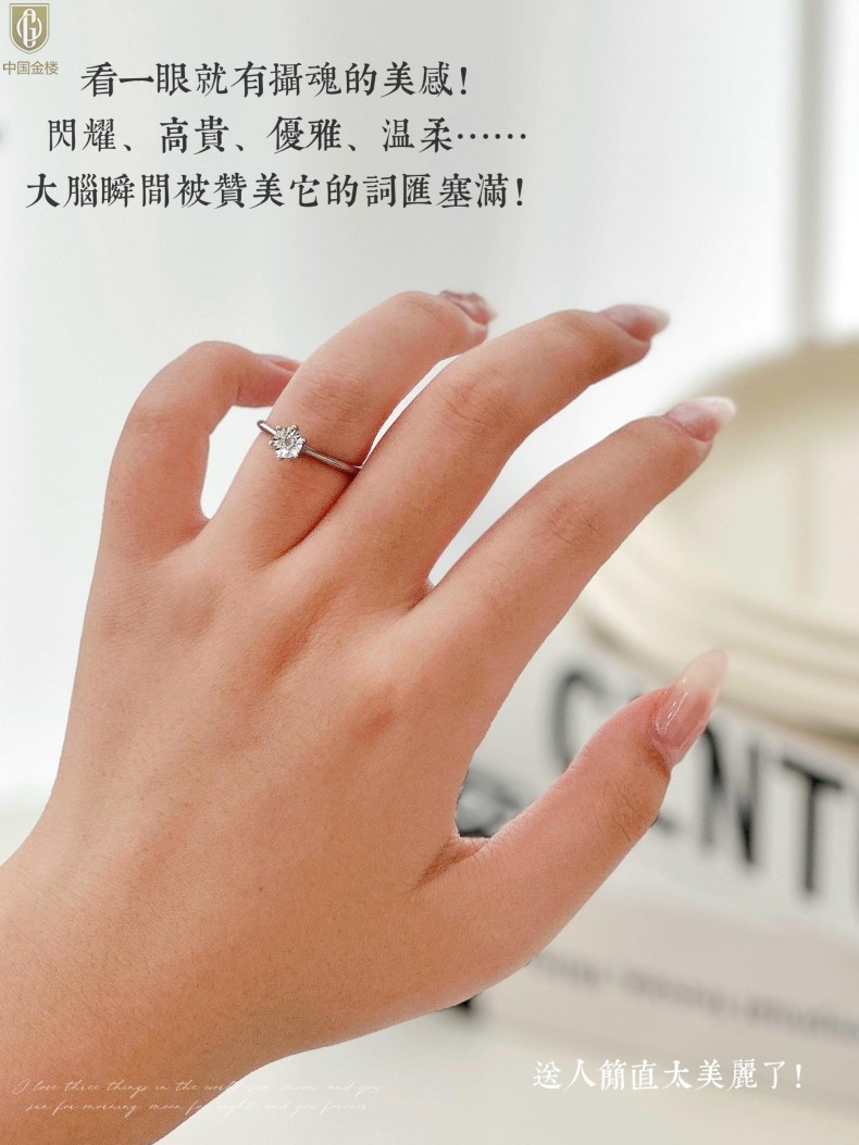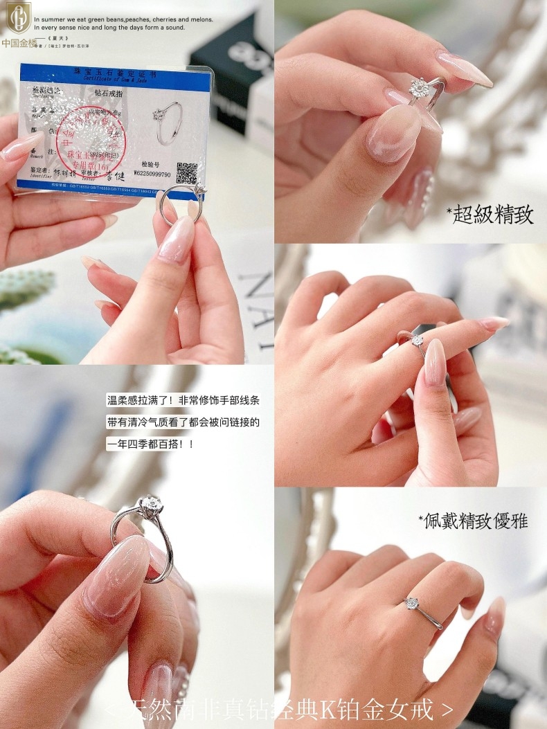 【品名】中国金楼天然南非真钻经典K铂金女戒(开口可调节)