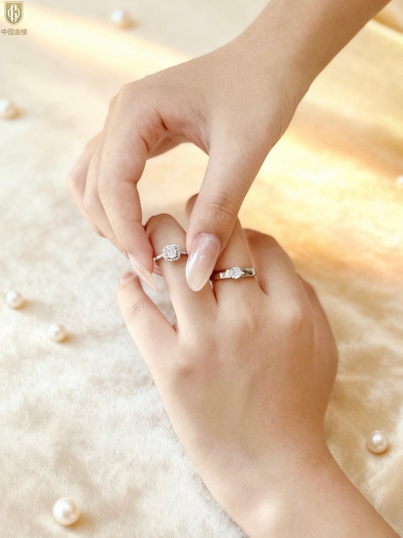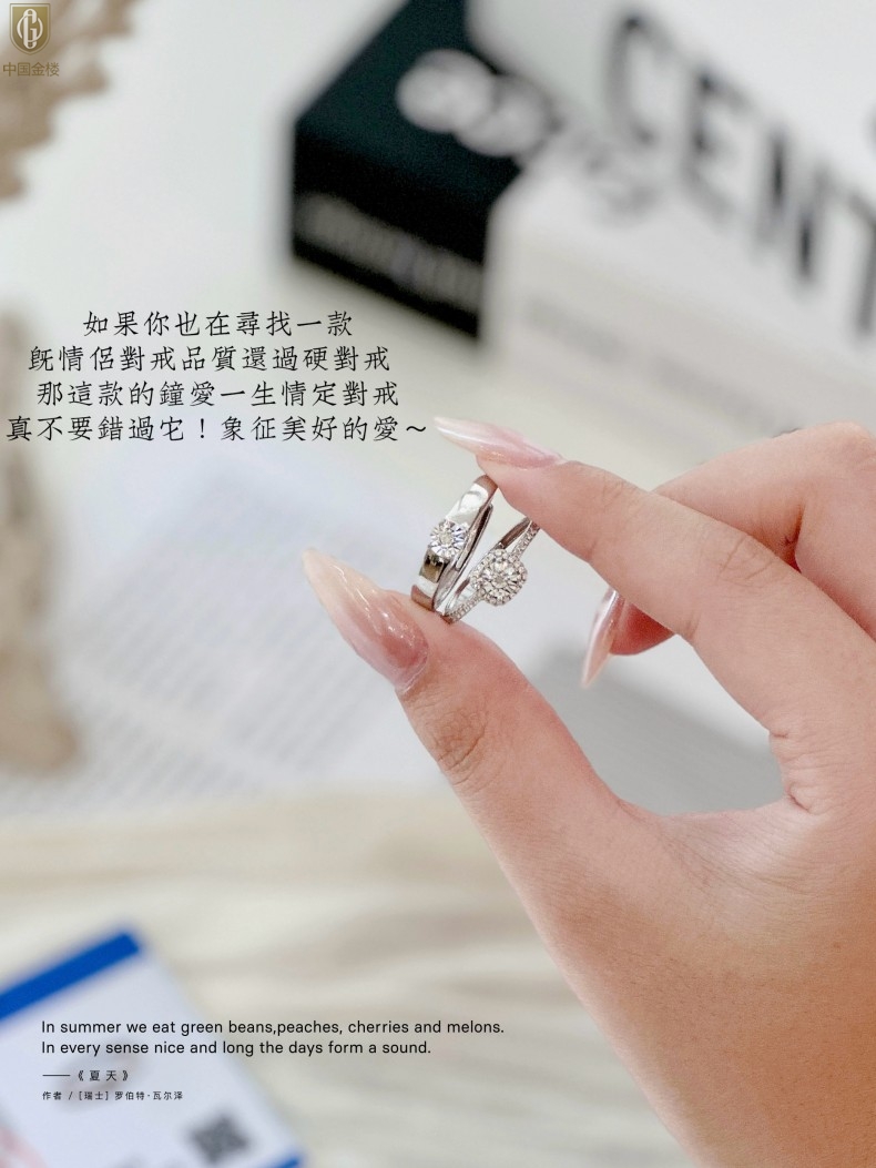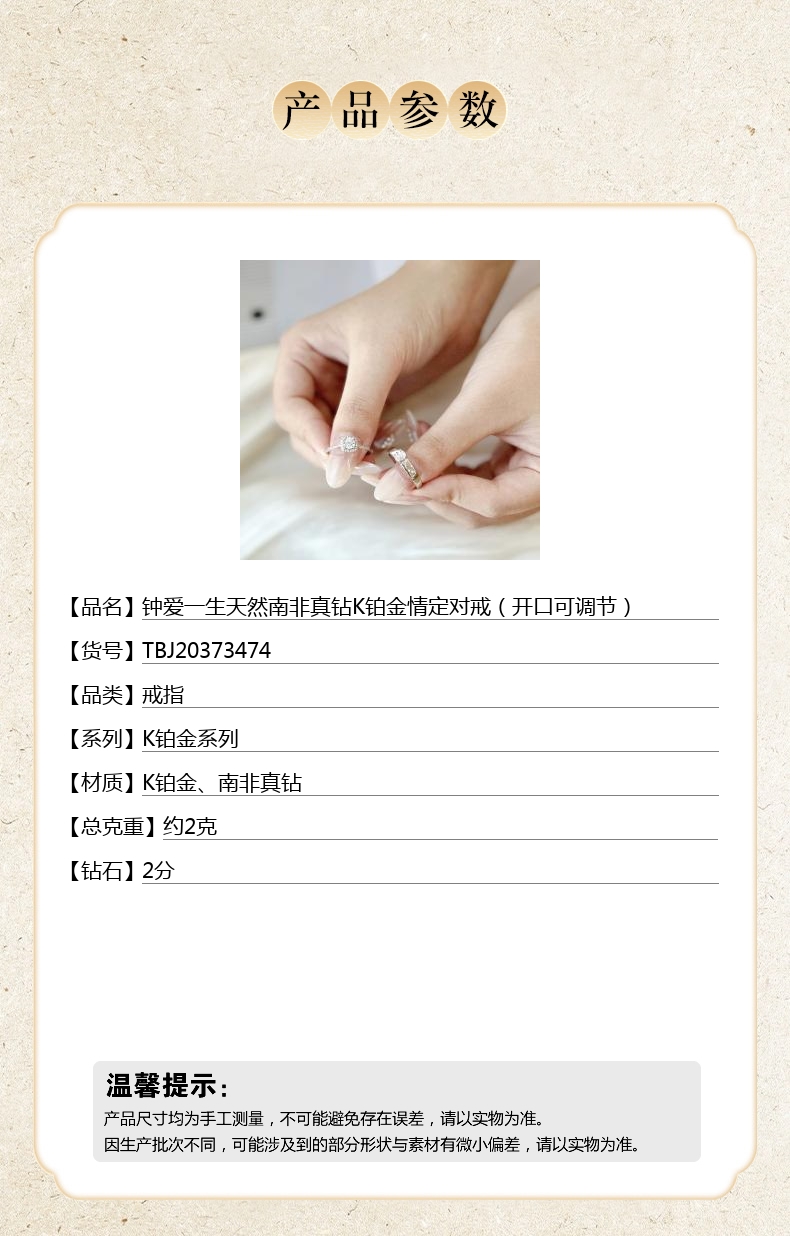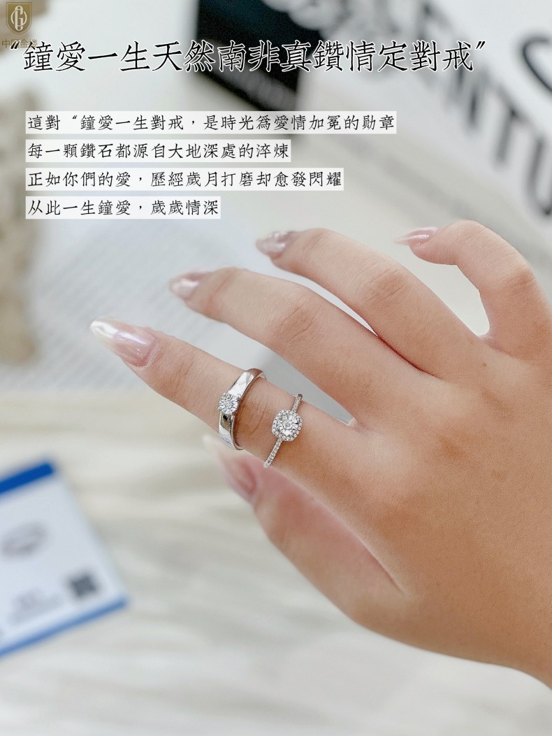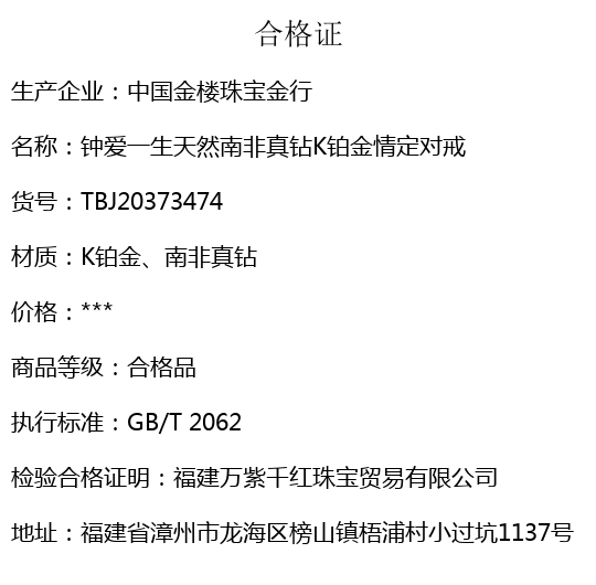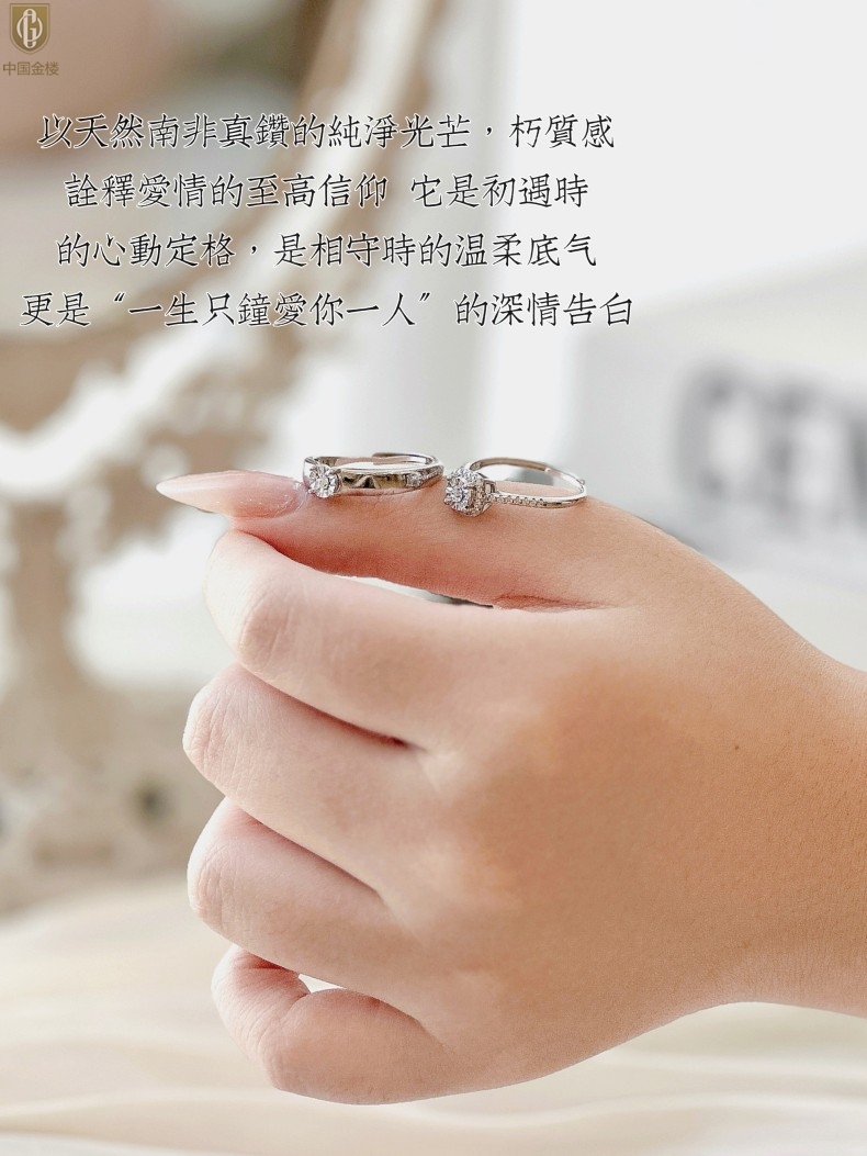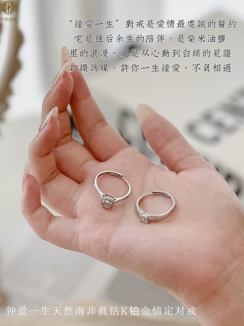 【品名】中国金楼钟爱一生天然南非真钻K铂金情定对戒(开口可调节)