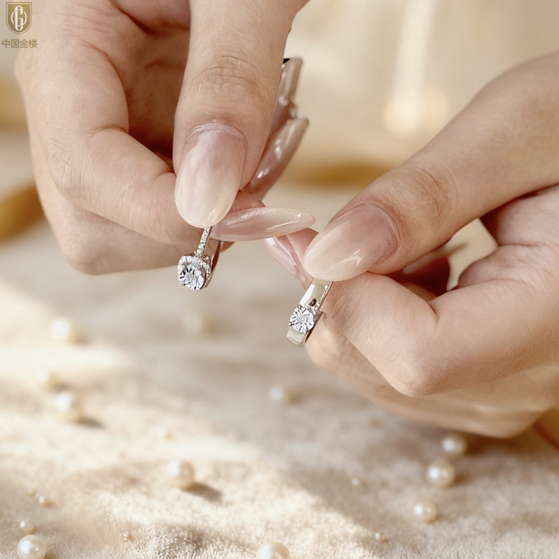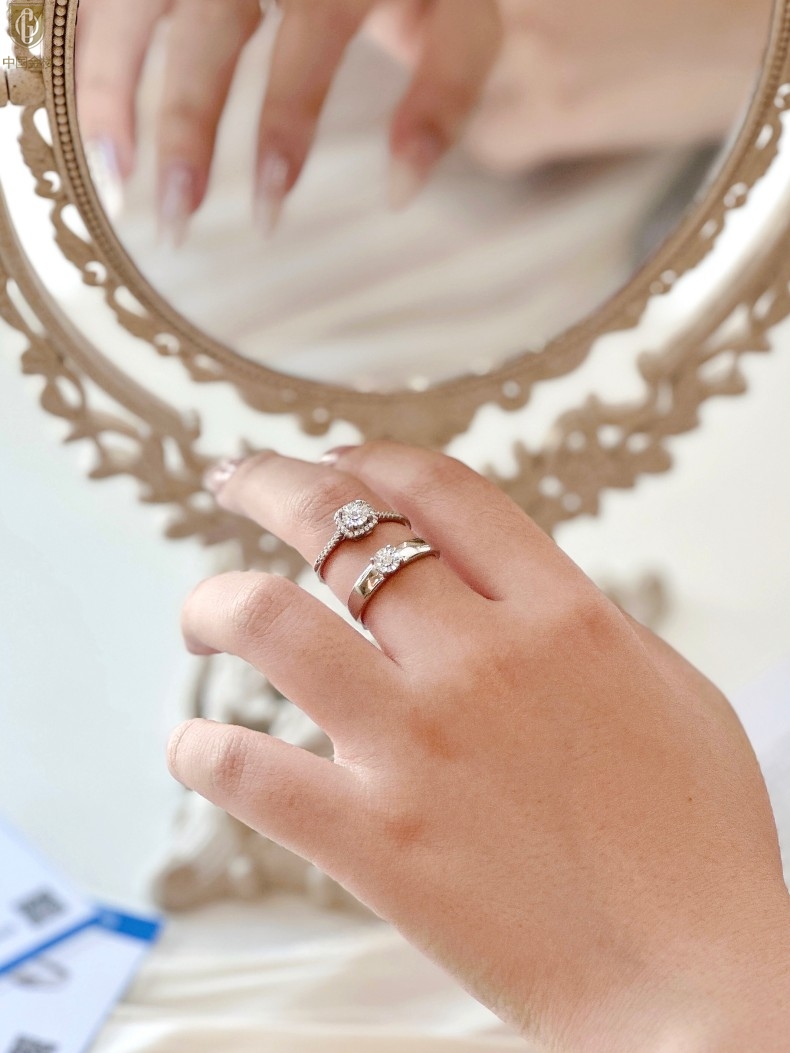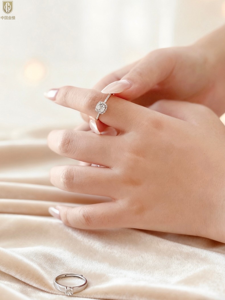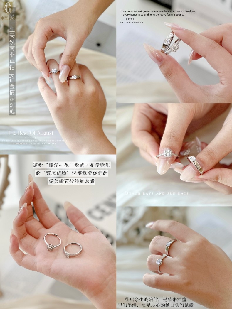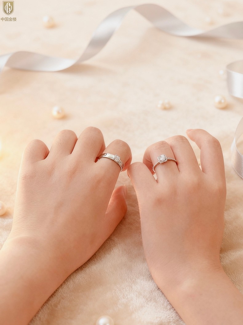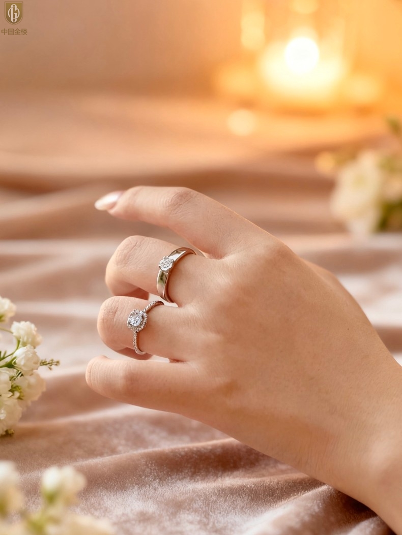【品名】中国金楼钟爱一生天然南非真钻K铂金情定对戒(开口可调节)