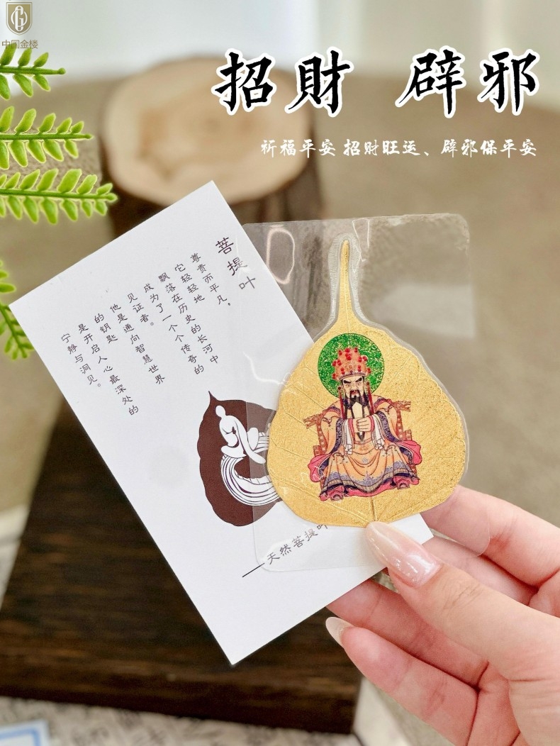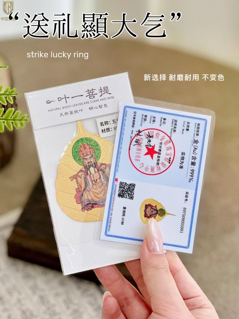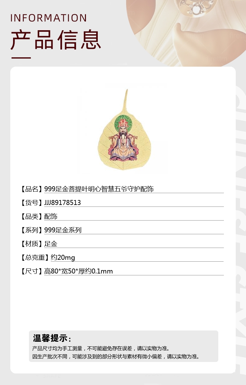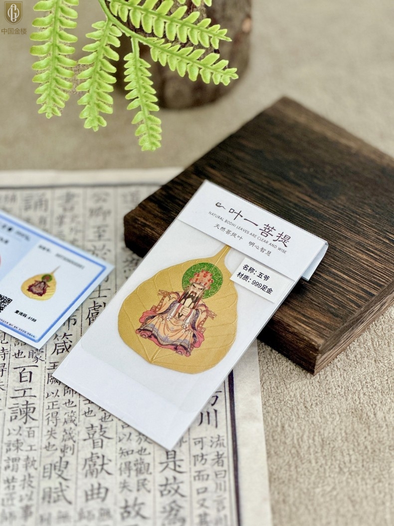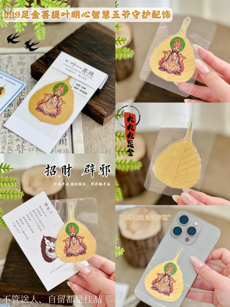 【品名】中国金楼999足金菩提叶明心智慧五爷守护配饰