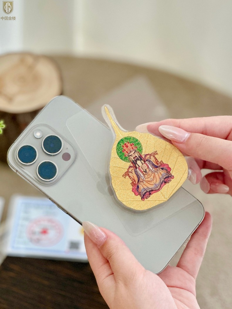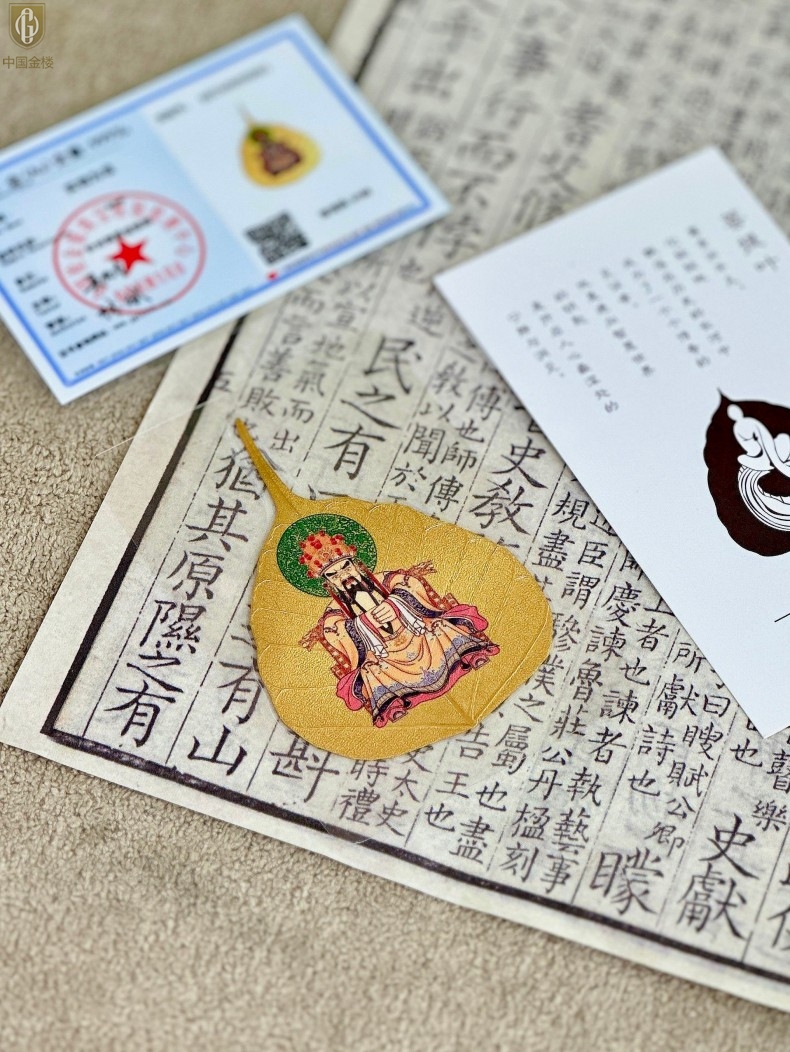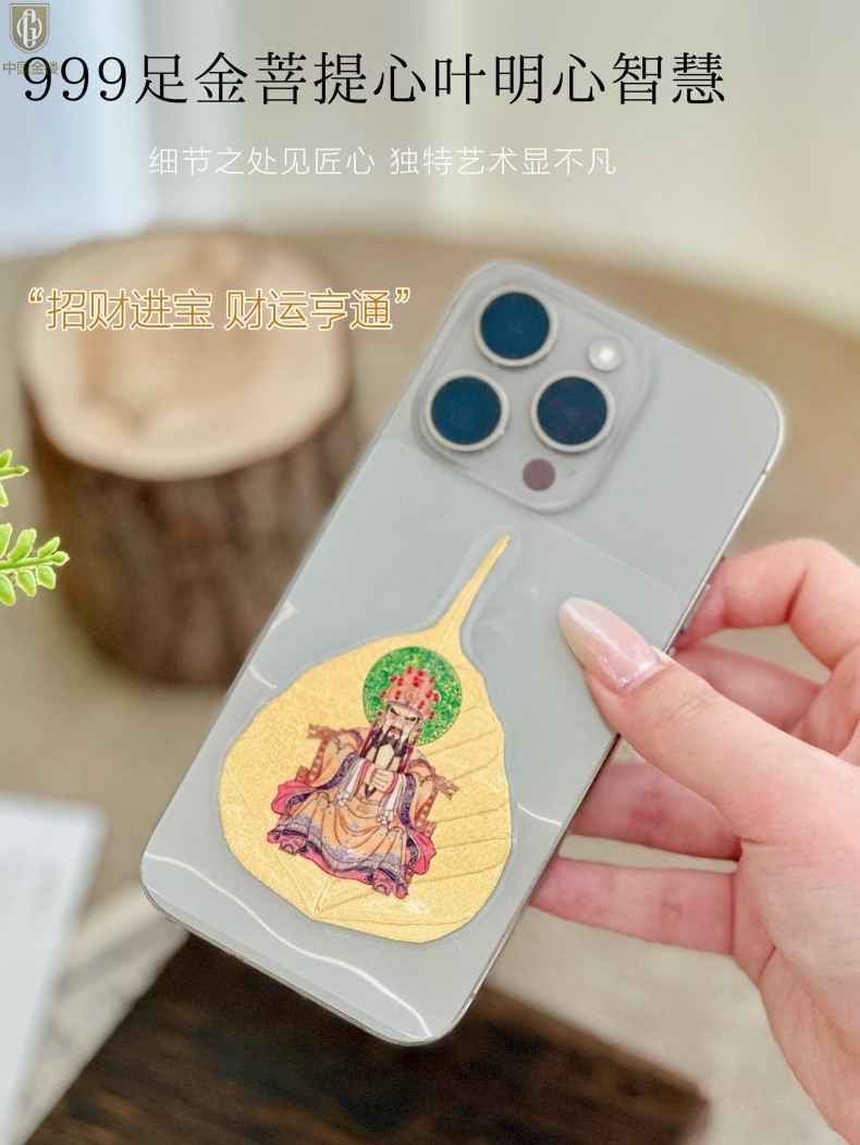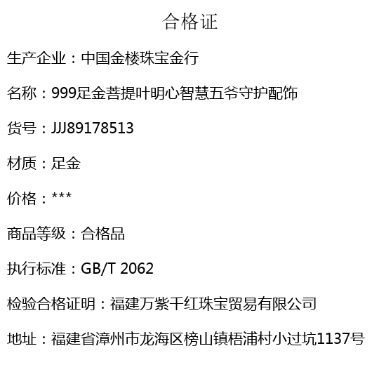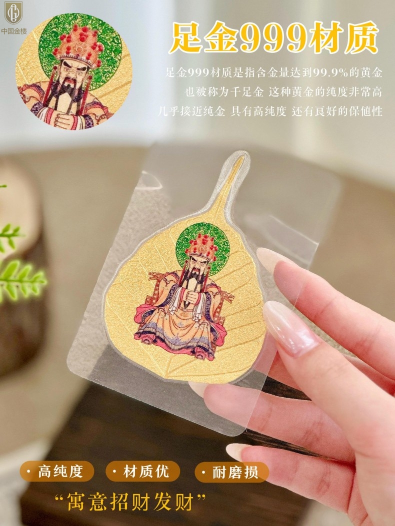 【品名】中国金楼999足金菩提叶明心智慧五爷守护配饰