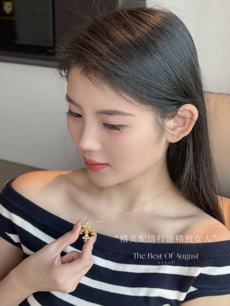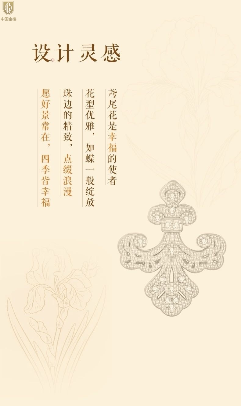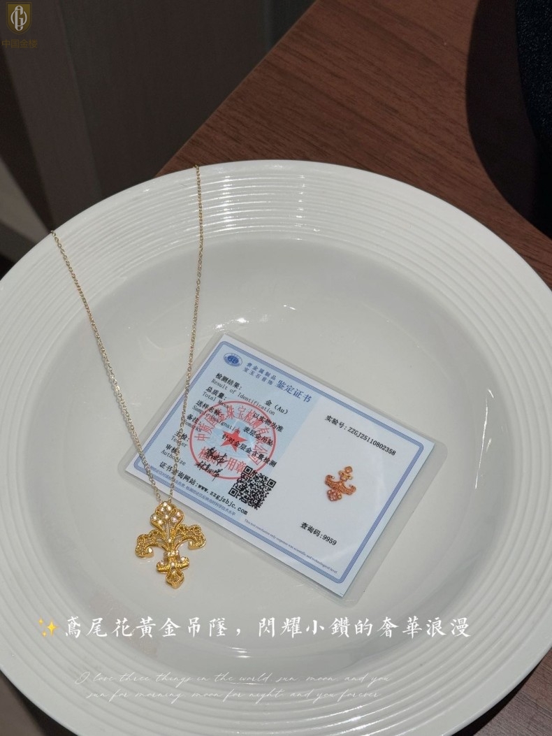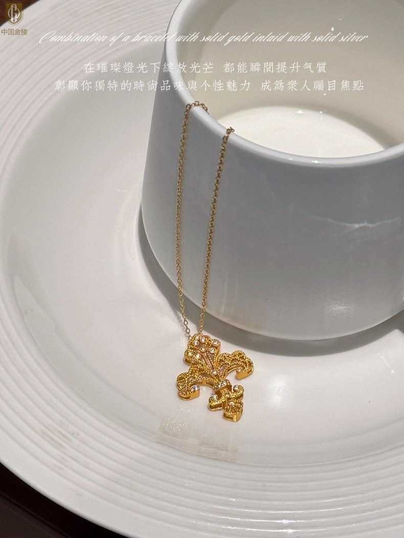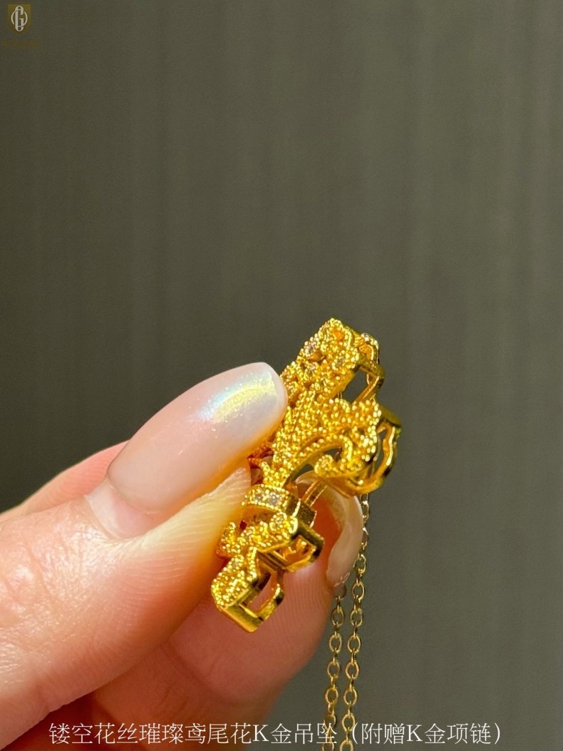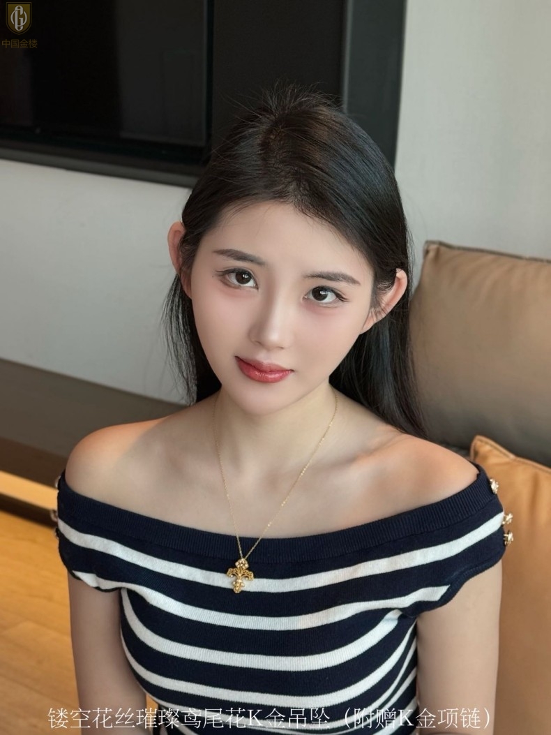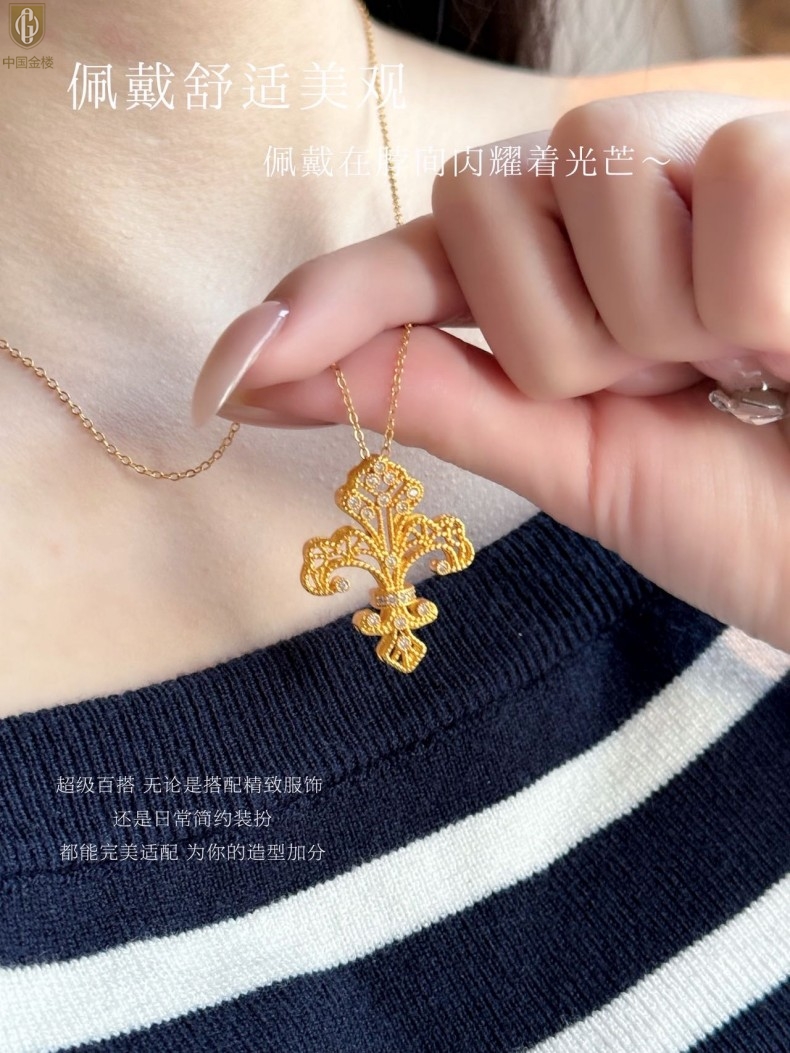 【品名】中国金楼镂空花丝璀璨鸢尾花K金吊坠(附赠K金项链)