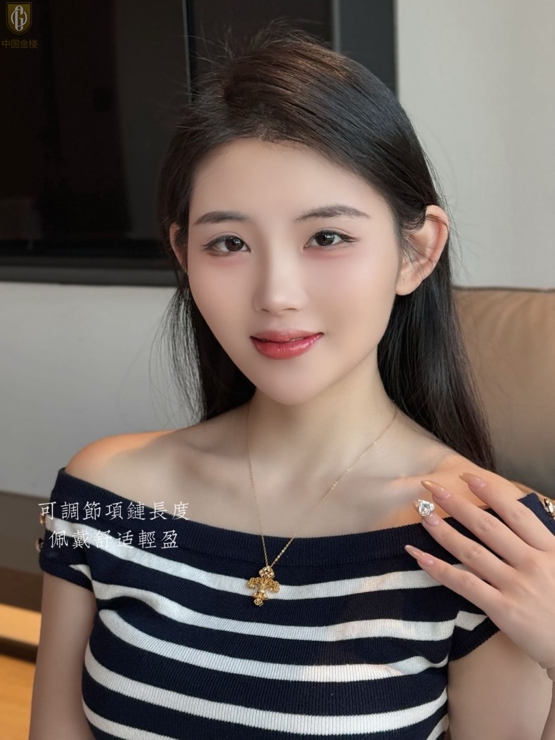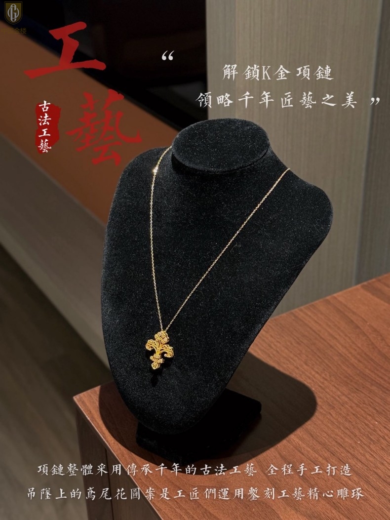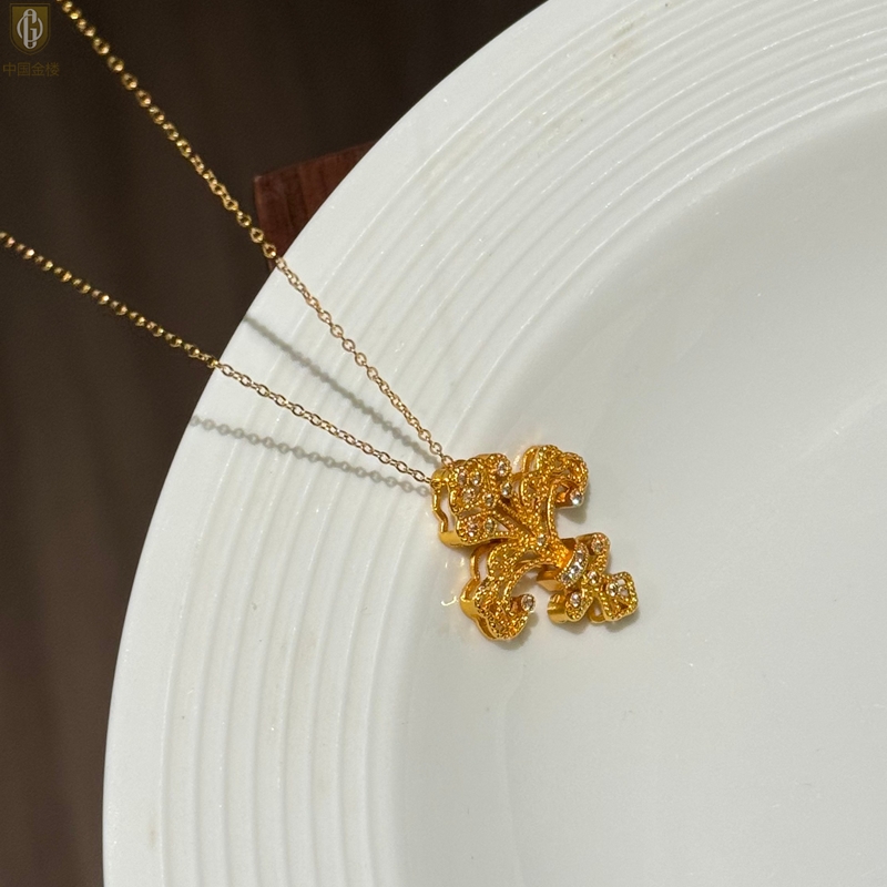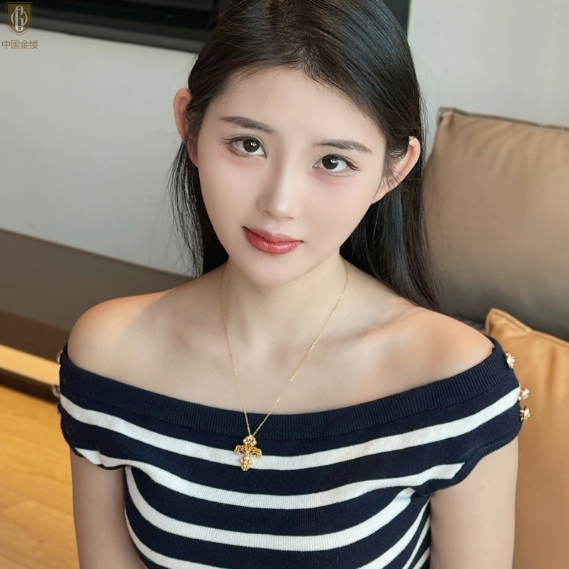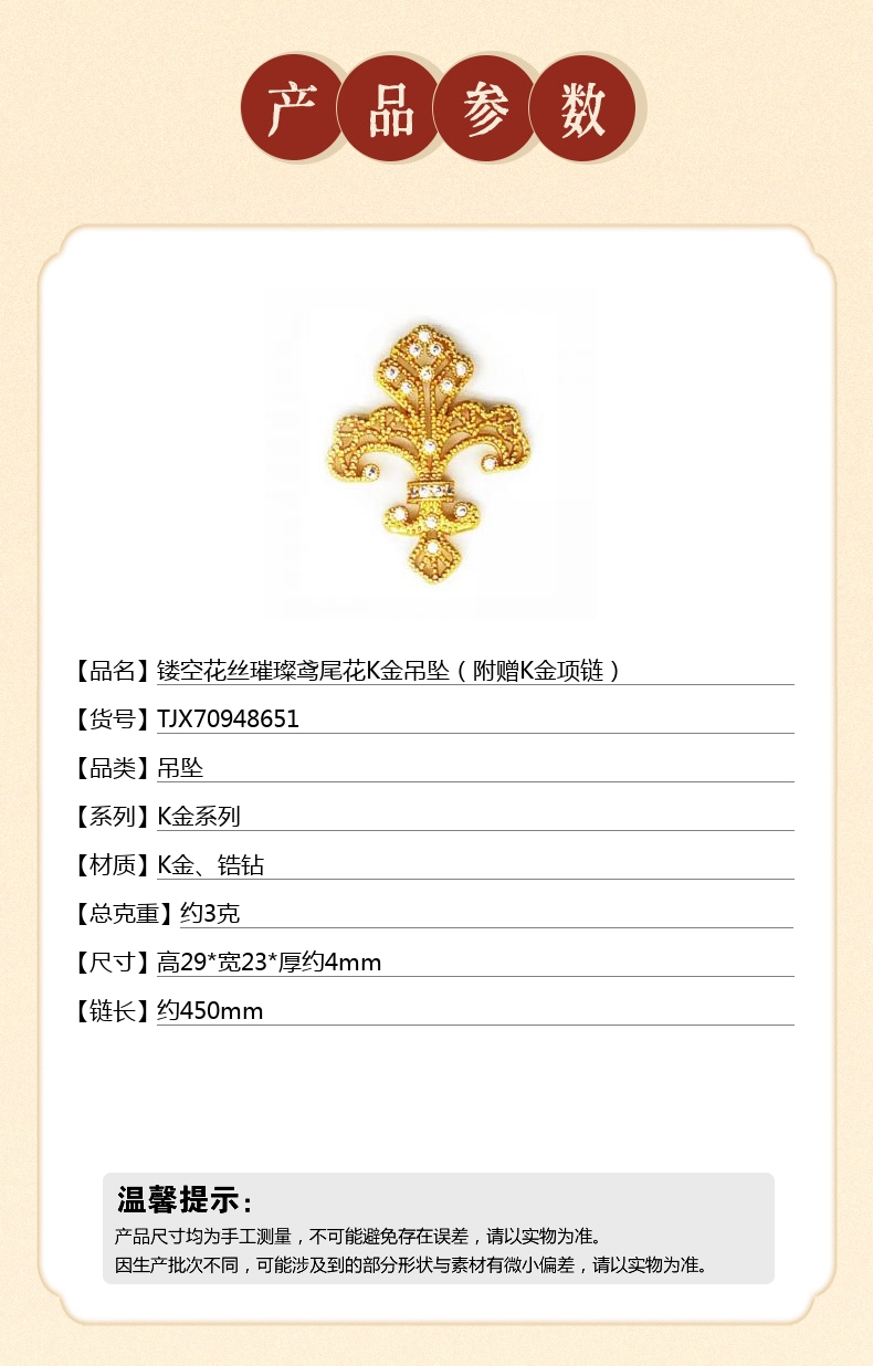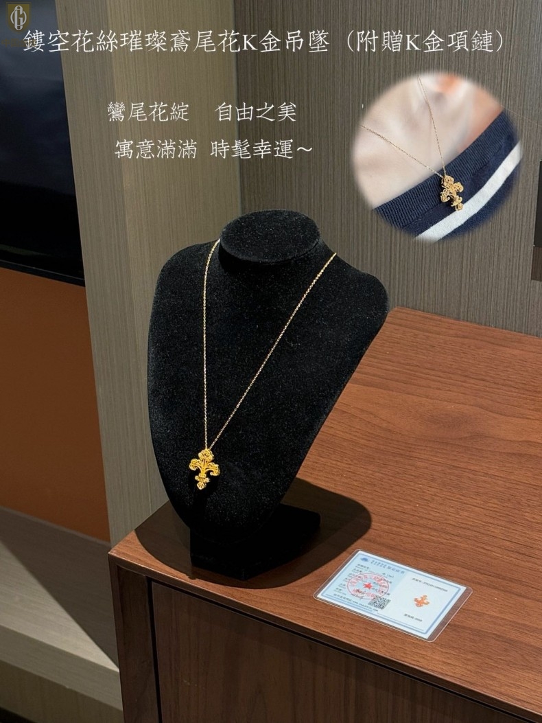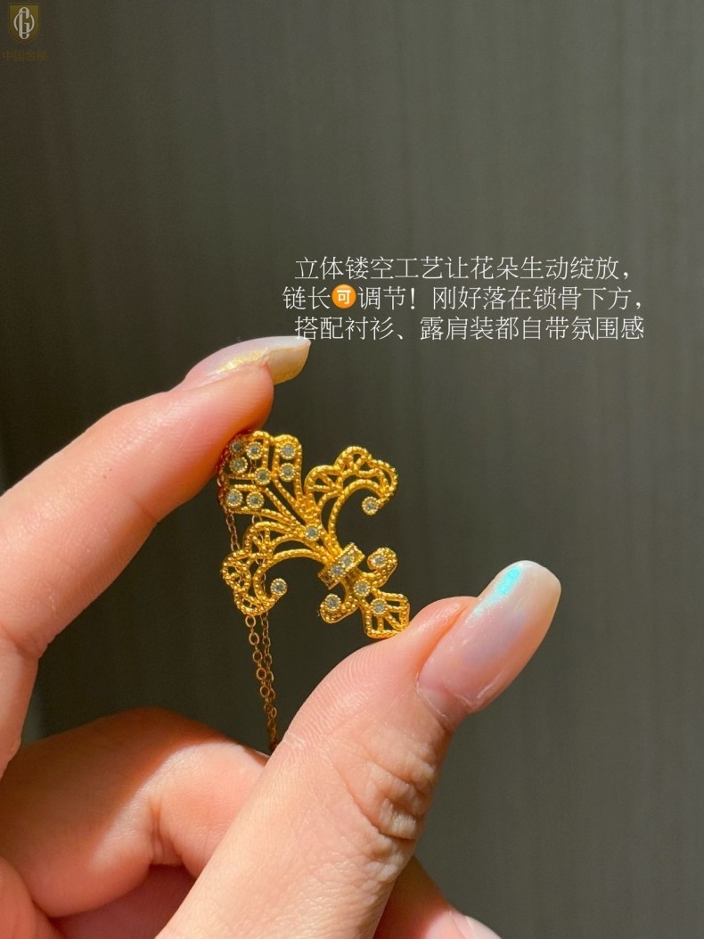 【品名】中国金楼镂空花丝璀璨鸢尾花K金吊坠(附赠K金项链)