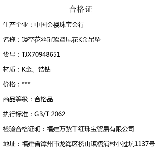 【套装包含】首饰+礼品盒+礼品袋+国检证书+质保单+价签