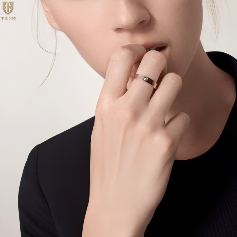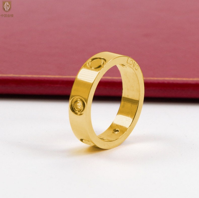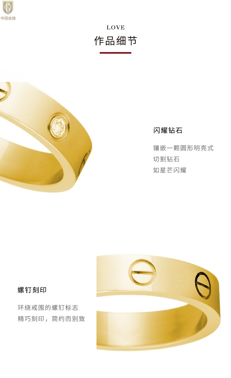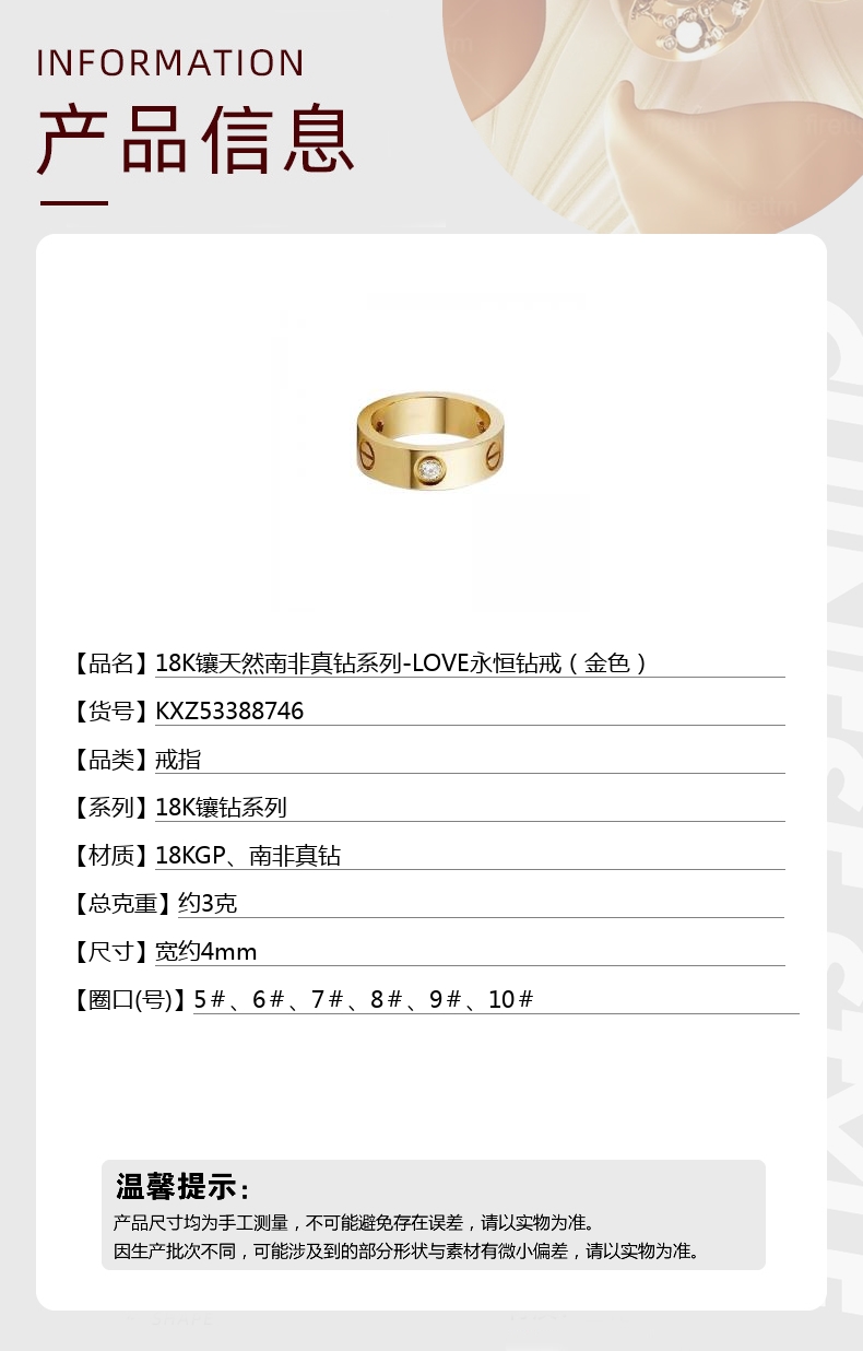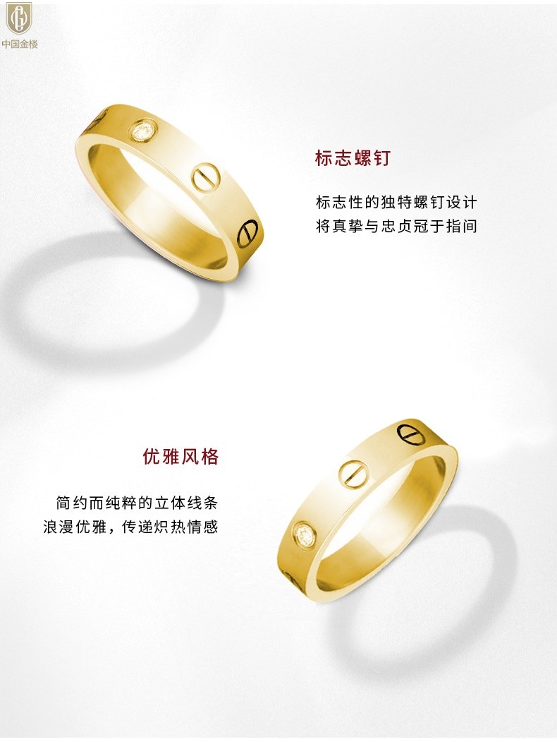 【品名】中国金楼18K镶天然南非真钻系列-LOVE永恒钻戒(金色)