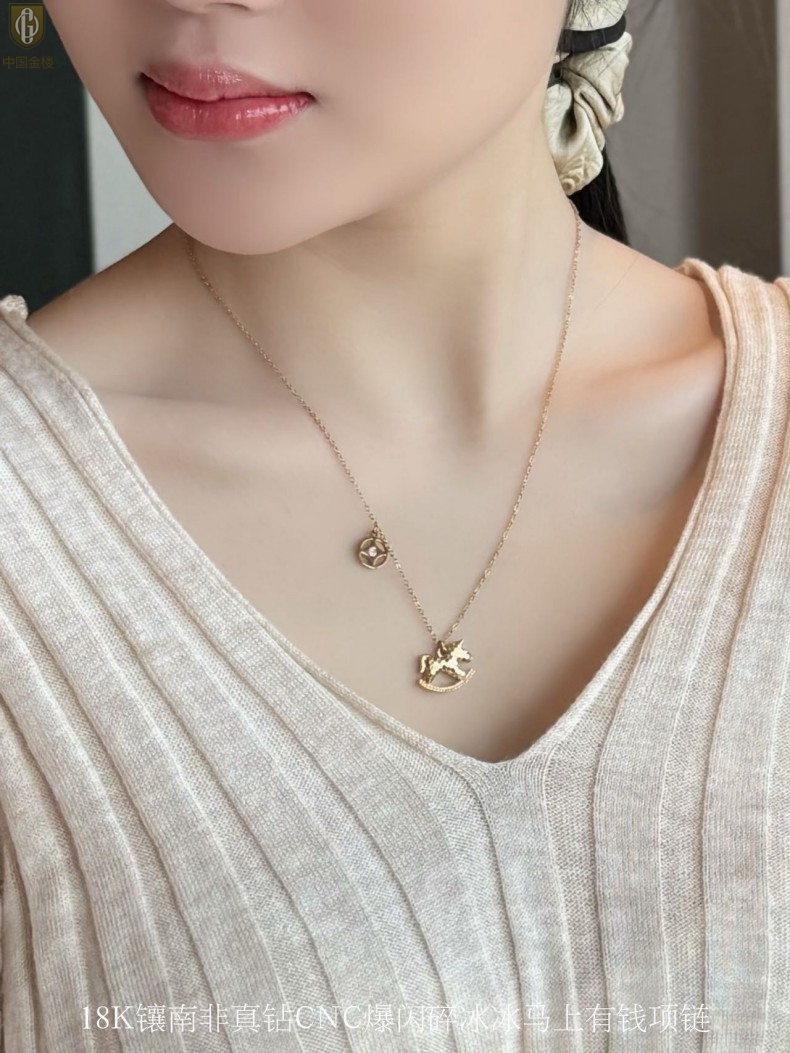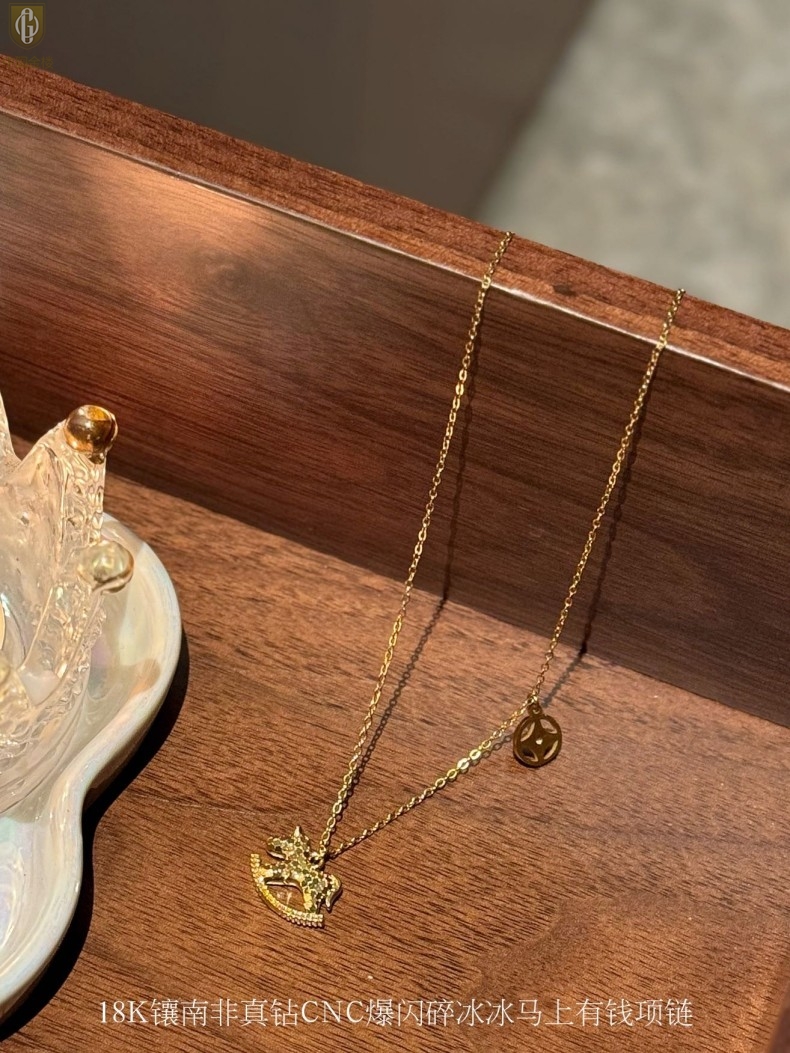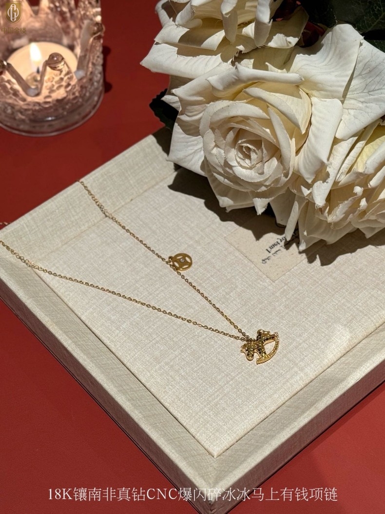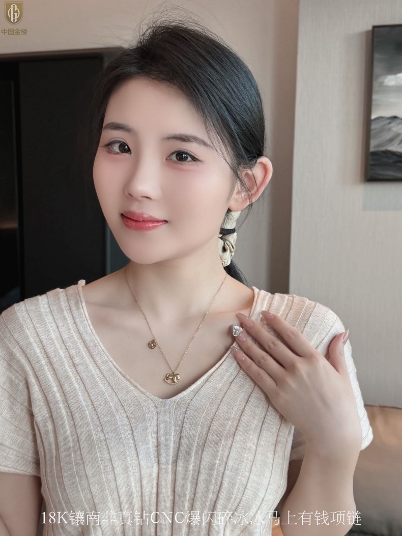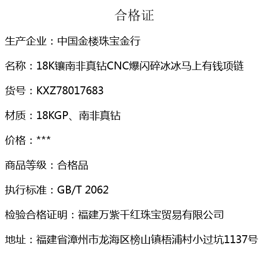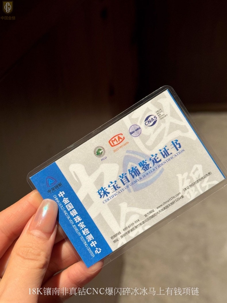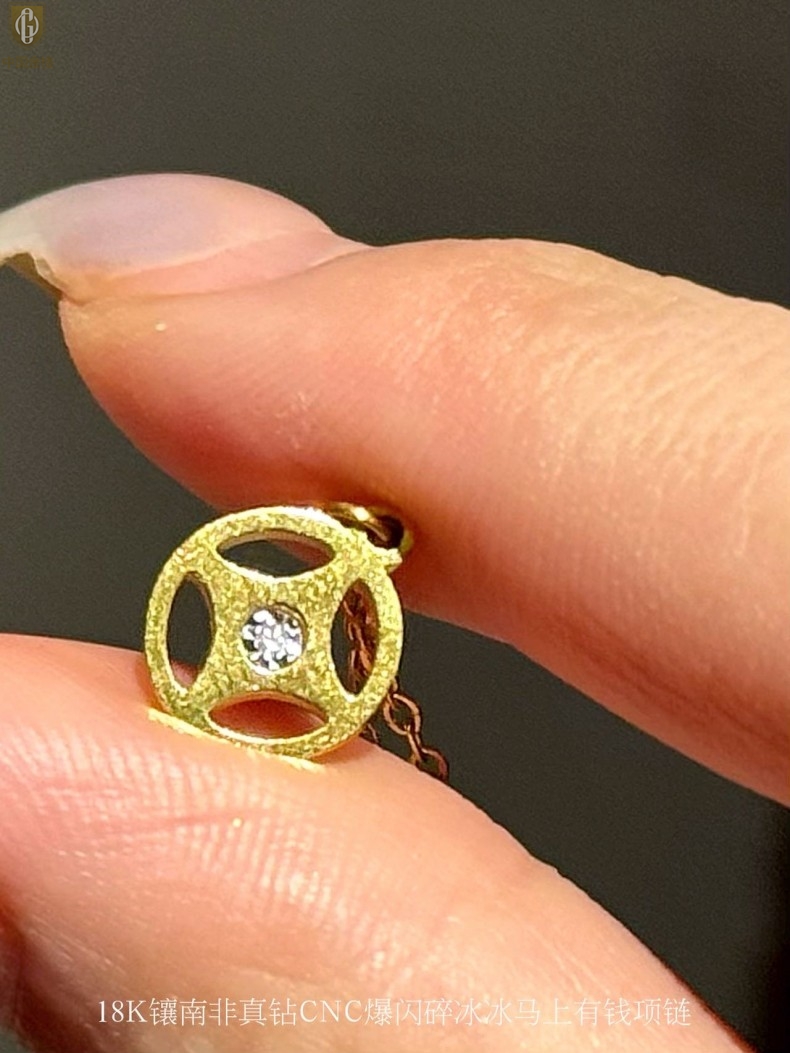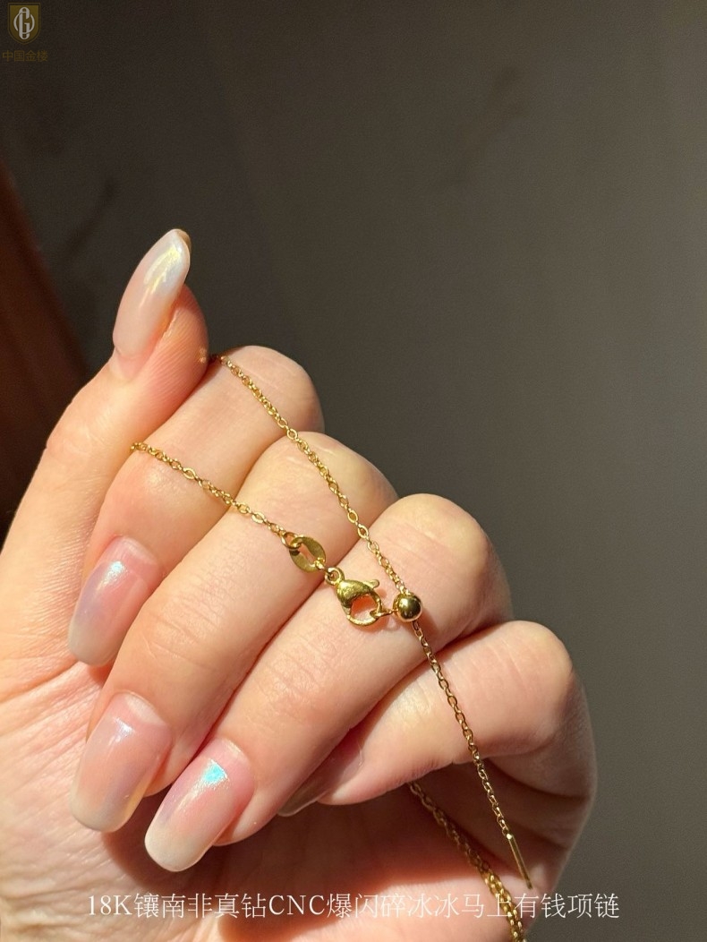 【品名】中国金楼18K镶南非真钻CNC爆闪碎冰冰马上有钱项链