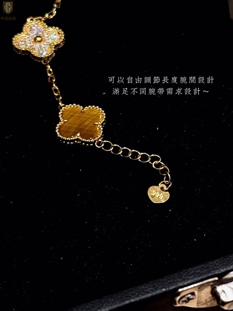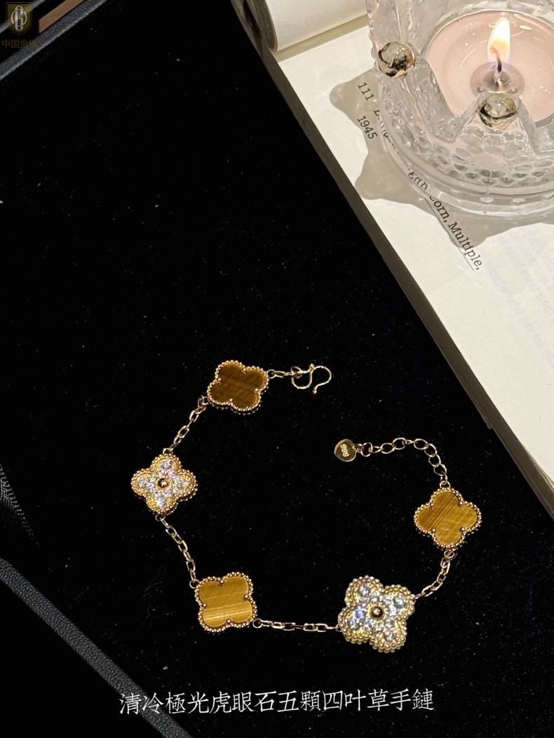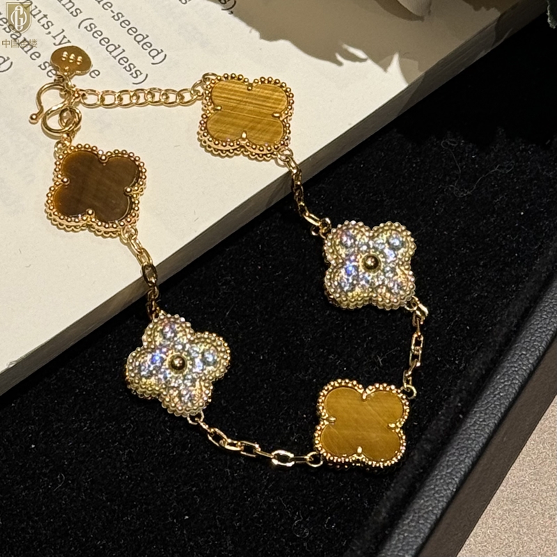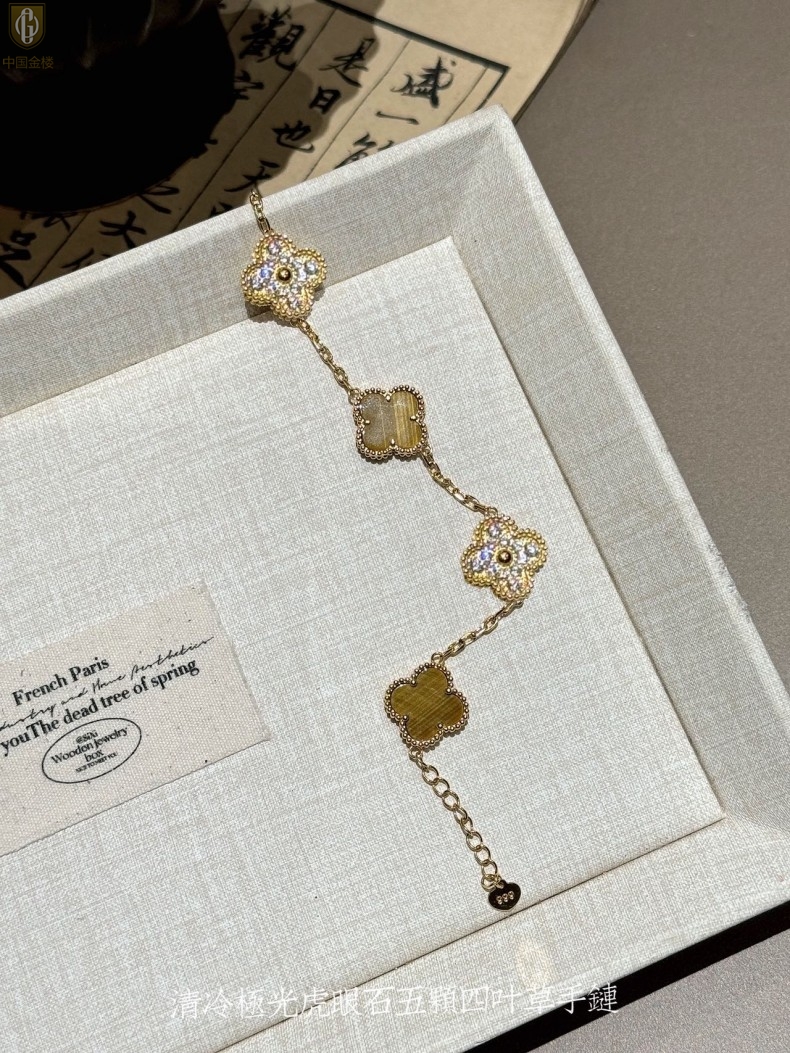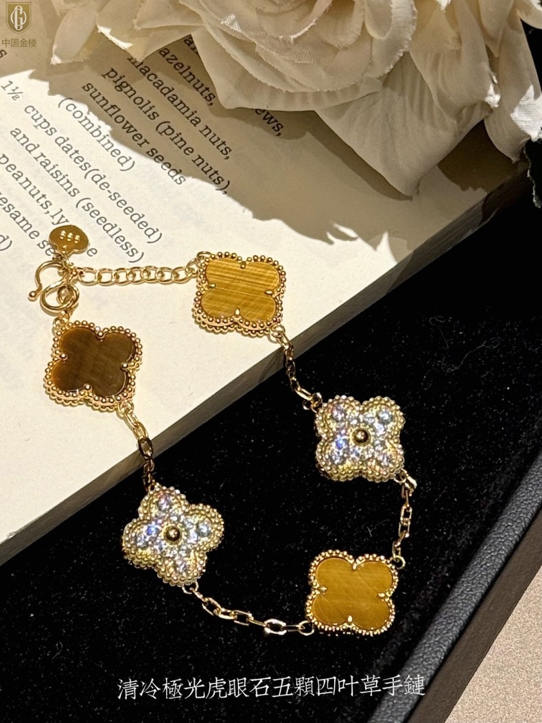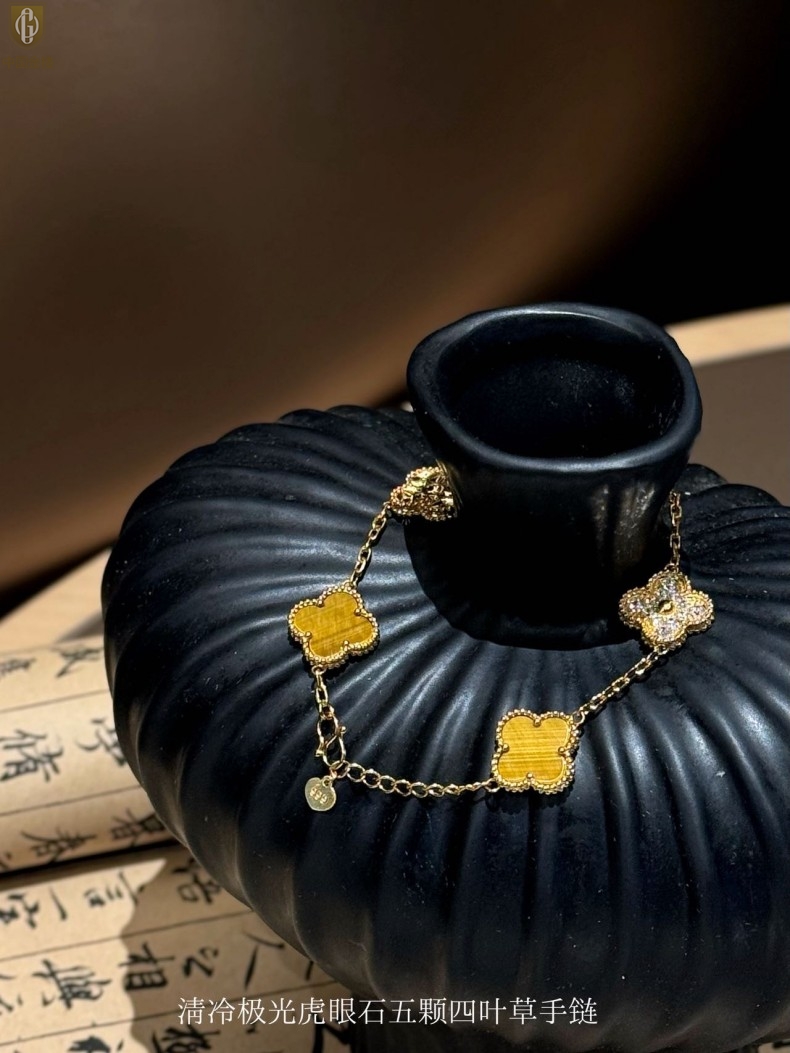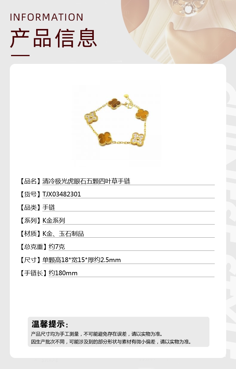 【品名】中国金楼清冷极光虎眼石五颗四叶草手链