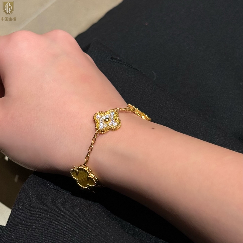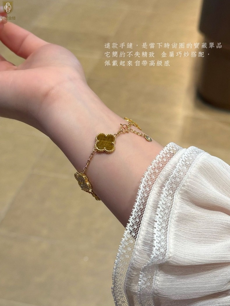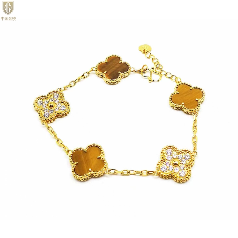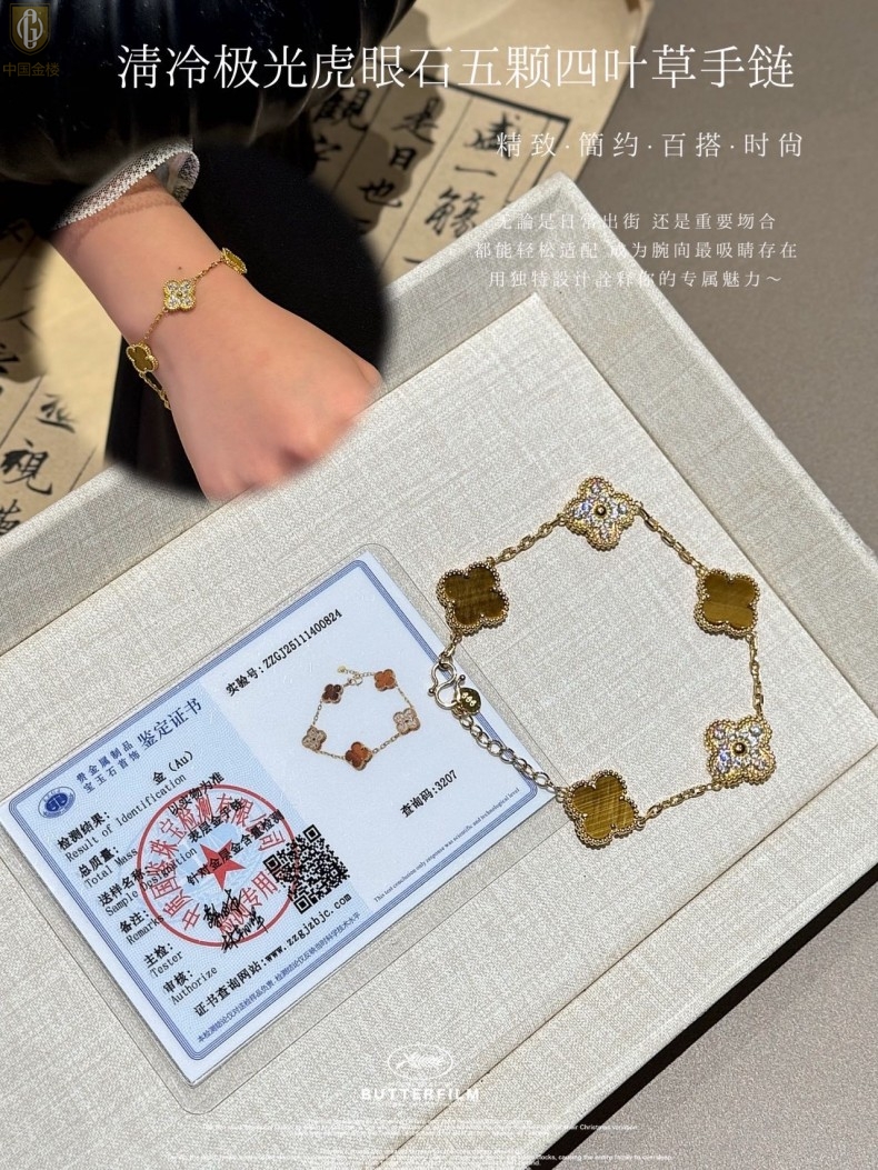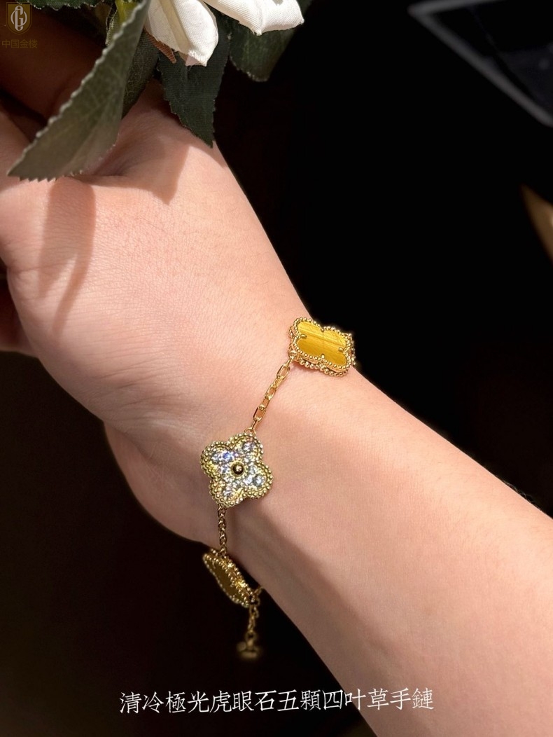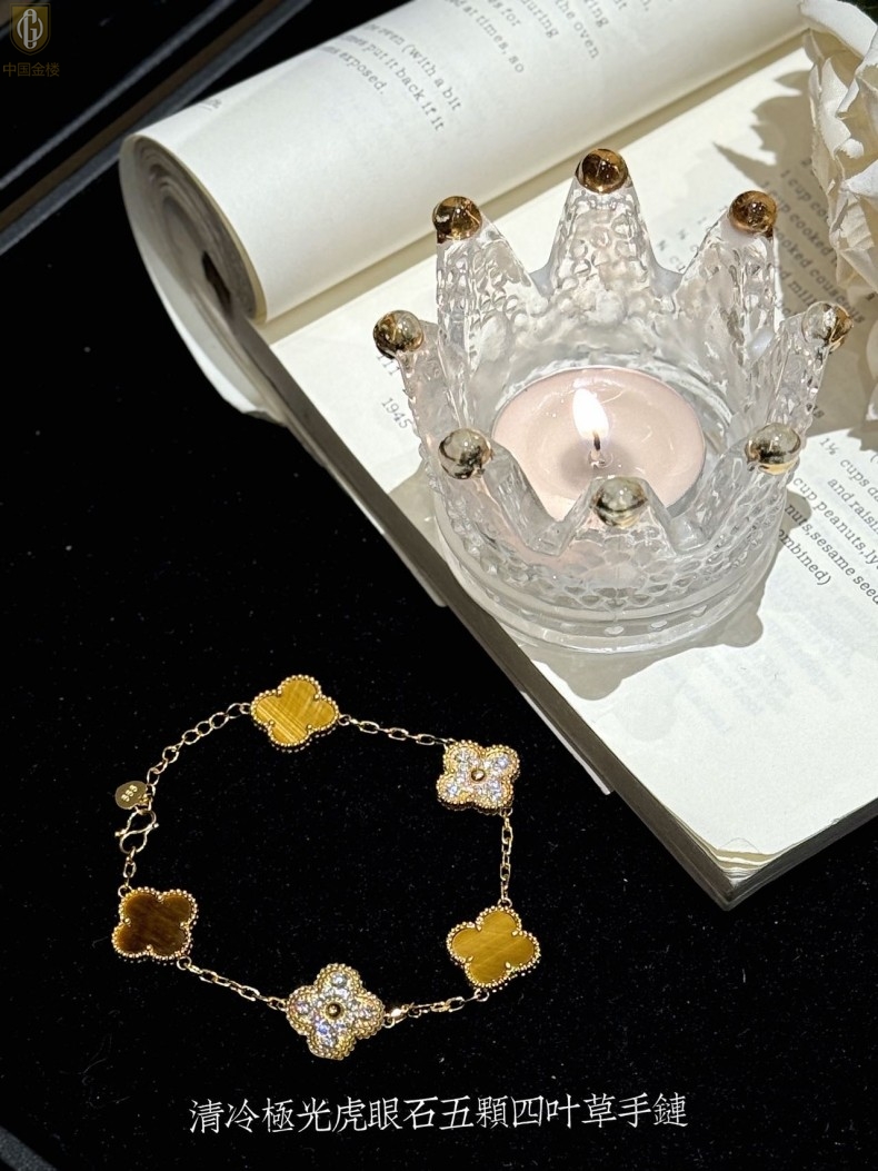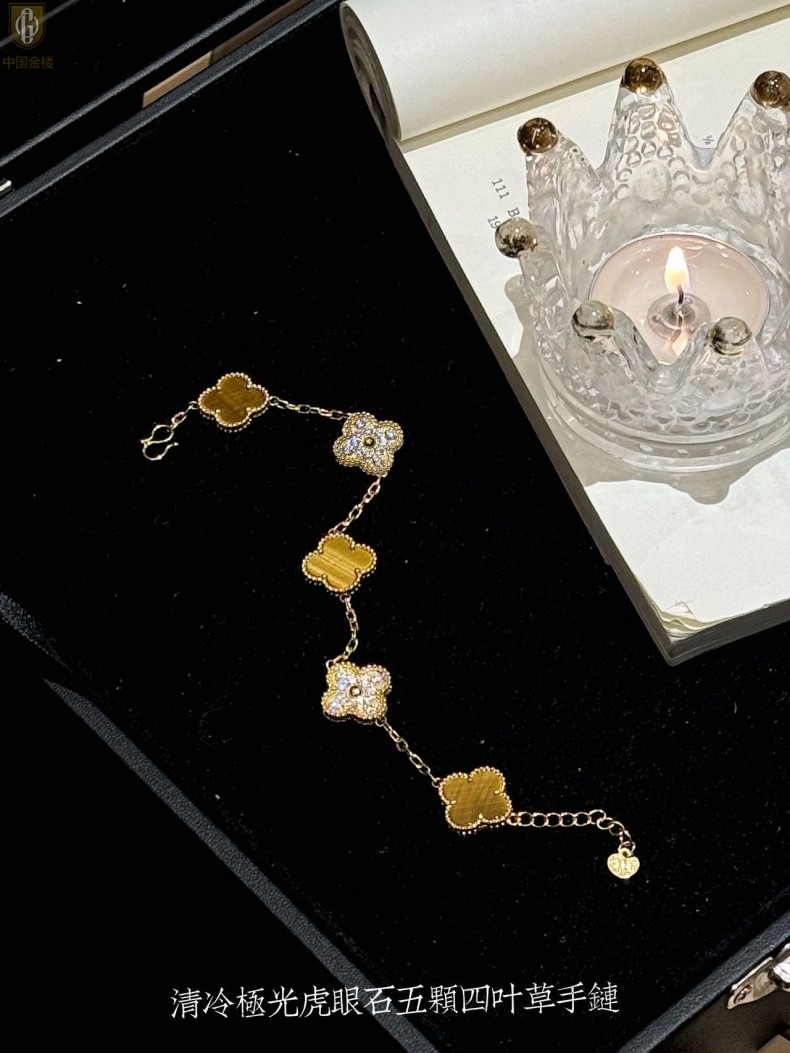 【品名】中国金楼清冷极光虎眼石五颗四叶草手链