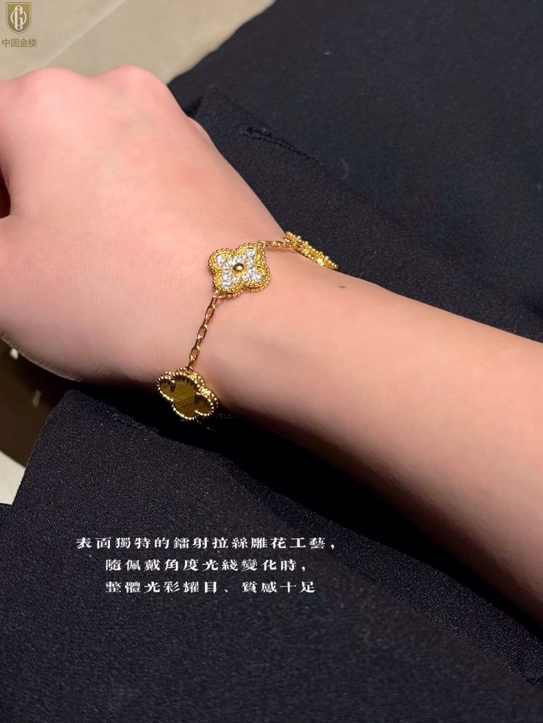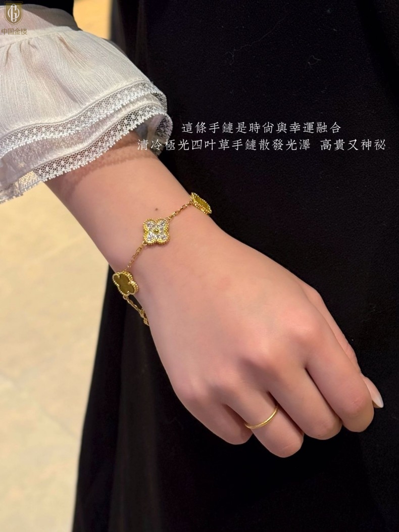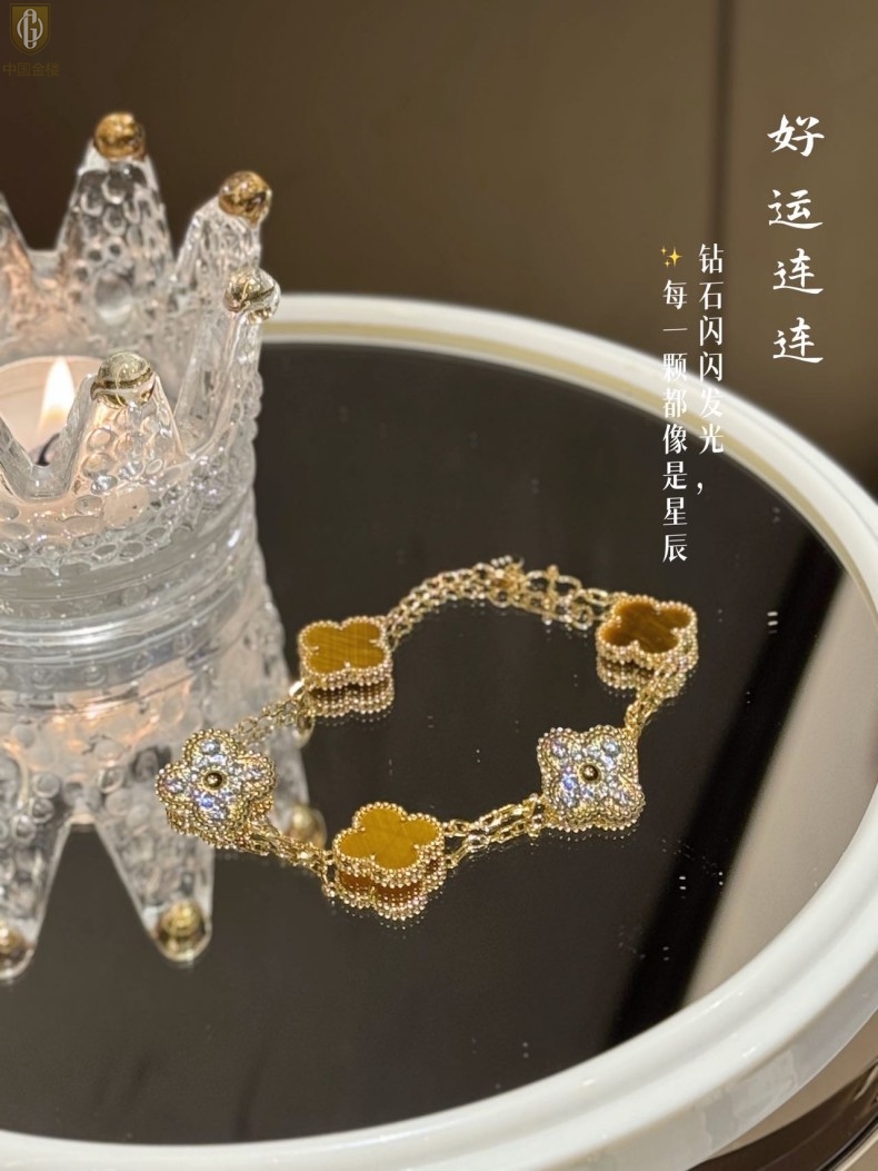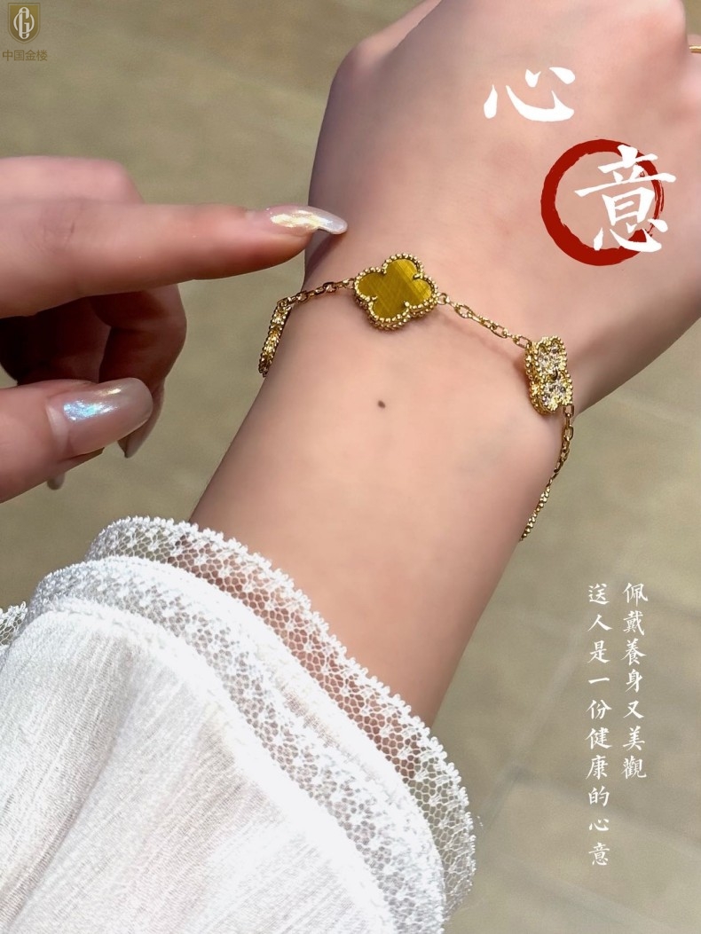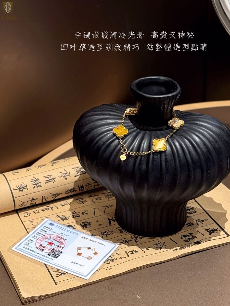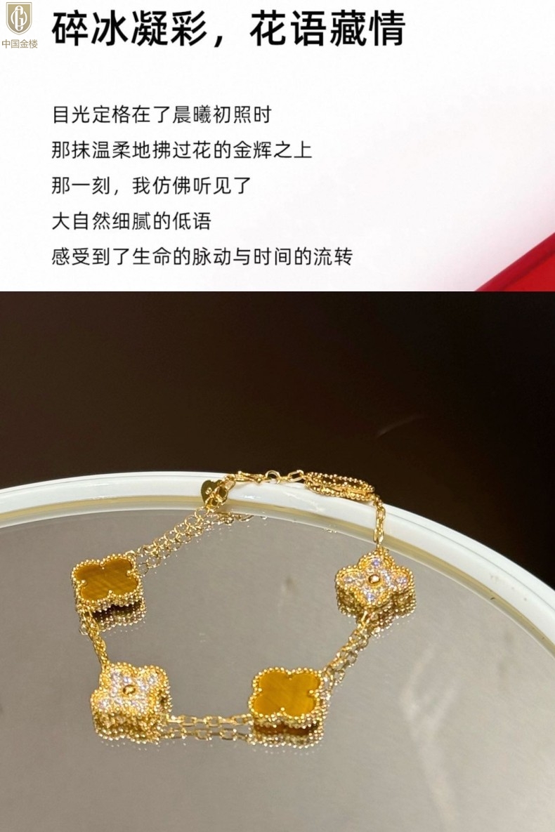 【品名】中国金楼清冷极光虎眼石五颗四叶草手链