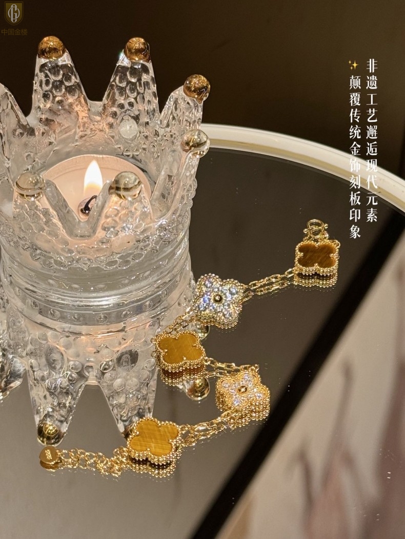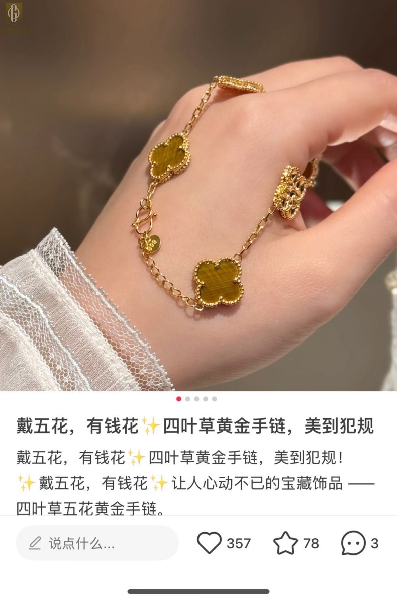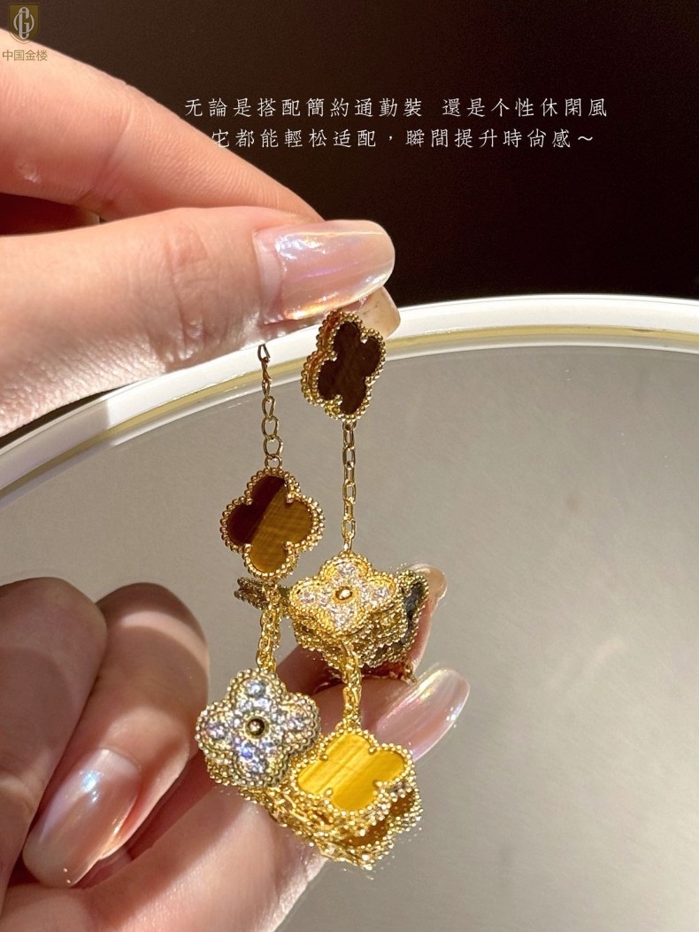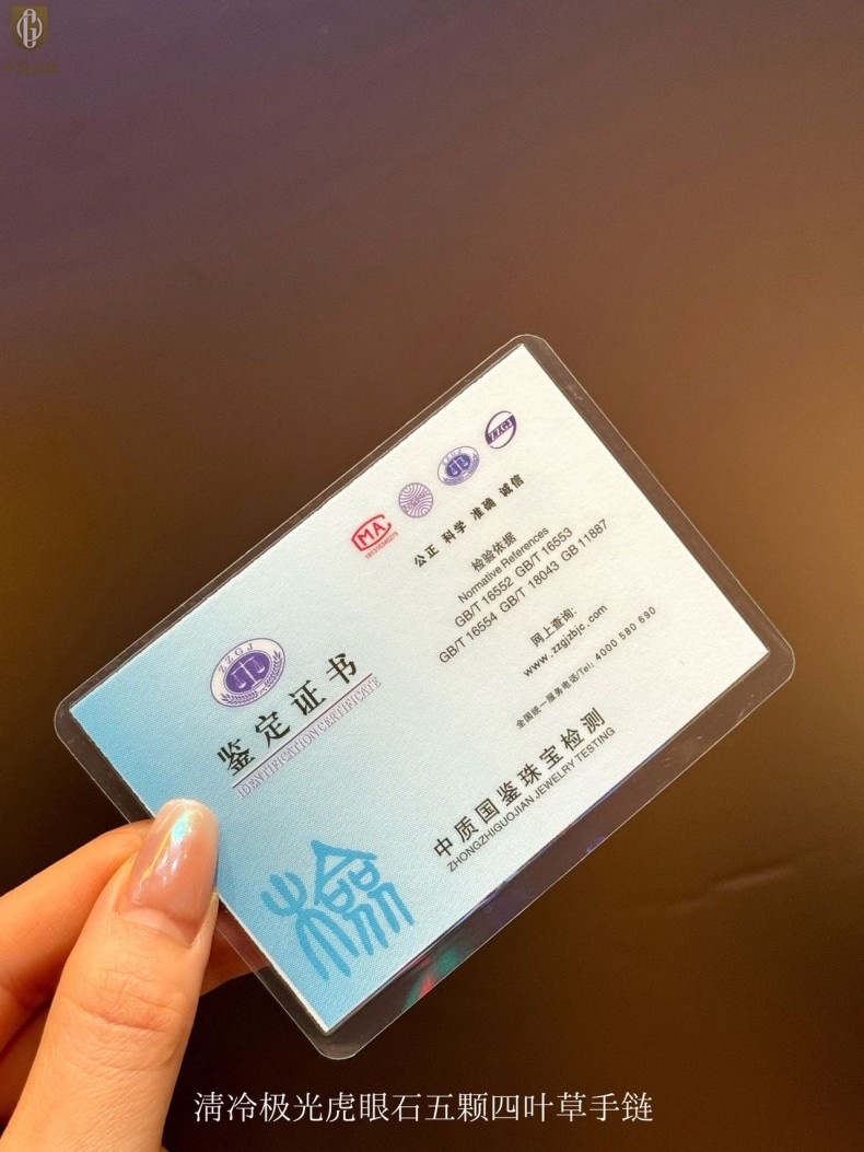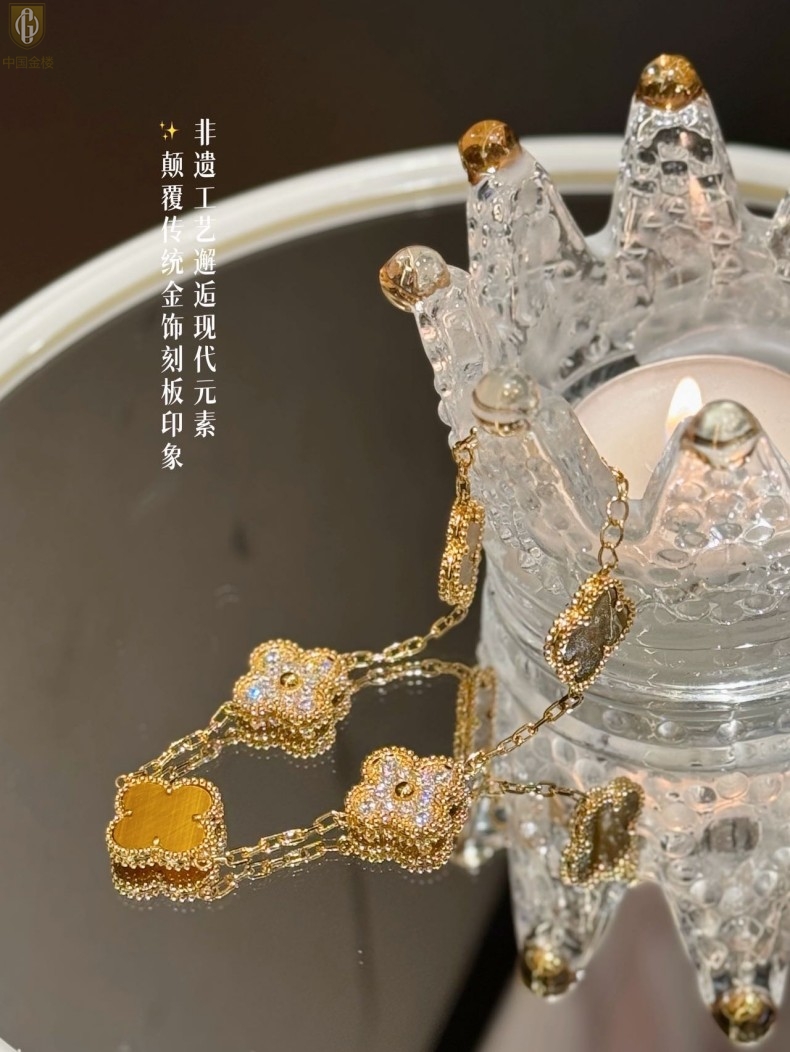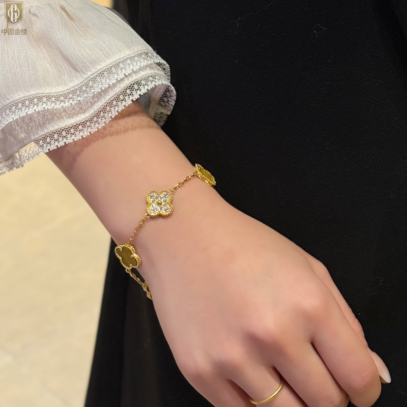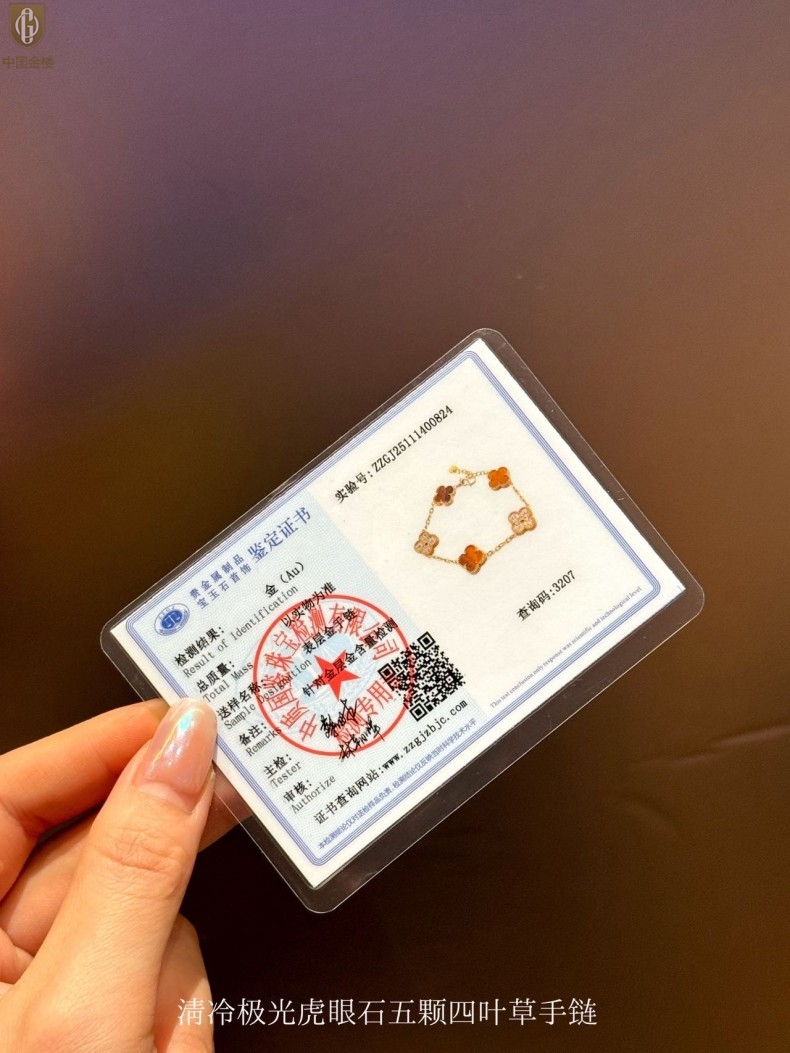 【品名】中国金楼清冷极光虎眼石五颗四叶草手链