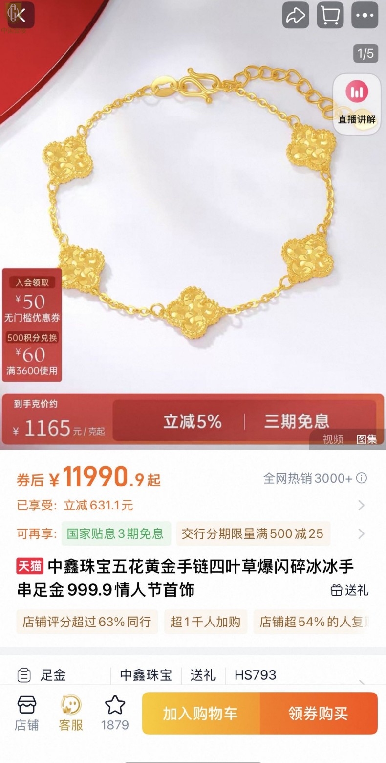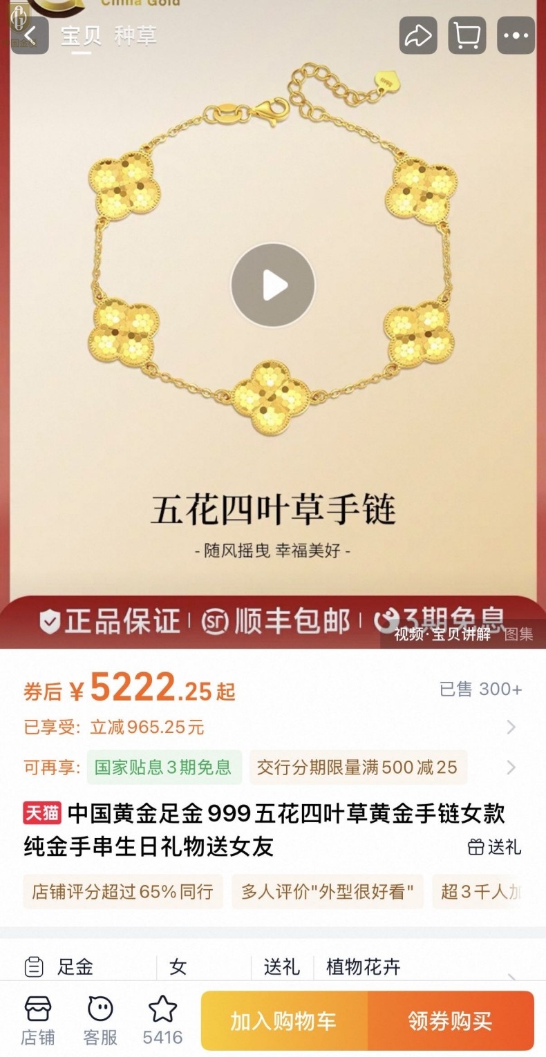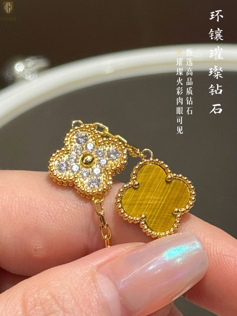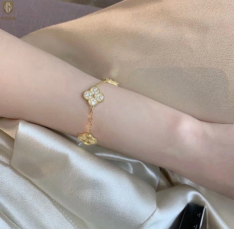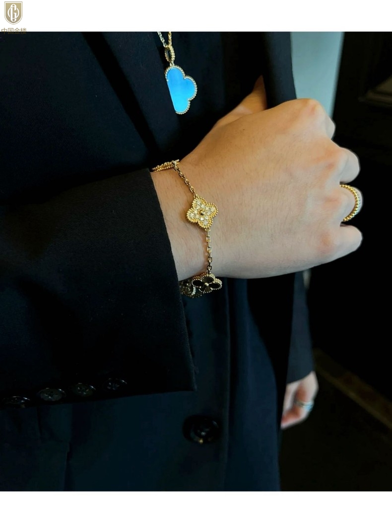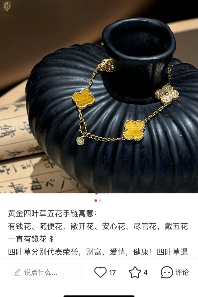 【品名】中国金楼清冷极光虎眼石五颗四叶草手链