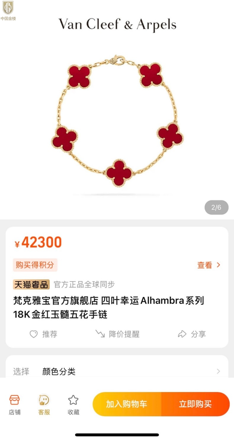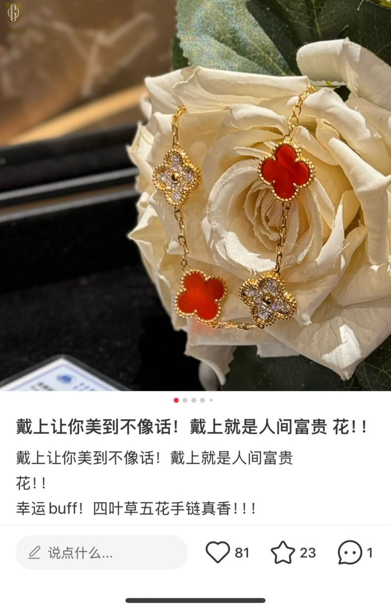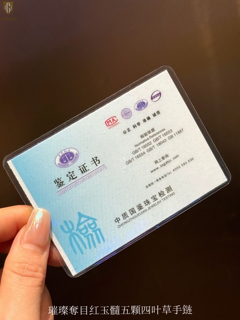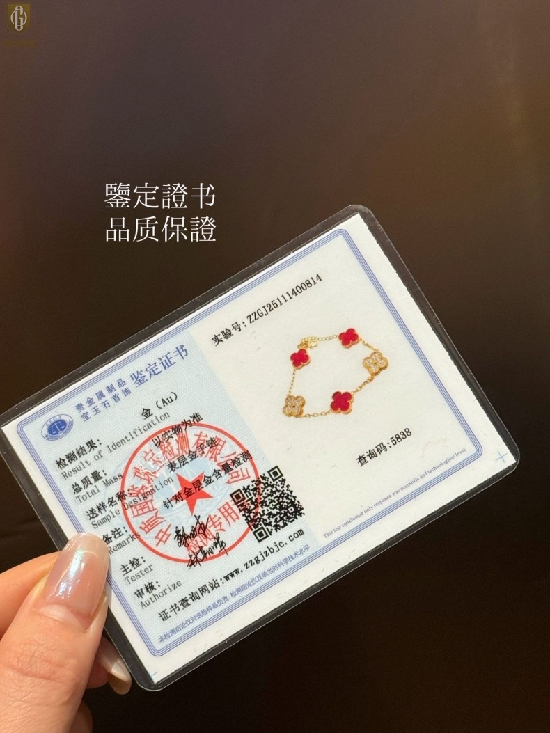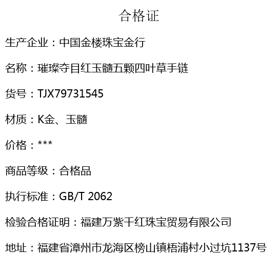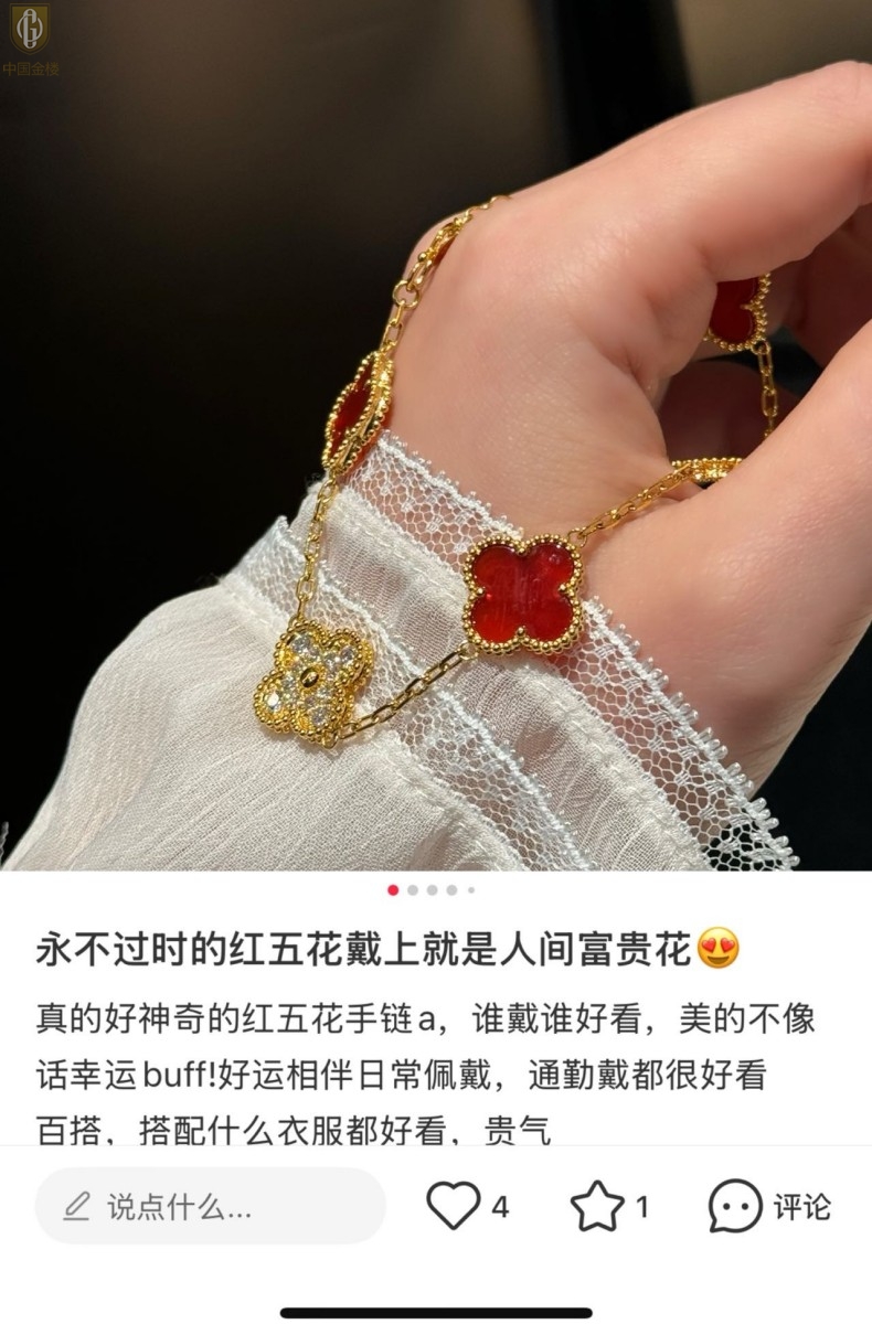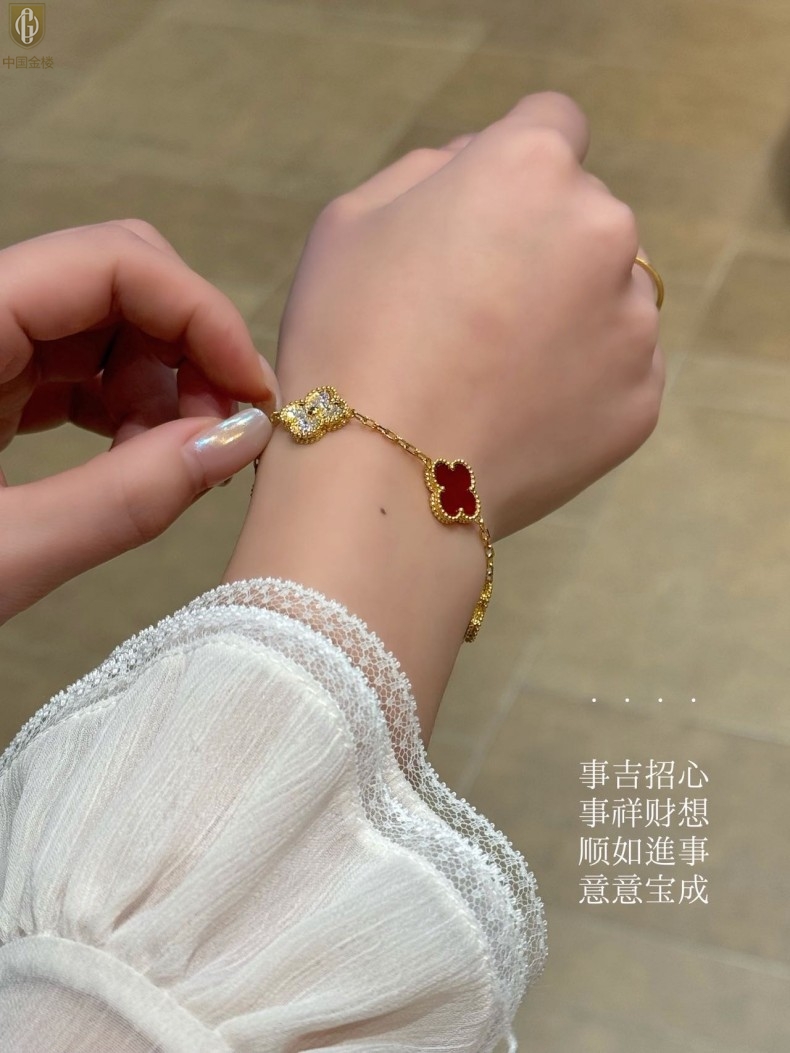 【品名】中国金楼璀璨夺目红玉髓五颗四叶草手链