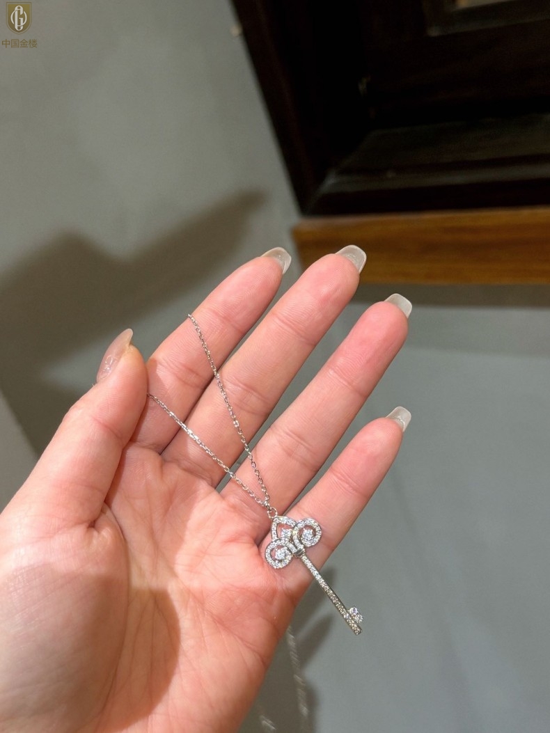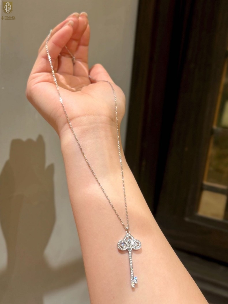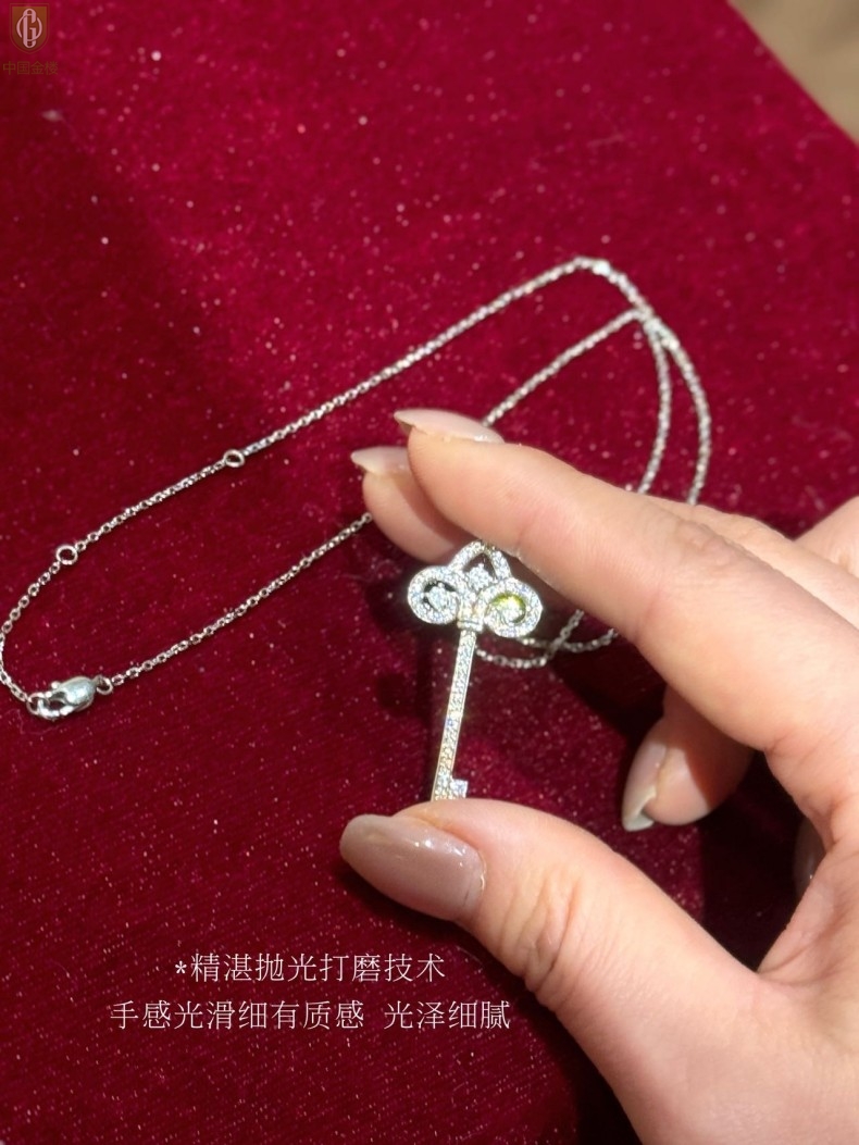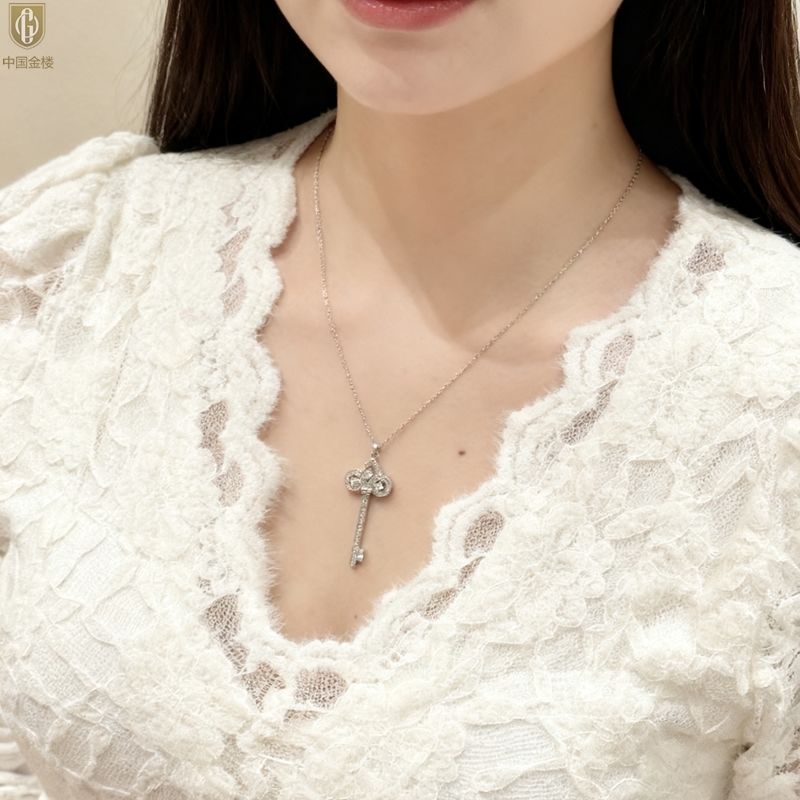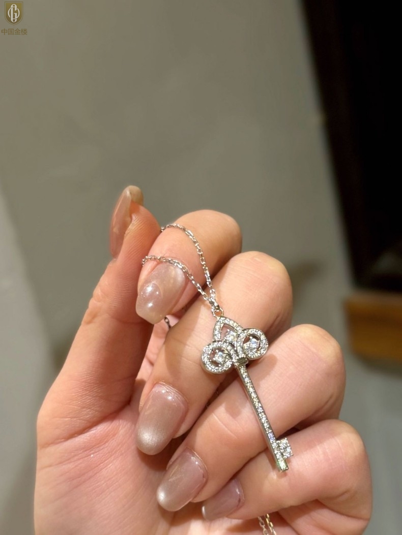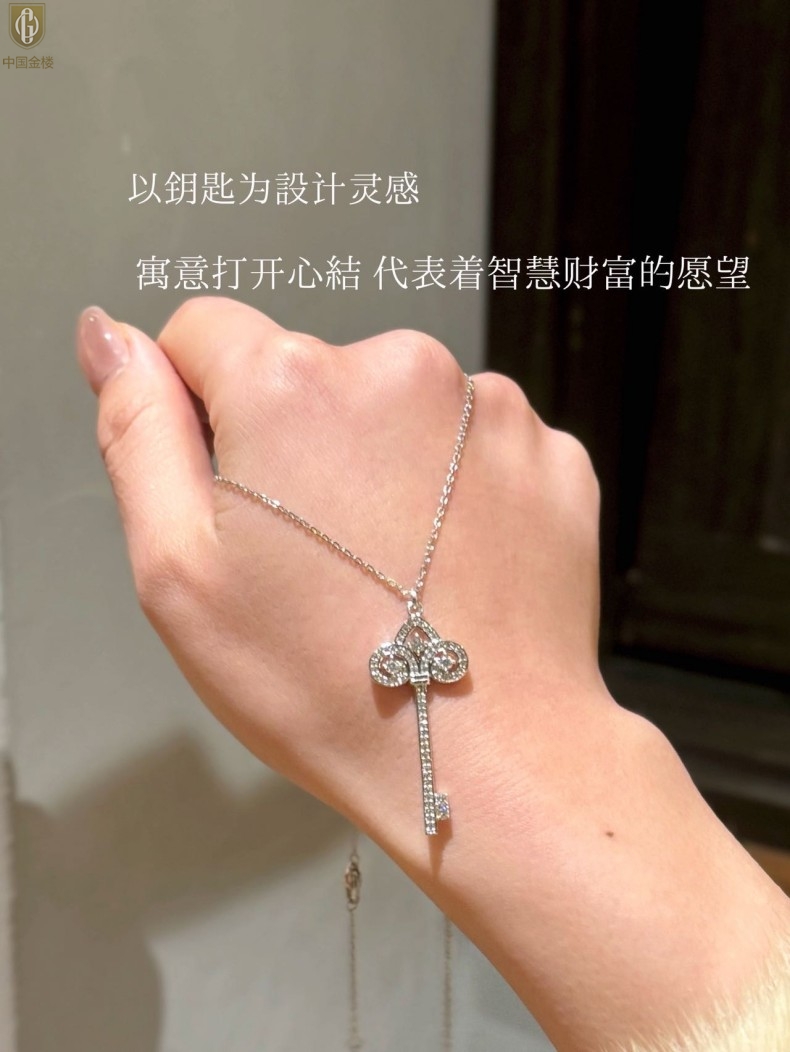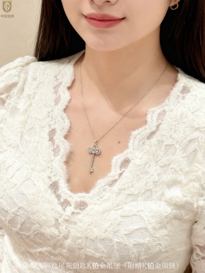 【品名】中国金楼璀璨密码鸢尾花钥匙K铂金吊坠(附赠K铂金项链)