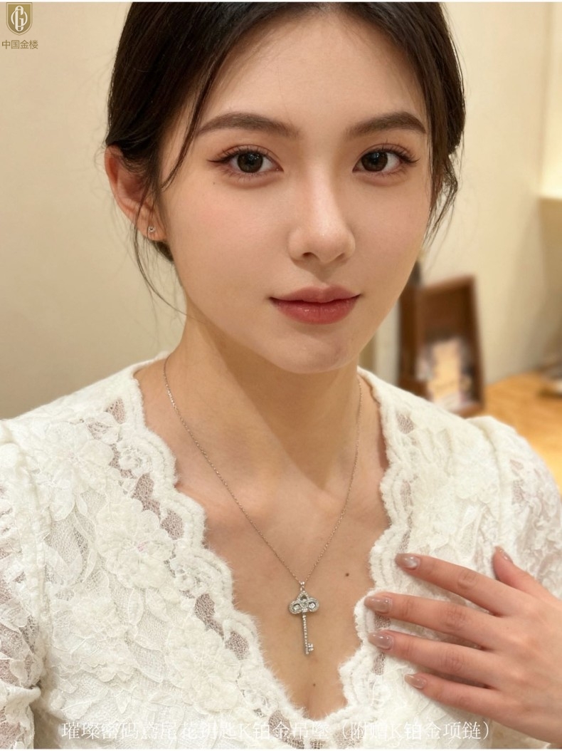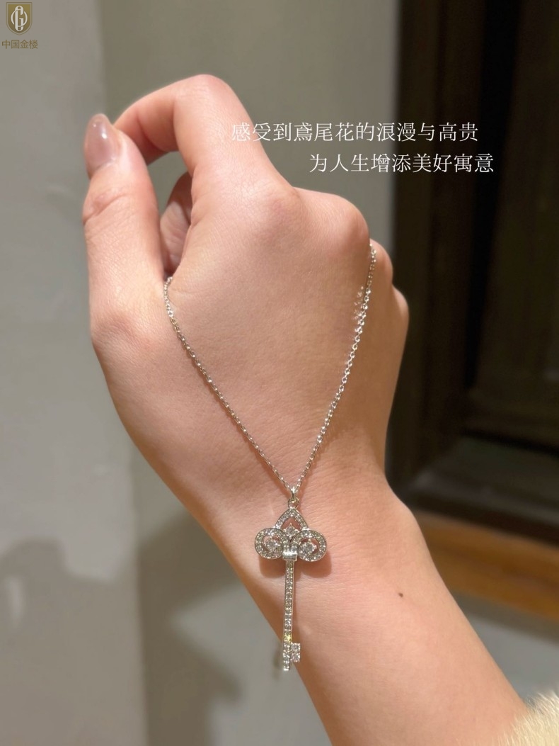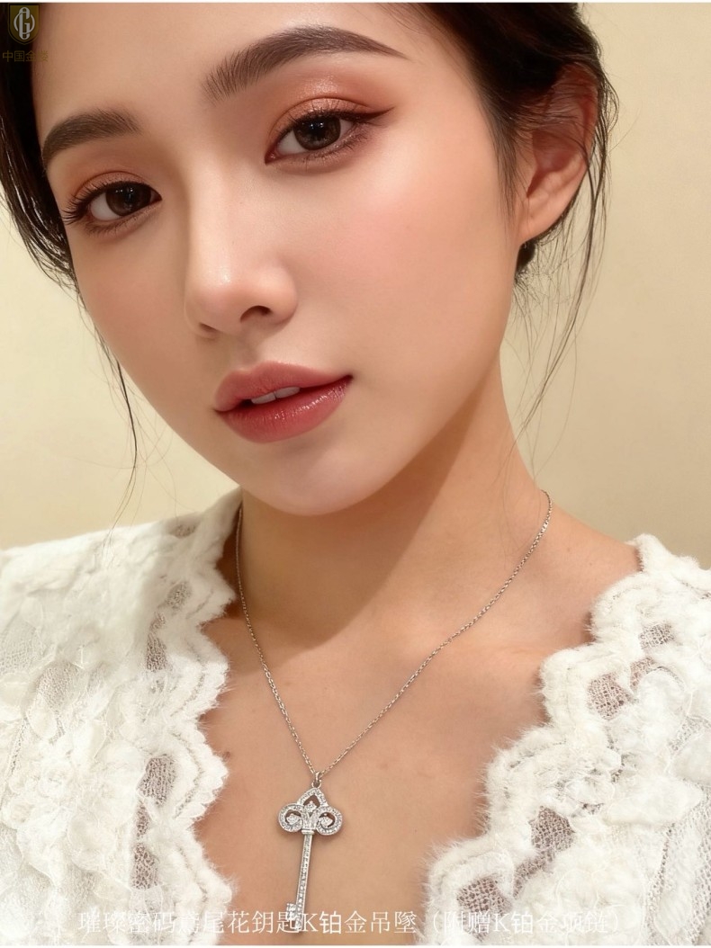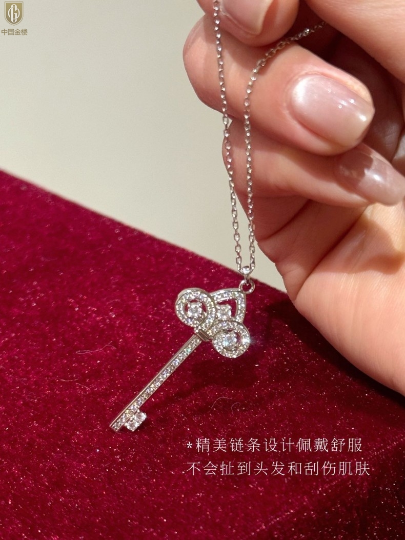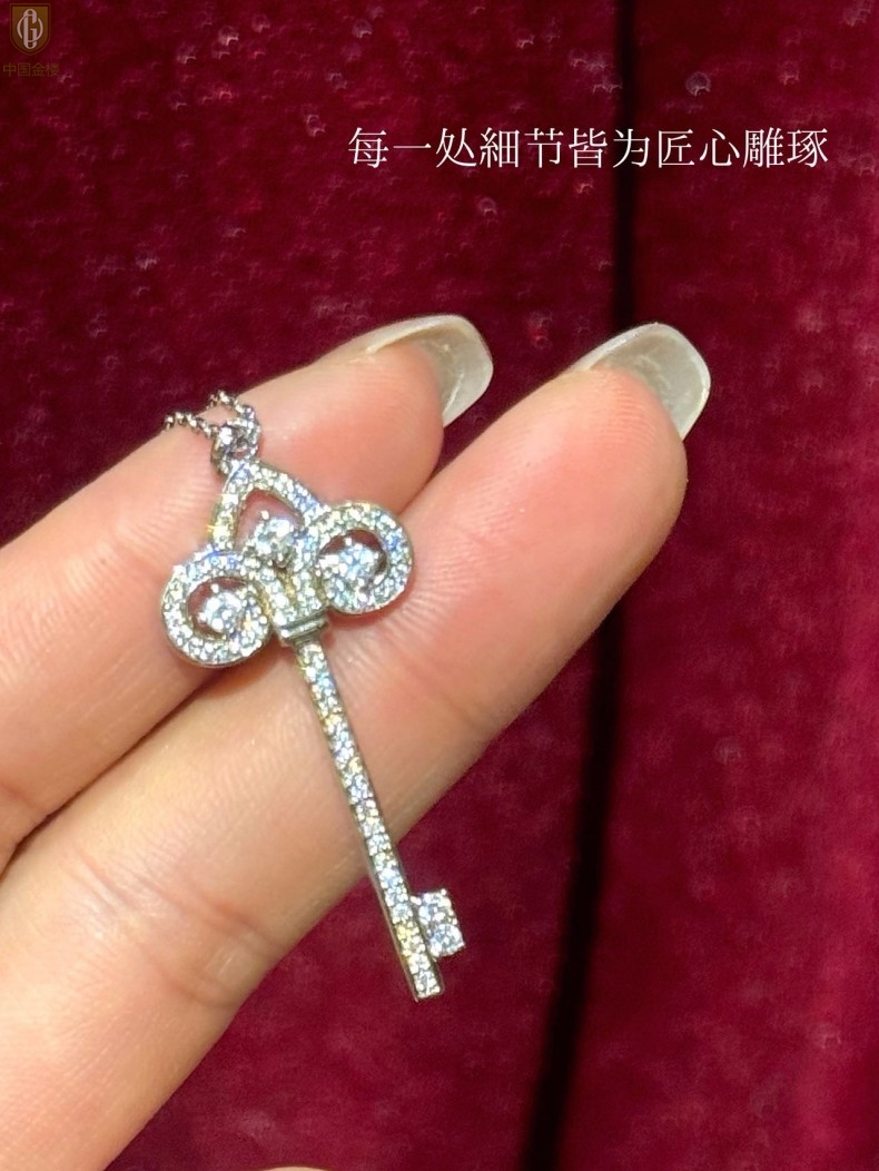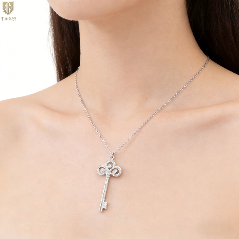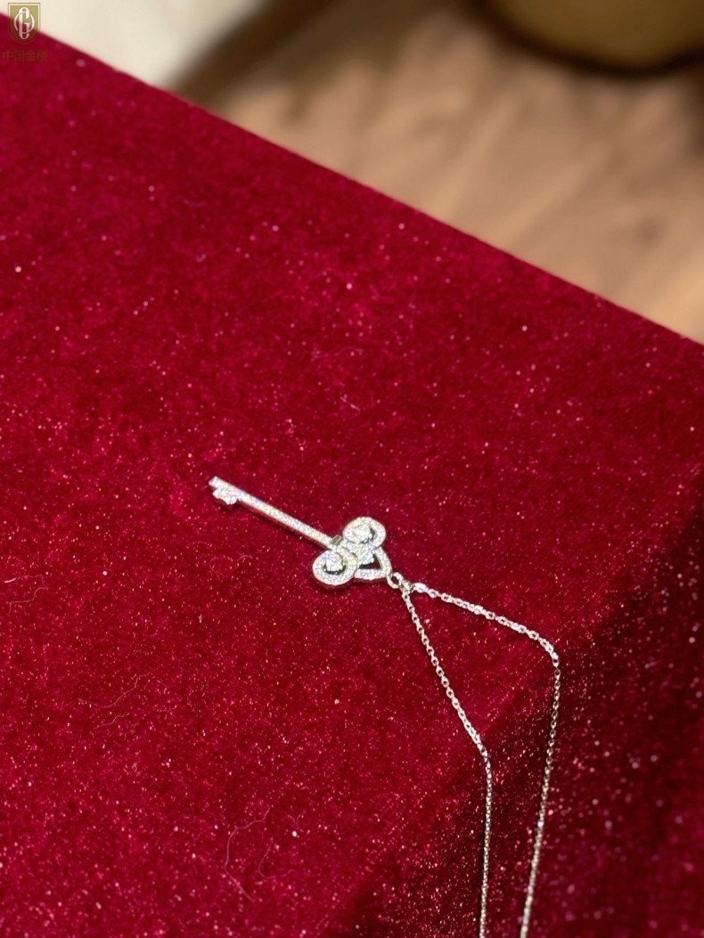 【品名】中国金楼璀璨密码鸢尾花钥匙K铂金吊坠(附赠K铂金项链)