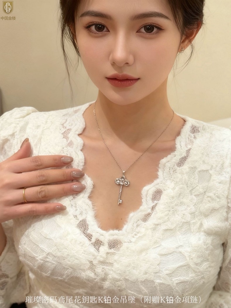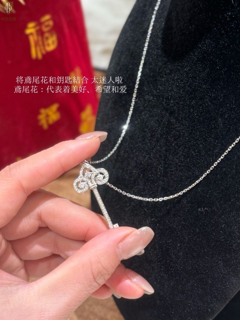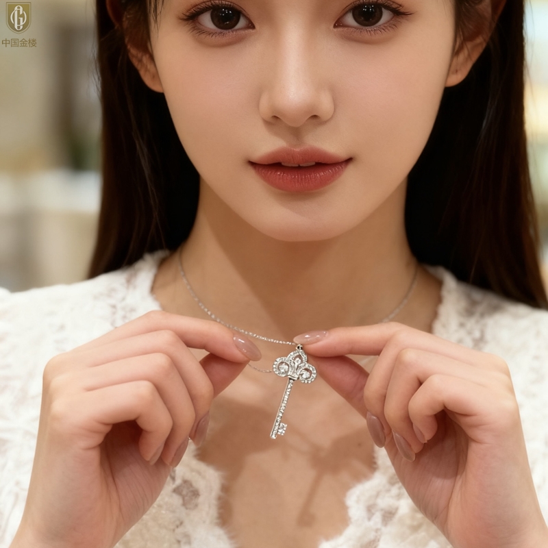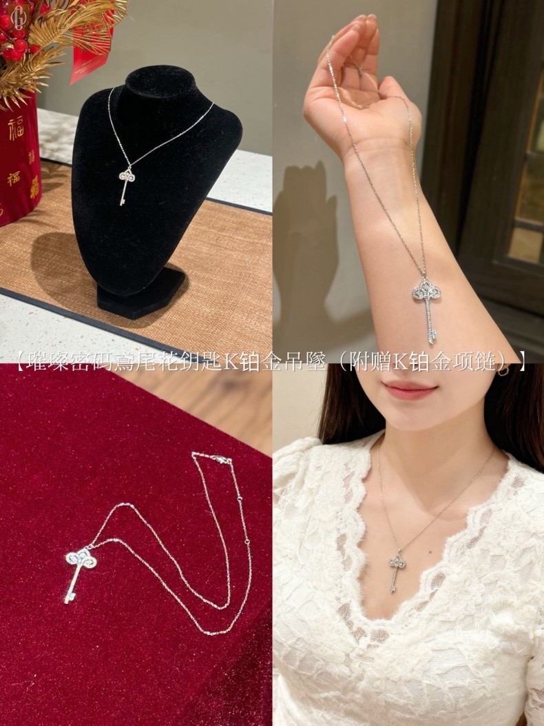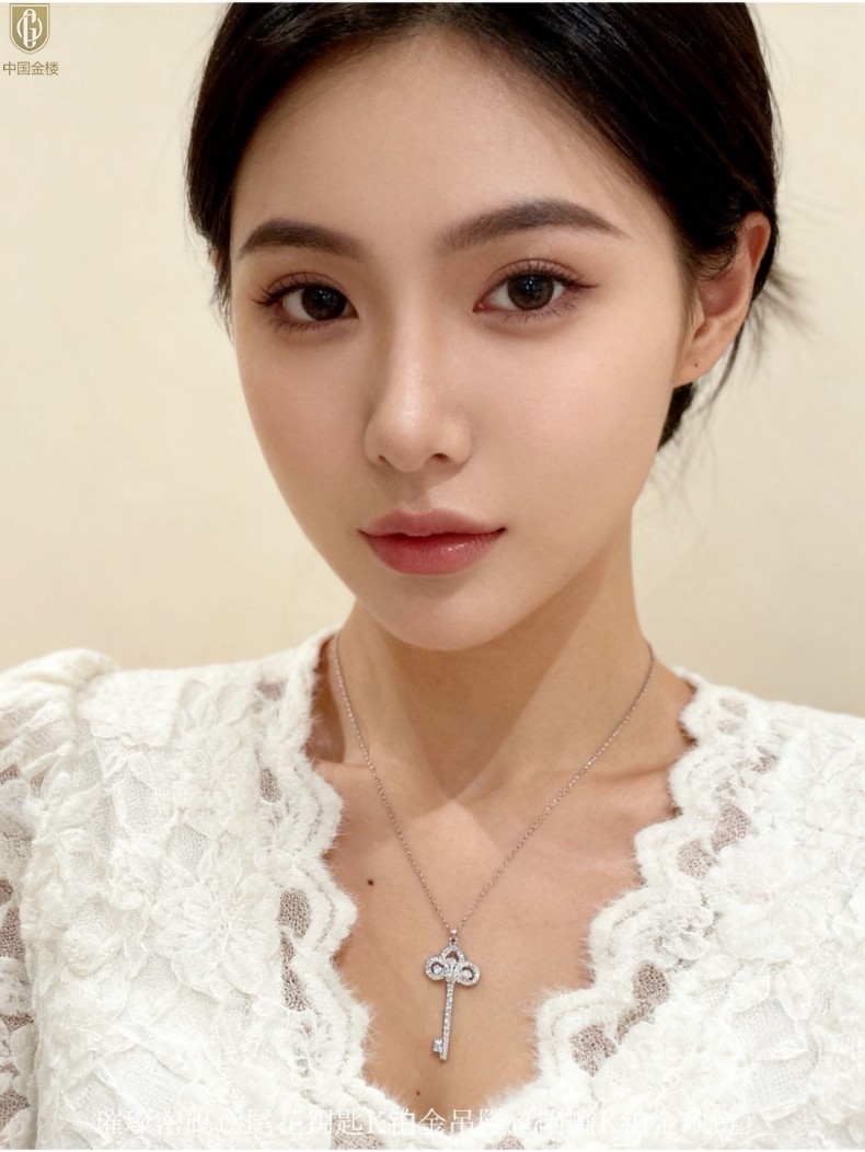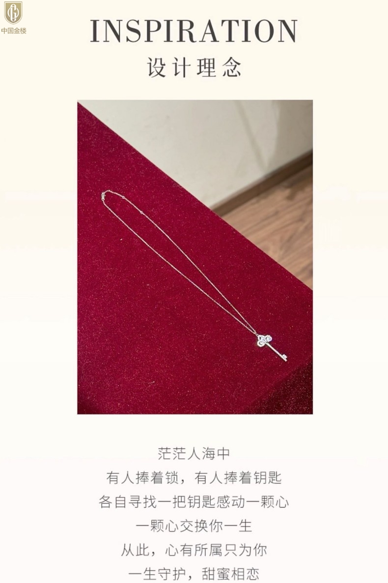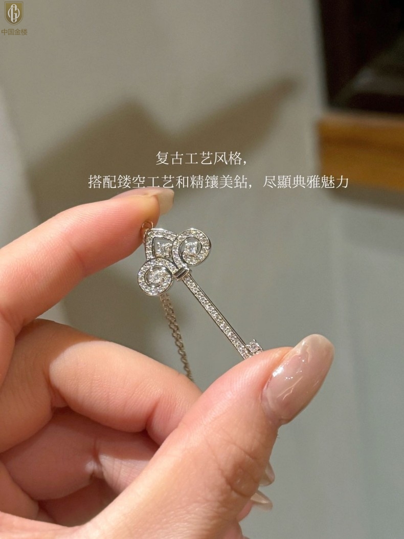 【品名】中国金楼璀璨密码鸢尾花钥匙K铂金吊坠(附赠K铂金项链)