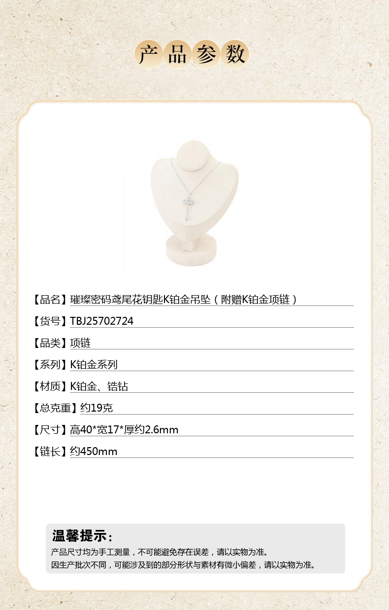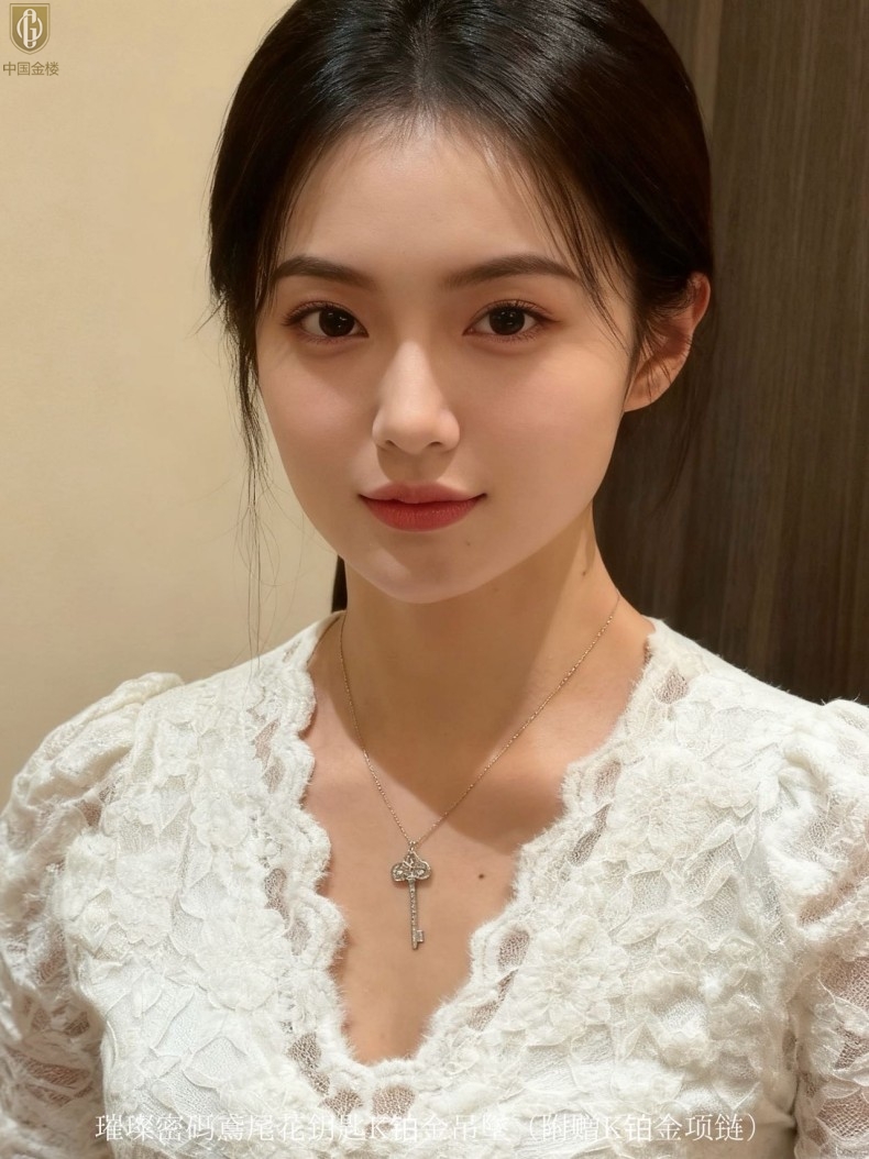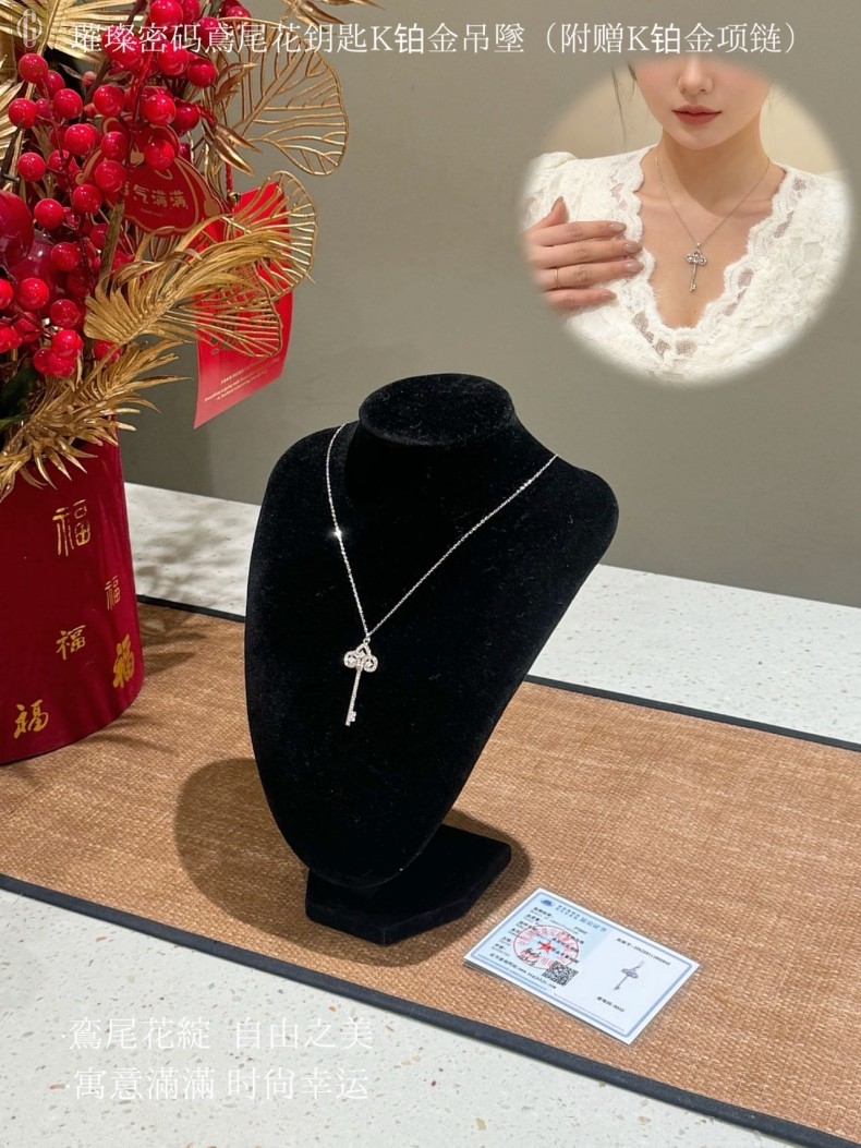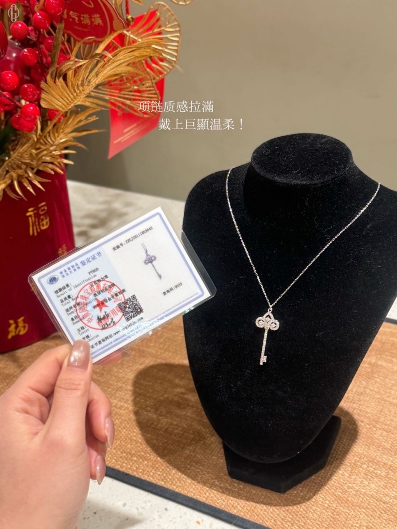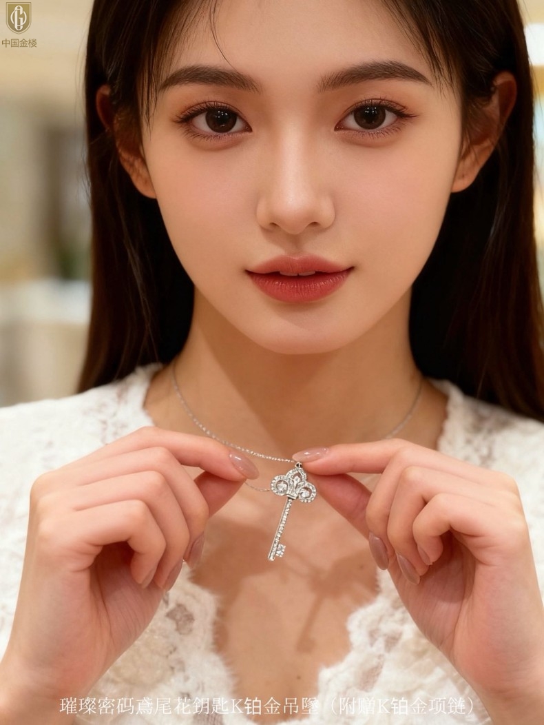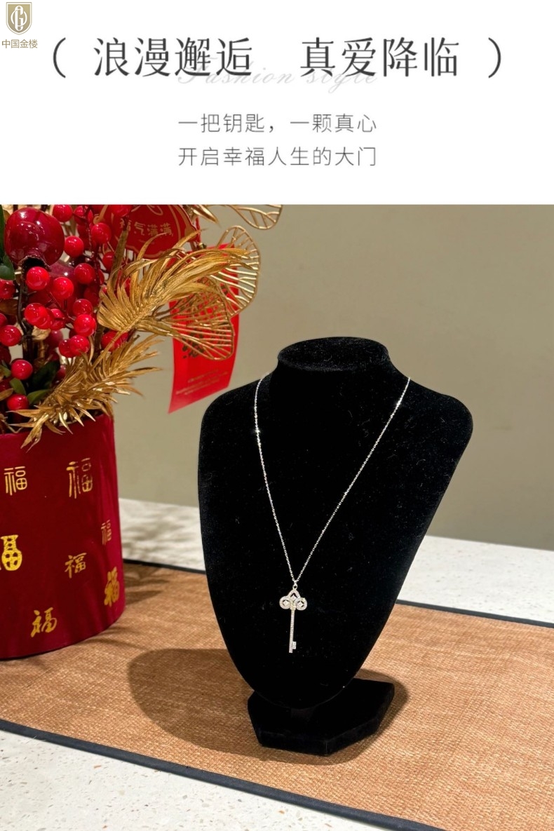 【品名】中国金楼璀璨密码鸢尾花钥匙K铂金吊坠(附赠K铂金项链)