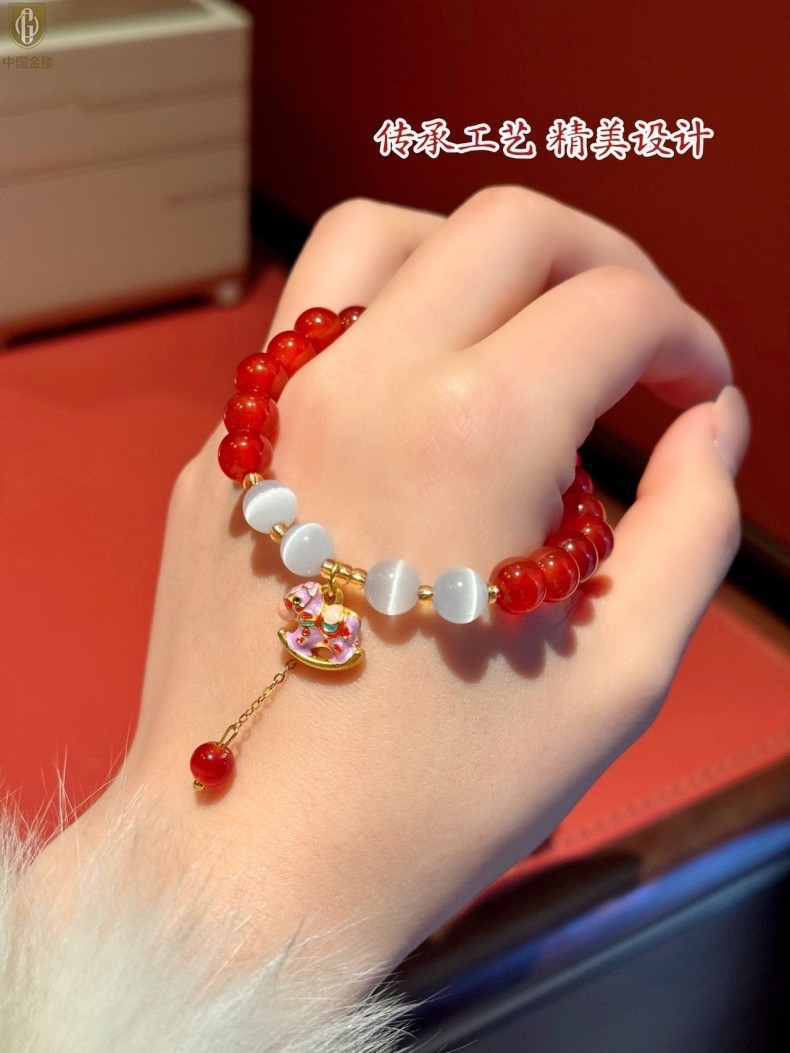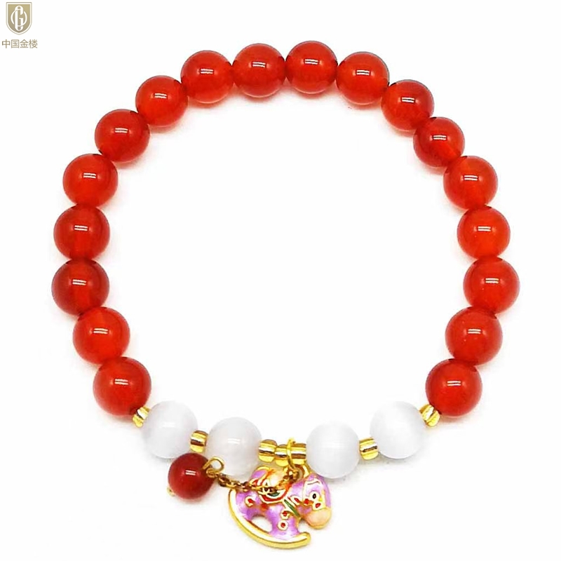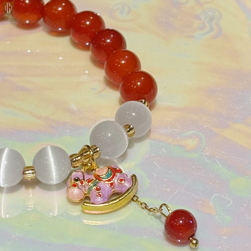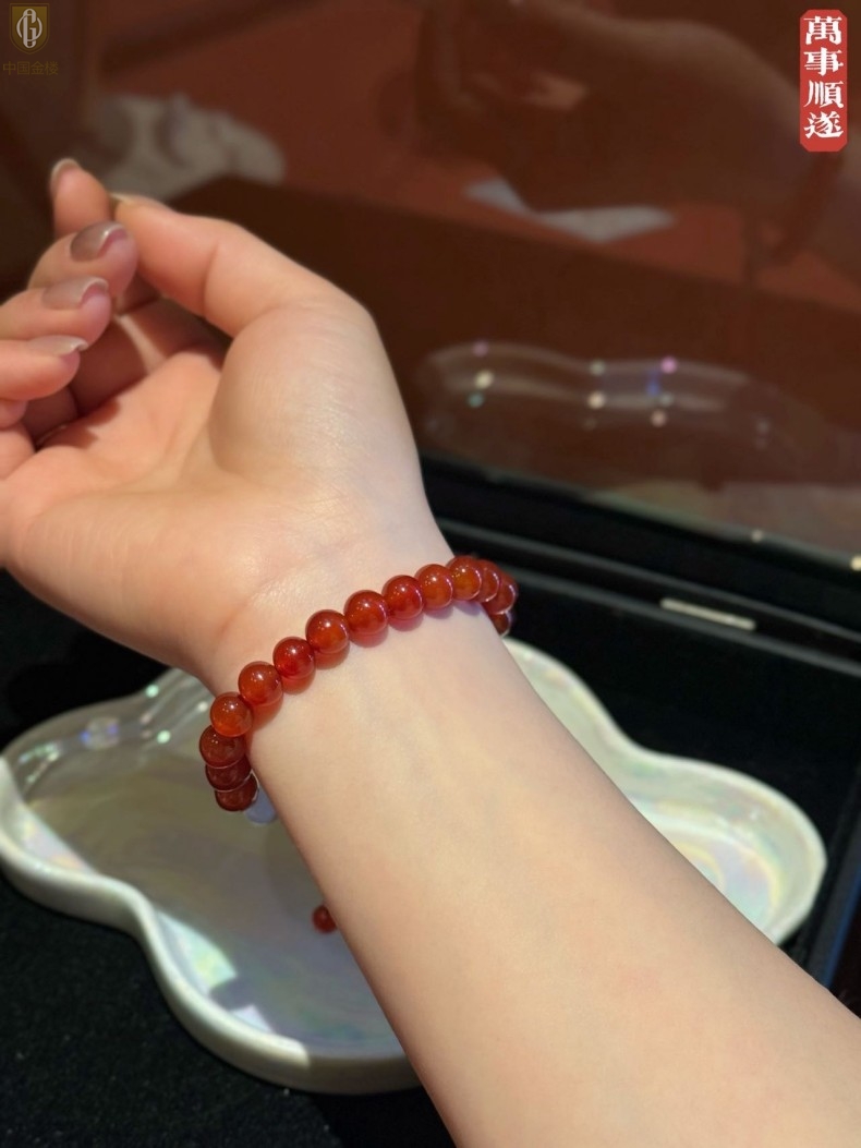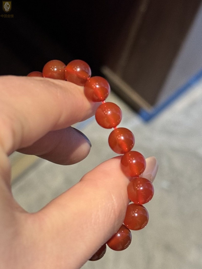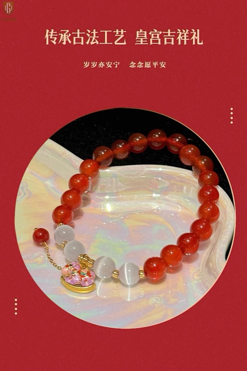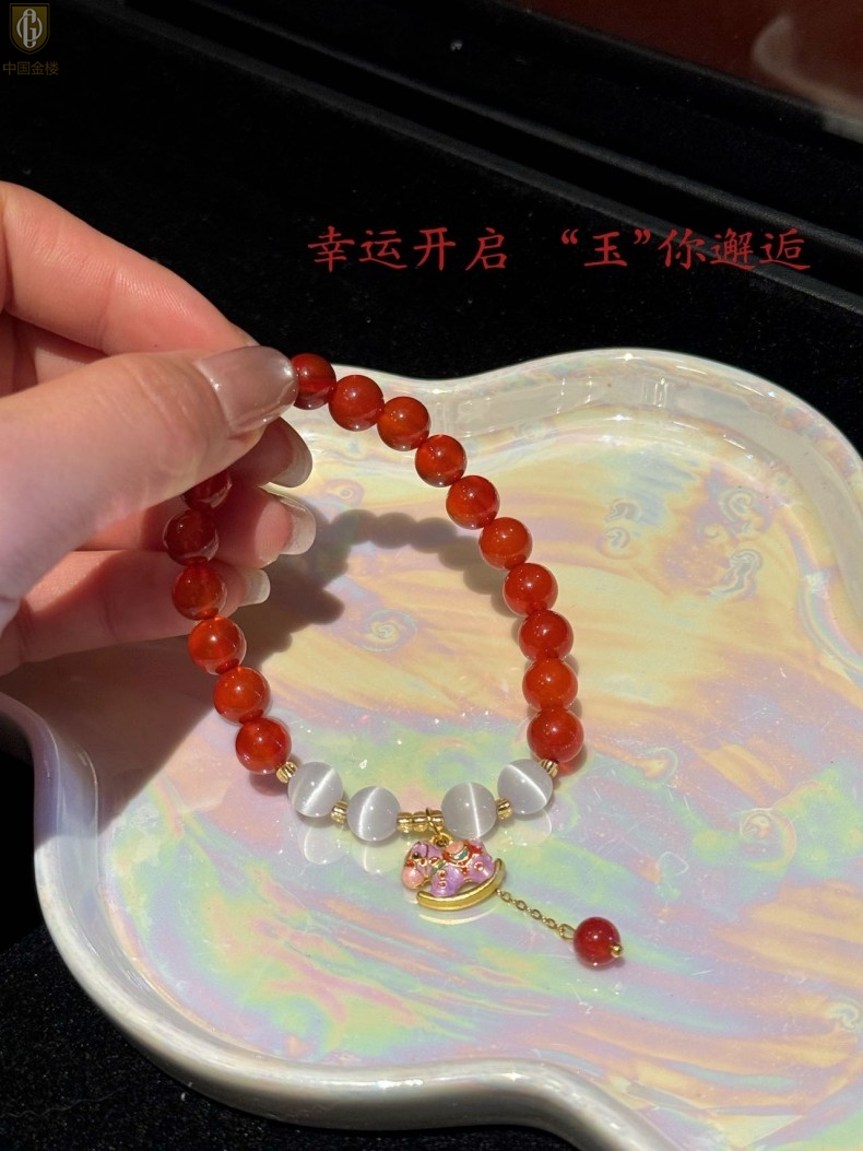 【品名】中国金楼紫气东来马到福运红玉髓手串