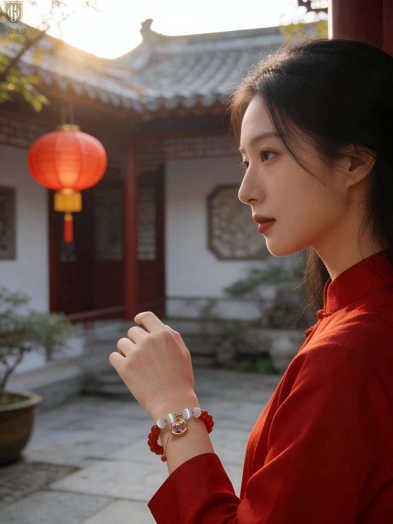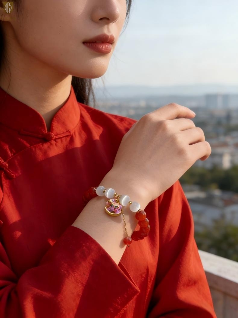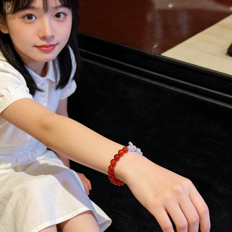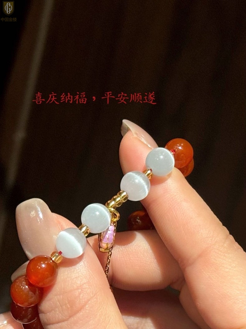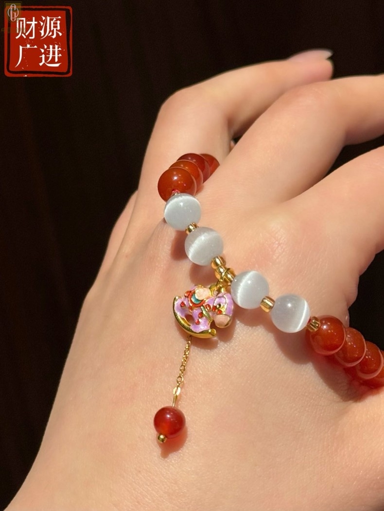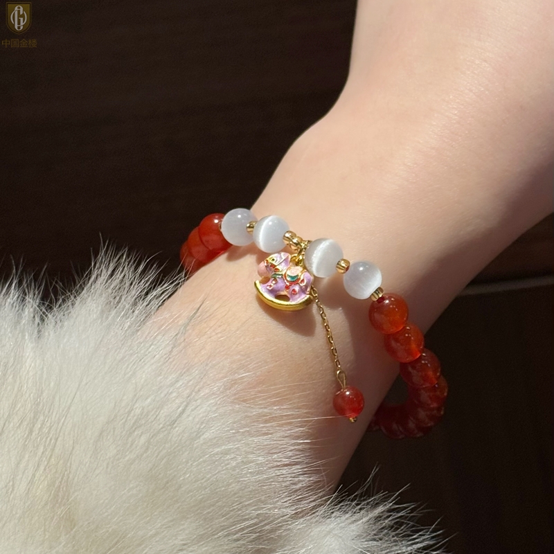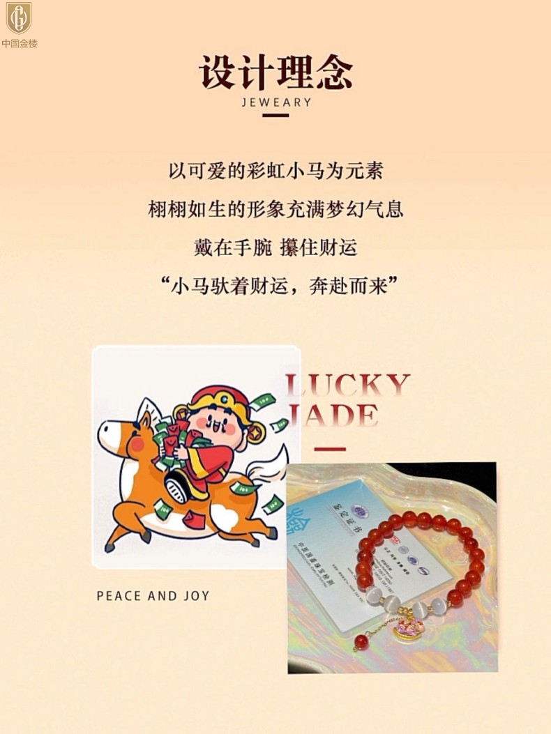 【品名】中国金楼紫气东来马到福运红玉髓手串