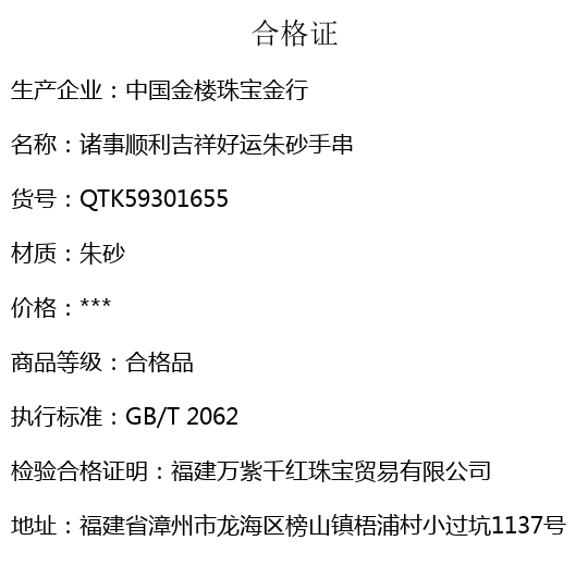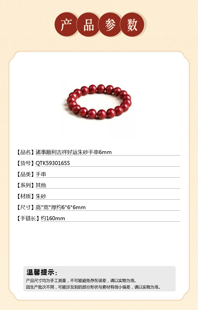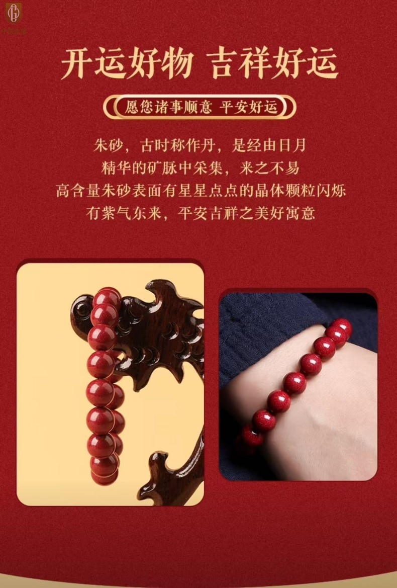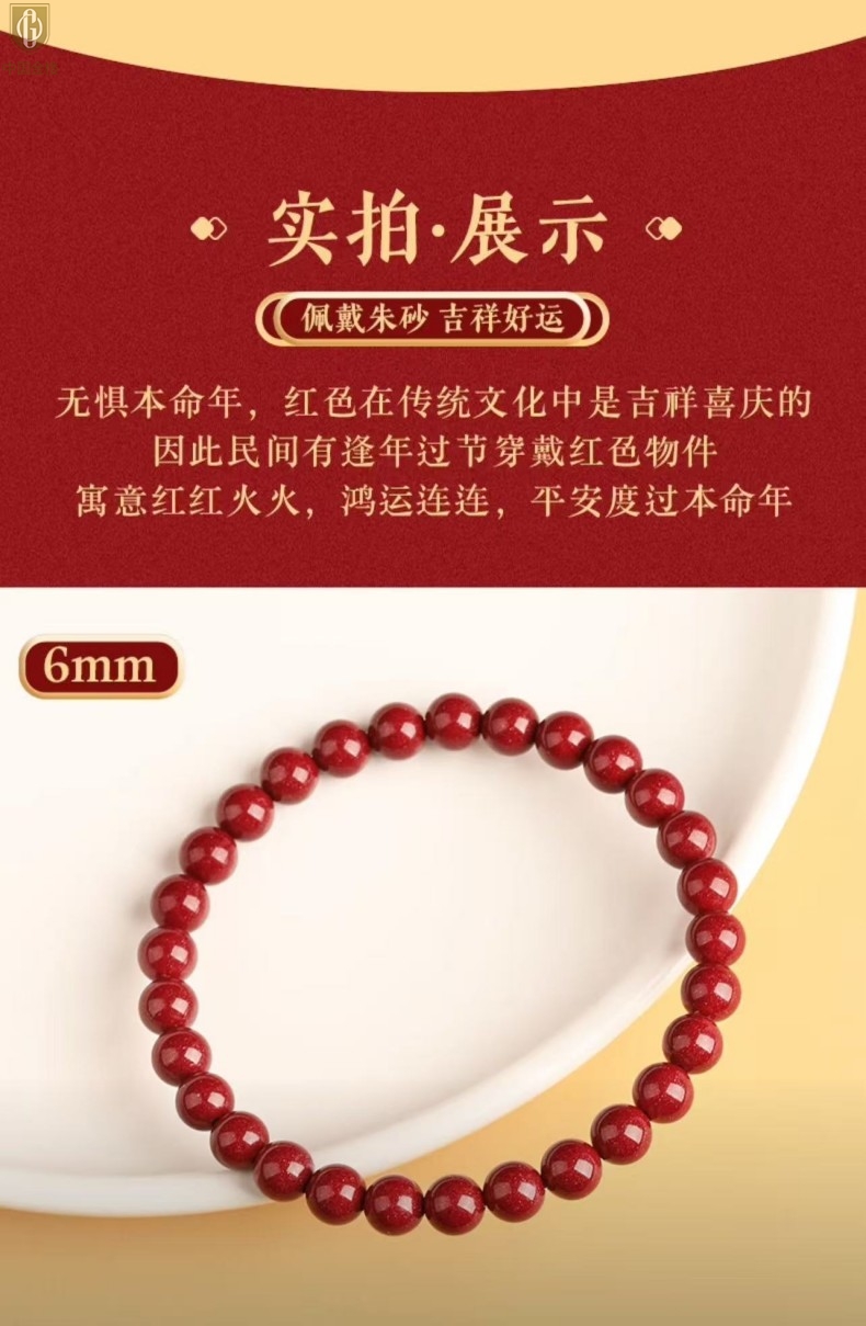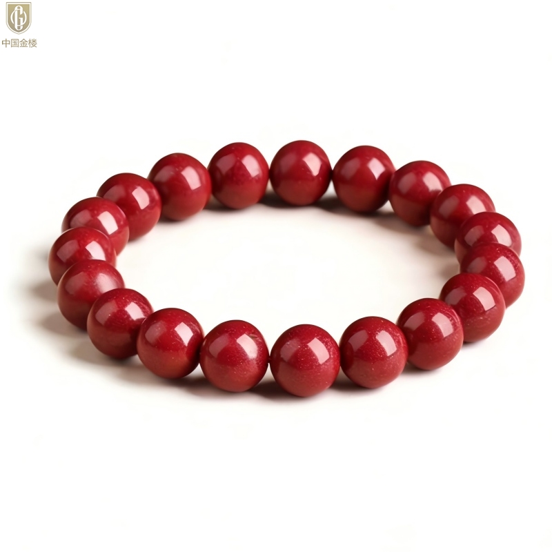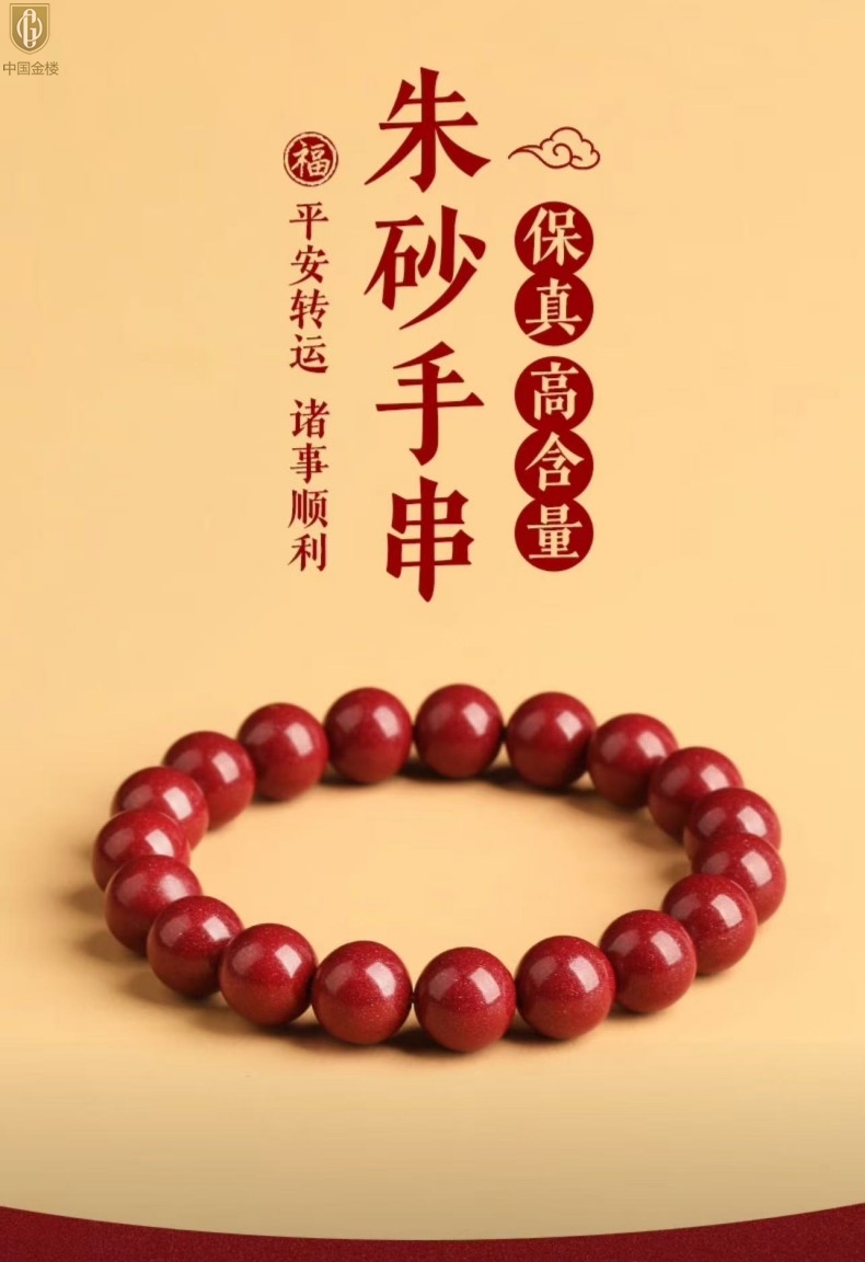 【品名】中国金楼诸事顺利吉祥好运朱砂手串6mm