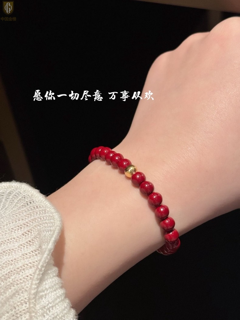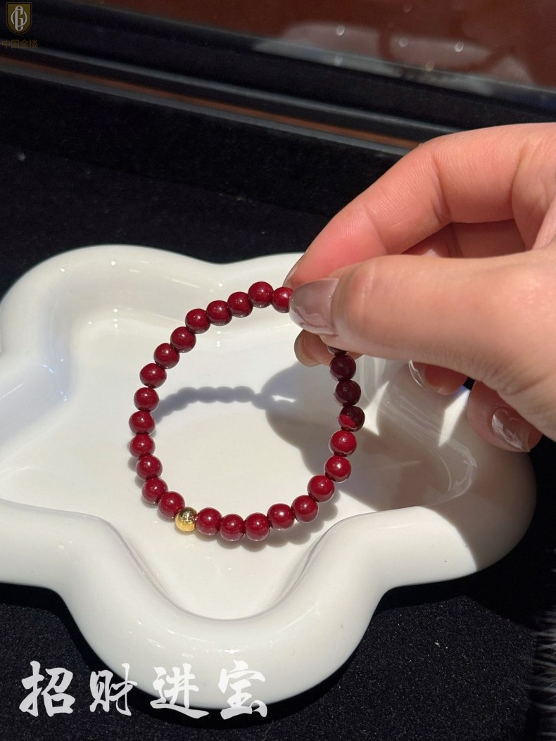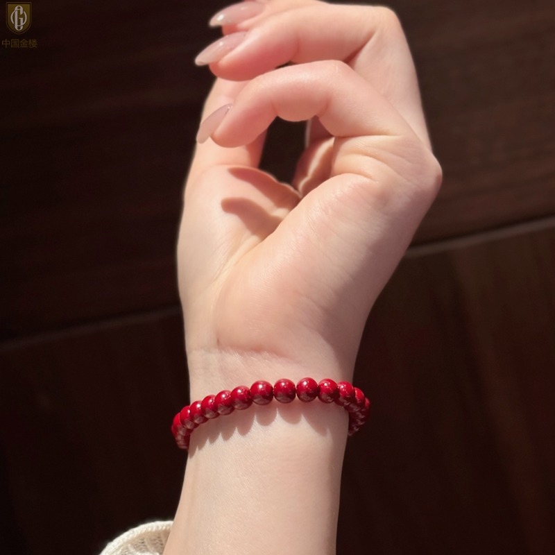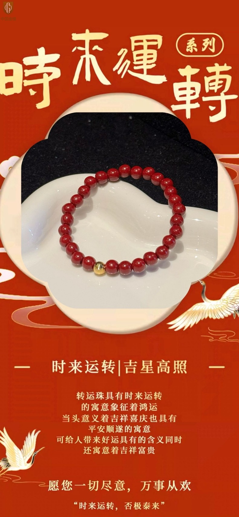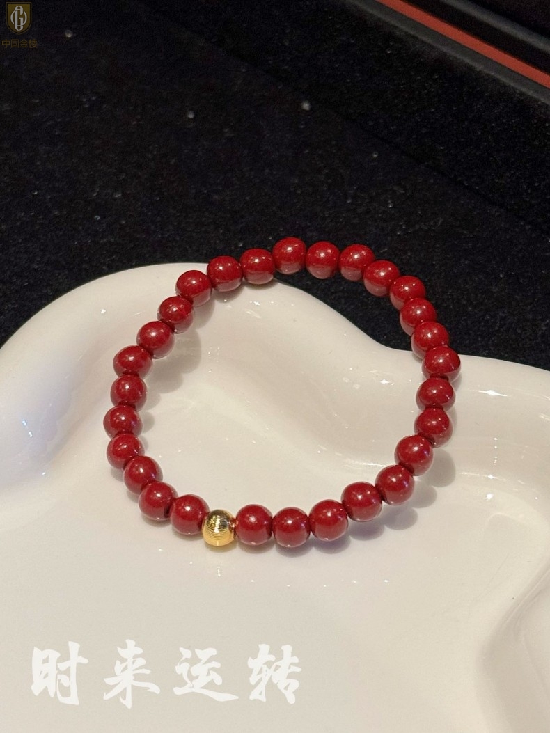 【品名】中国金楼时来运转鸿运吸金朱砂手串