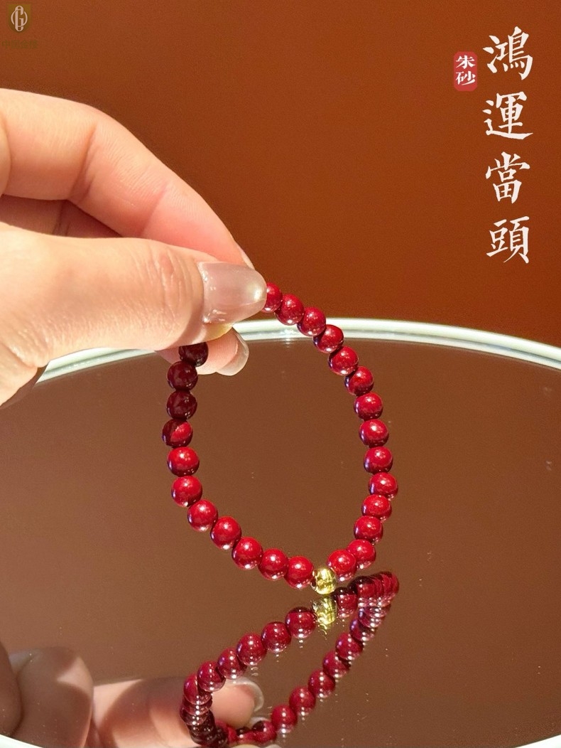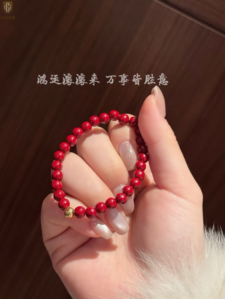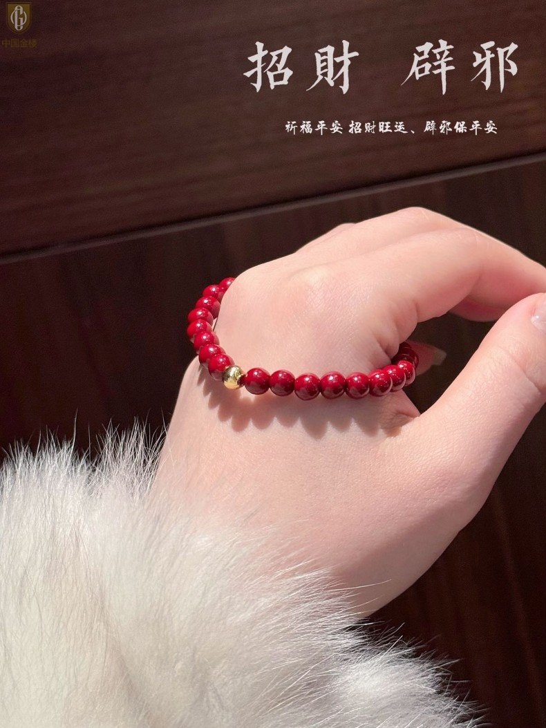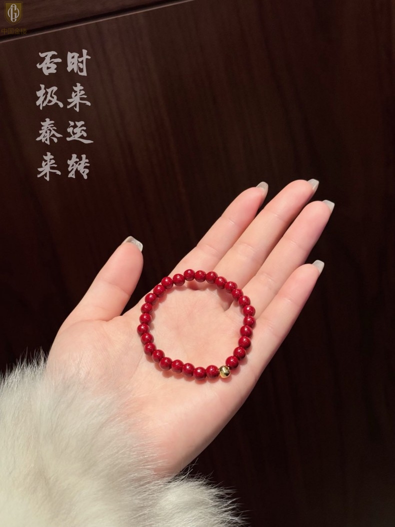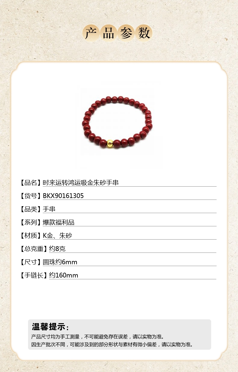 【品名】中国金楼时来运转鸿运吸金朱砂手串