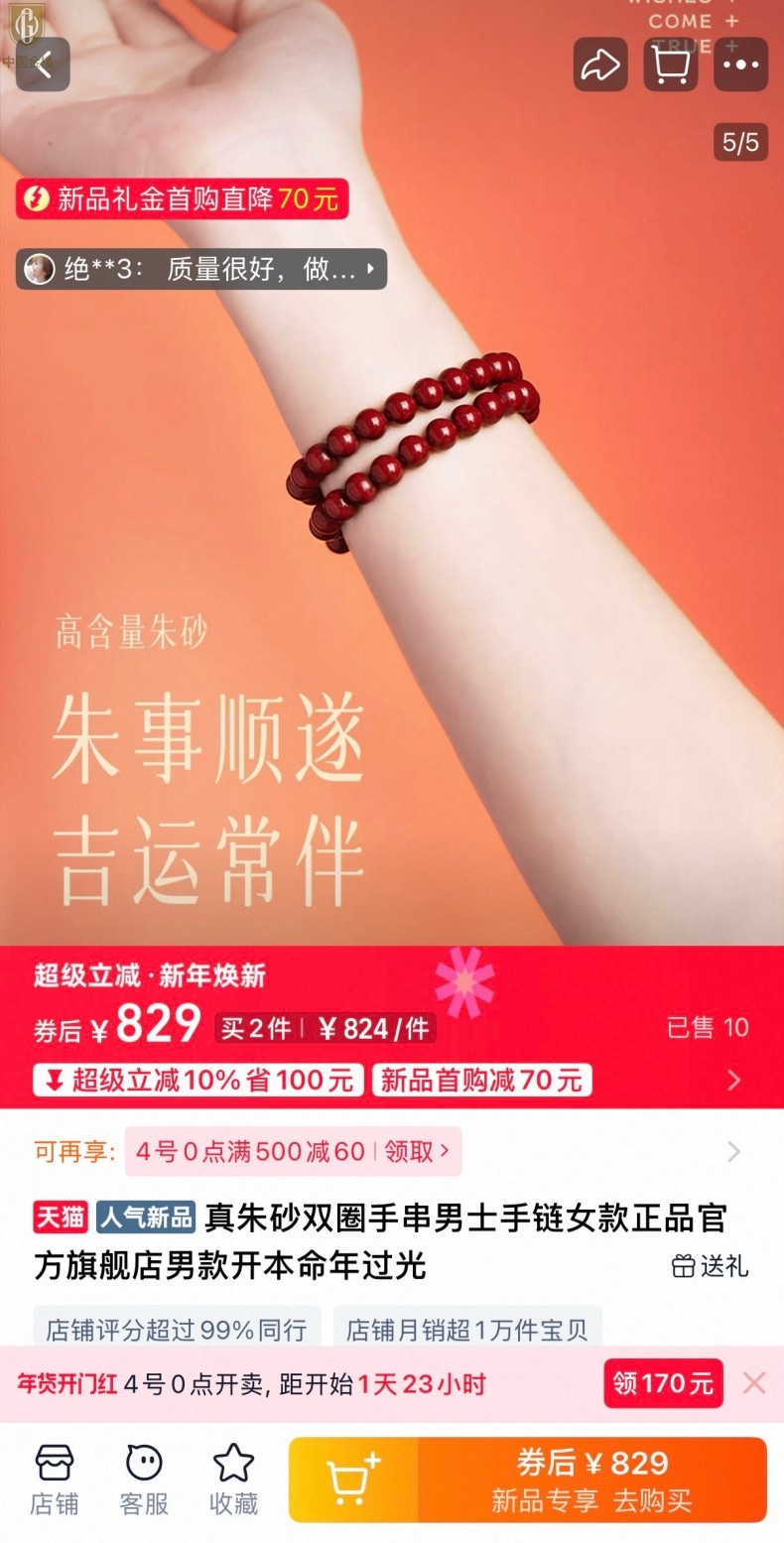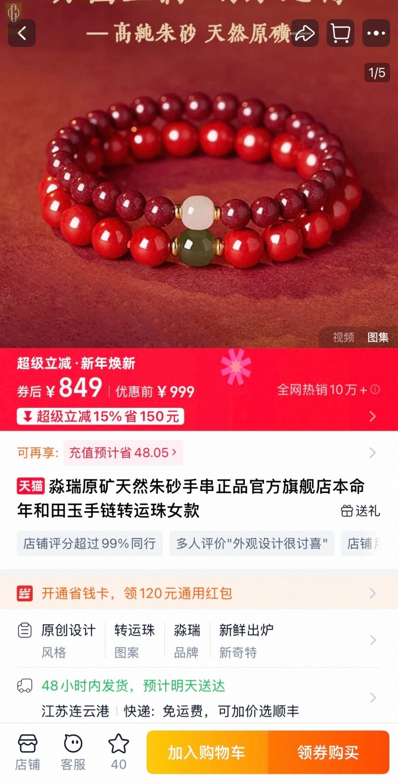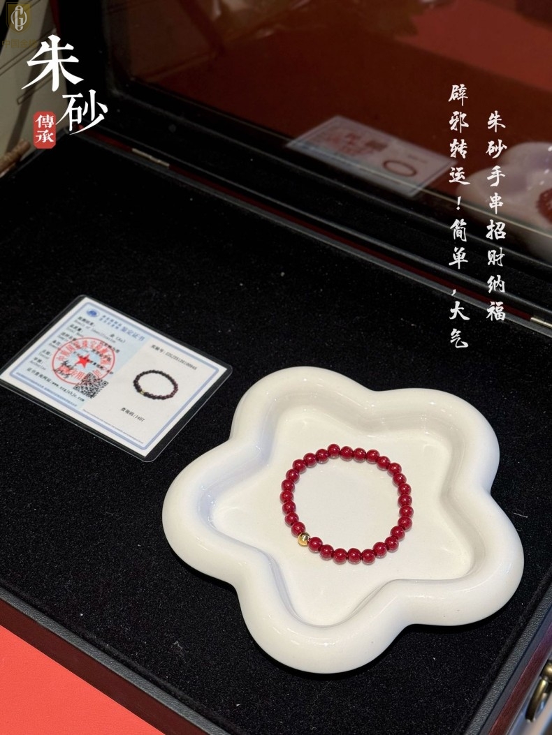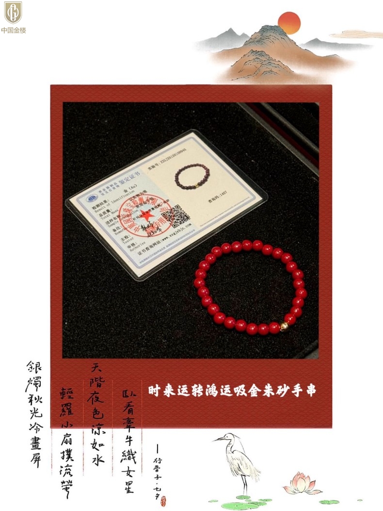 【品名】中国金楼时来运转鸿运吸金朱砂手串