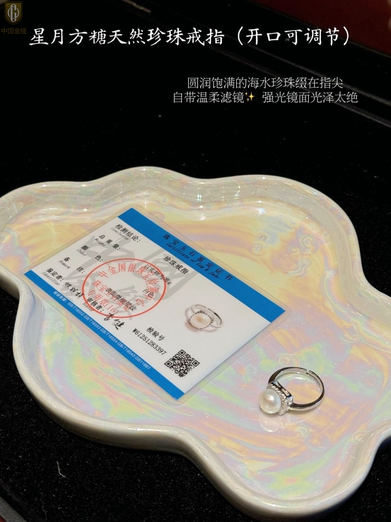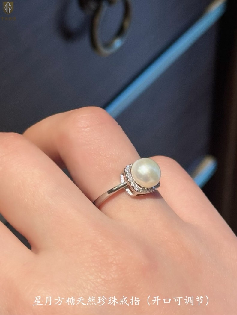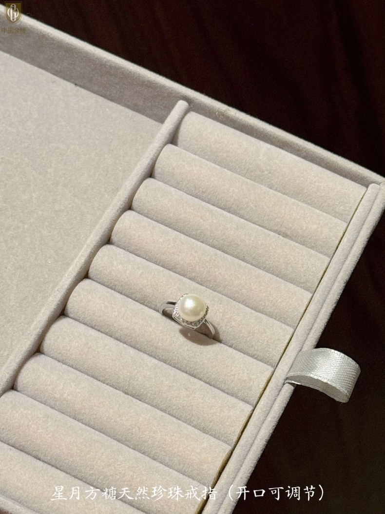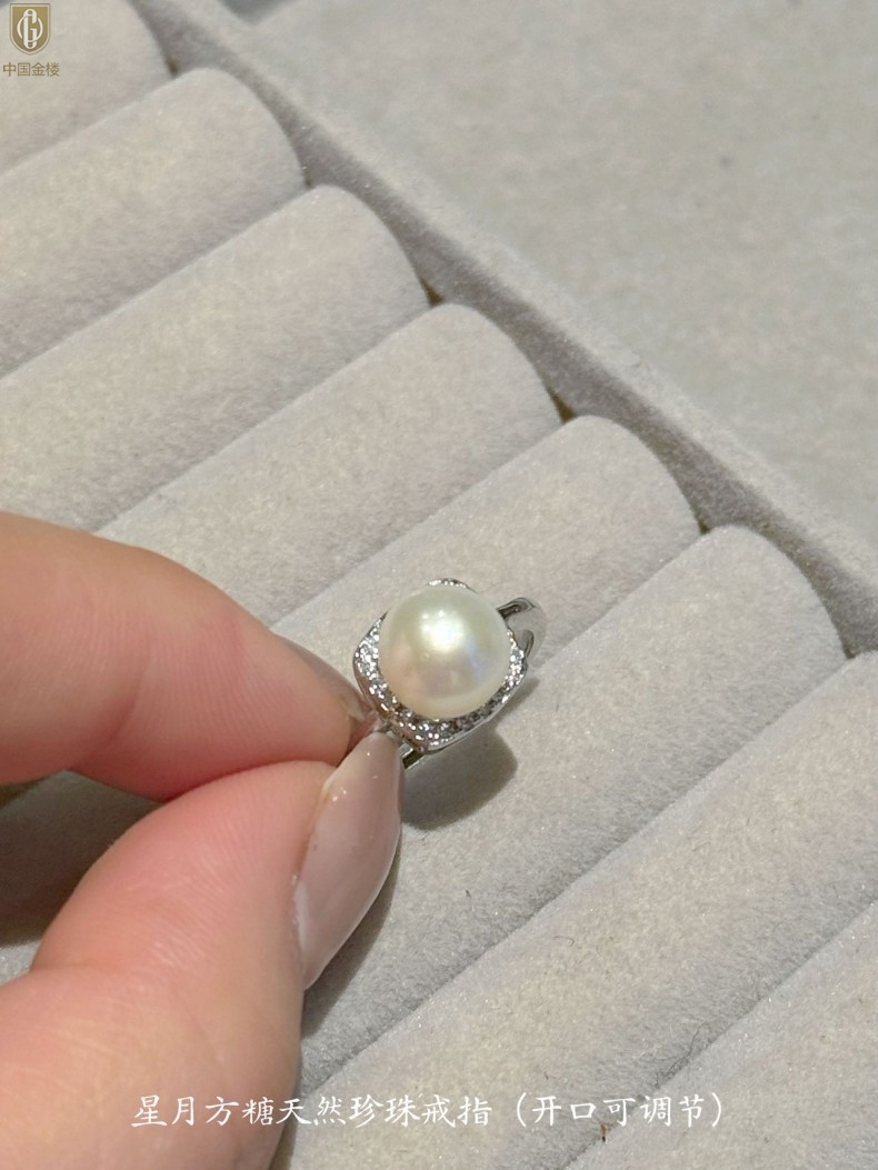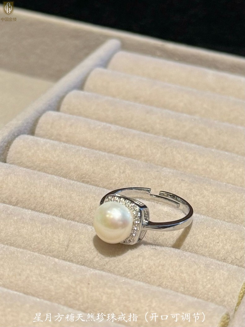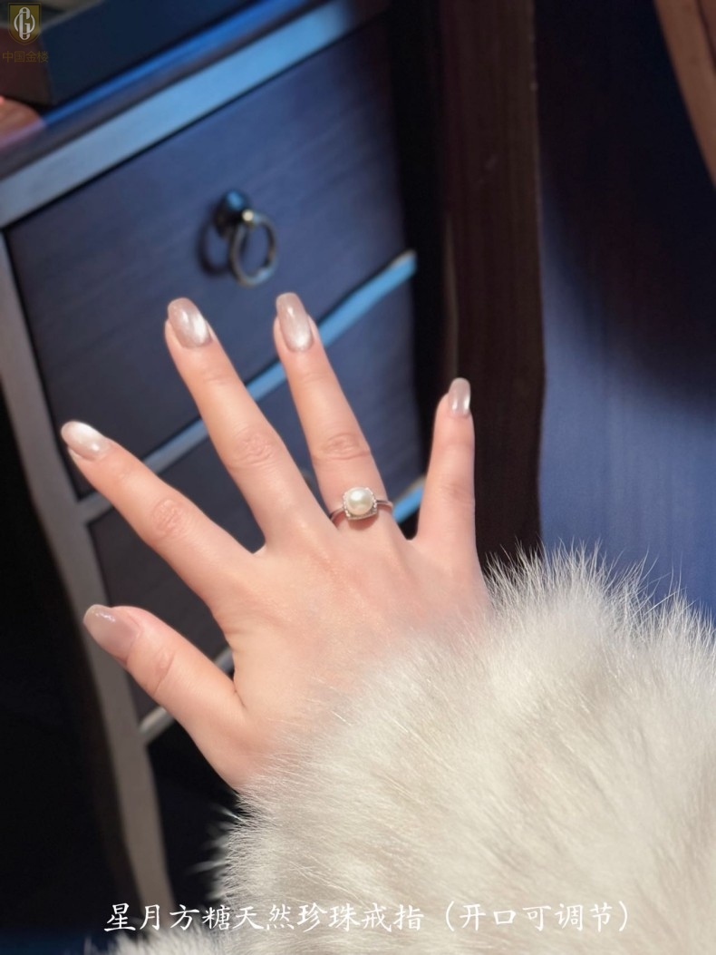 【品名】中国金楼星月方糖天然珍珠戒指(开口可调节)